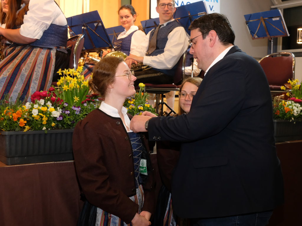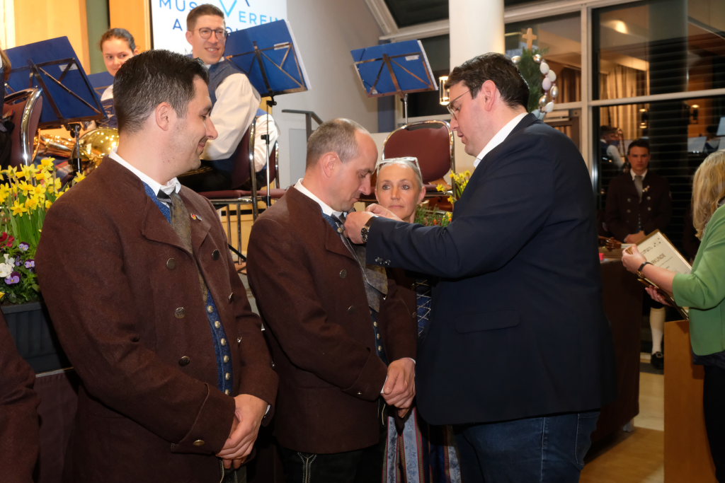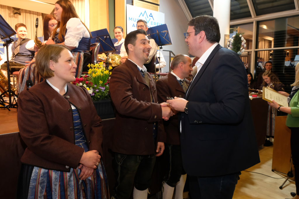 Für 30 Jahre geehrt wurden Florian Mahle, an der Trompete aktiv seit 1993 und seit 2019 Ausschussmitglied,