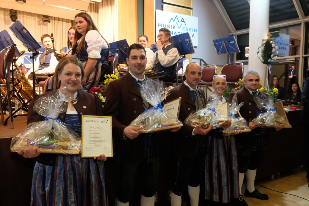 Die Geehrten mit Klaus Wachter vom Blasmusikkreisverband.