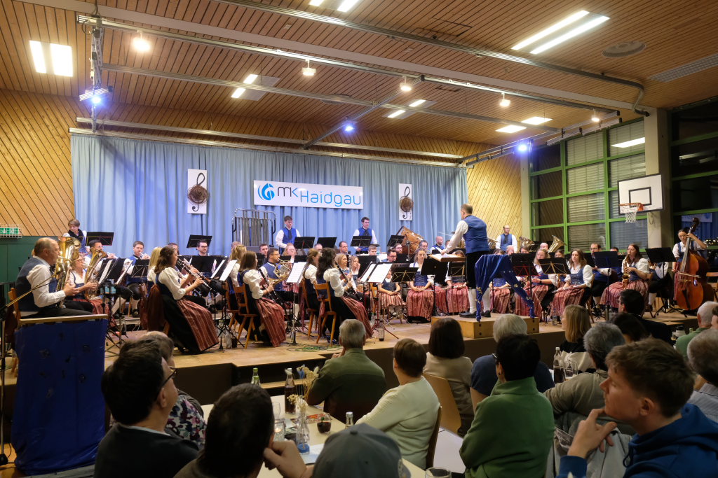 Haidgau – Startpunkt ihres Höhenfluges war die Turn- und Festhalle Unterschwarzach. Vorstandssprecher Johannes Wirth freute sich über die vielen Besucher/innen. Neben zahlreichen Ehrenmitgliedern der Kapelle konnte er auch viele Musiker aus der Region und natürlich auch Bürgermeisterin Alexandra Scherer, sowie die Ortsvorsteherinnen von Haidgau Ernestina Frick und Unterschwarzach, Gisela Brodd und diejenige von Gospoldshofen, Marga Loritz, begrüßen.
