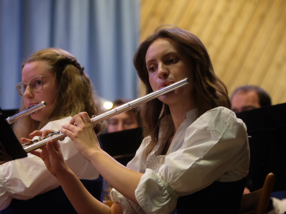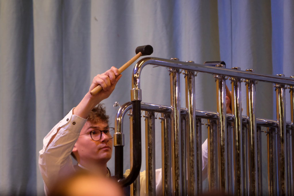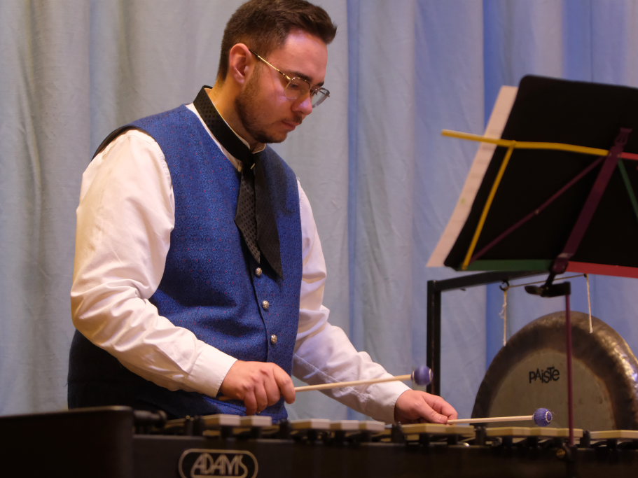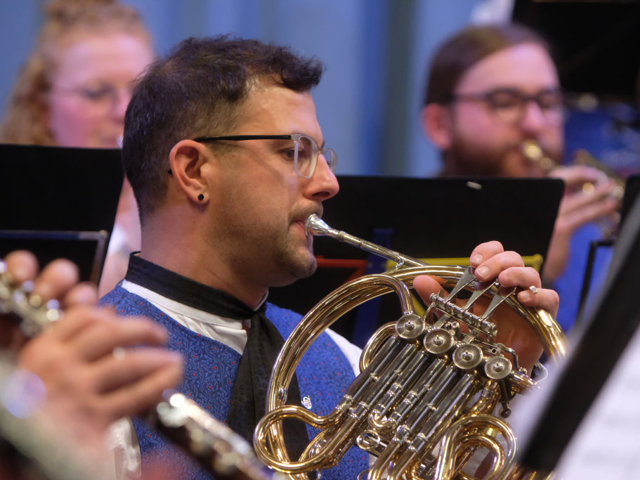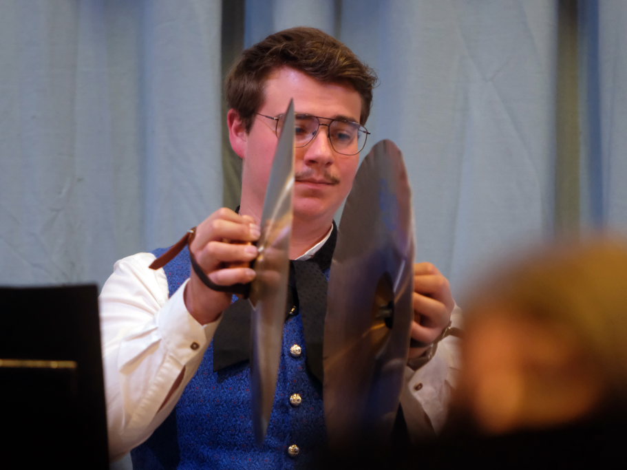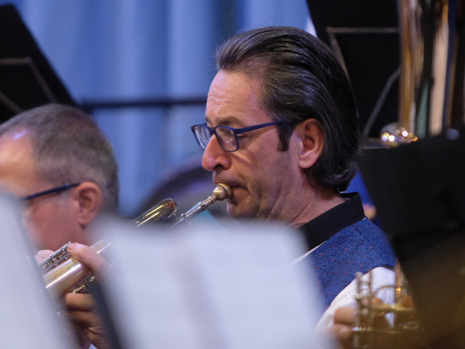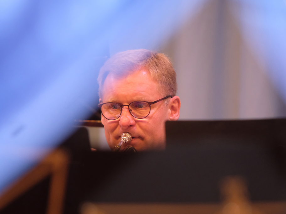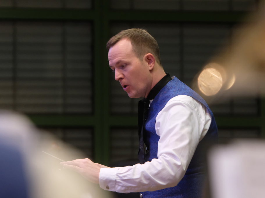 Mit Heartland Sketches des amerikanischen Komponisten Mark Camphouse startete „Pilot“ Alexander Werner in das Konzert. Es ist eine standesgemäße Eröffnungsfanfare mit Anklängen aus dem Iowa Fight Song. Ihm ließen die Musiker „Where never Lark or Eagle flew“ von James Curnow folgen. Dieses beeindruckende Werk für Blasorchester basiert auf einem inspirierenden Gedicht, das ein amerikanischer Pilot im Zweiten Weltkrieg geschrieben hat. Anna-Lena Feser, die gemeinsam mit Armin Lupfer charmant und gekonnt durchs Konzertprogramm führte, zitierte einige Zeilen aus dem Gedicht: „Auf! Auf! Entlang berauschendem und grellen Blau, hat mich mein leichter Sinn in Sturmeshöhn geführt, die keine Lerche und kein Adler je erreicht…“ Schillernde Blechbläserklänge und schwungvolle Holzbläserlinien begleiteten denn auch die Musiker auf ihrem Höhenflug. Und spiegelten die Liebe des jungen Mannes fürs Fliegen und seine Befreiung von den Sorgen der Welt wider.