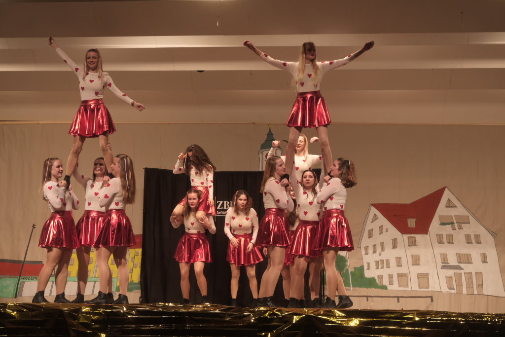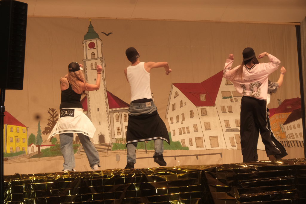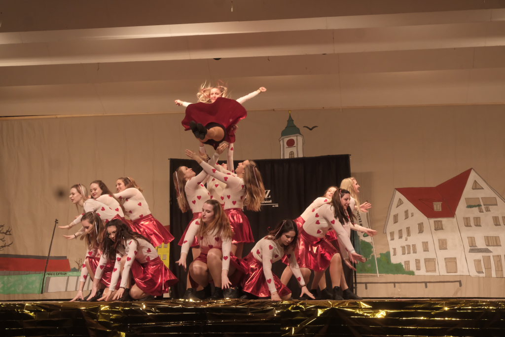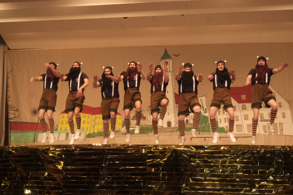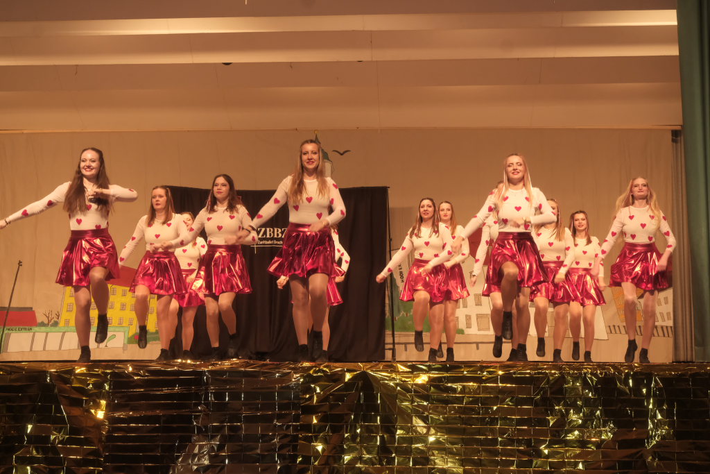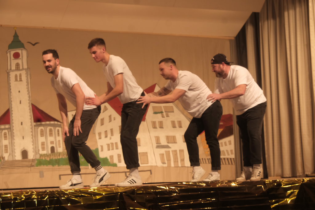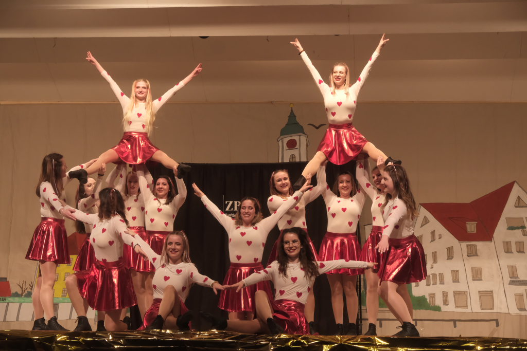 Den zweiten Teil nach einer gut genutzten Tanzpause eröffneten die Tänzerinnen und Tänzer der Zunft mit dem „Jahrzehnte-Tanz“, bei dem die einzelnen Gruppen aus jedem Jahrzehnt die damals aktuellen Tanzmoves präsentierten wie etwa den Disco der 70er oder etwa den von Michael Jackson erfundenen Moonwalk in den 80ern. Bis hin zu den Corona-Maskentragenden 2020ern. Zum großen Finale standen dann die Einzel-Gruppen gemeinsam auf der Bühne und boten dem begeisterten Publikum ein Finale á la Garde.