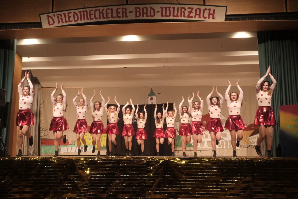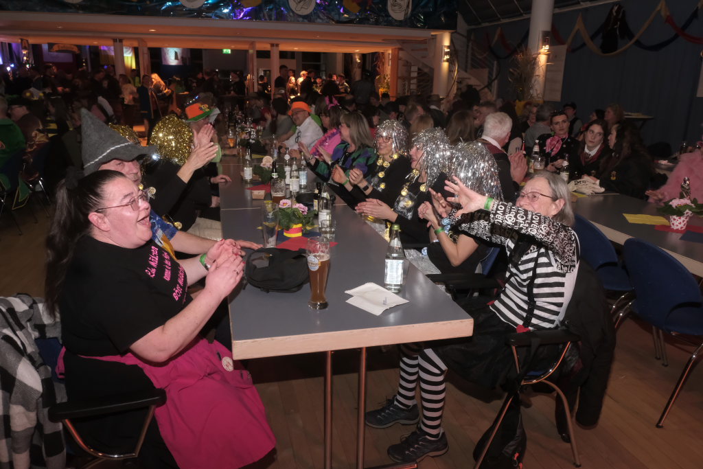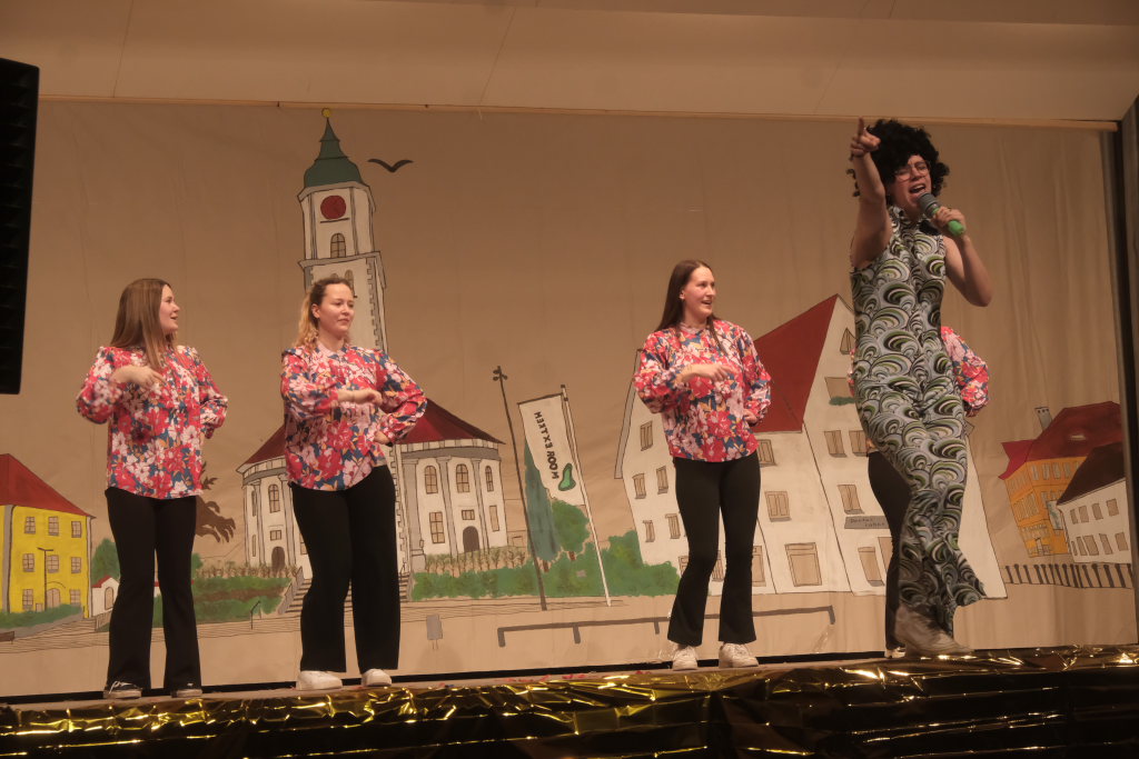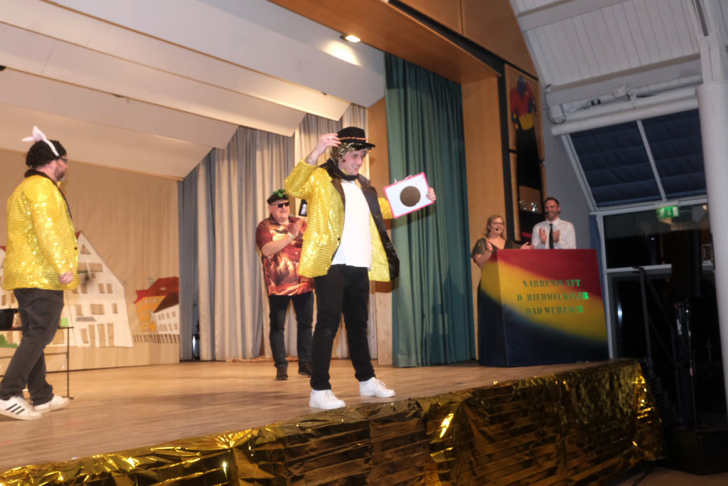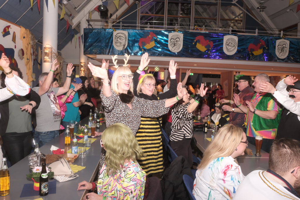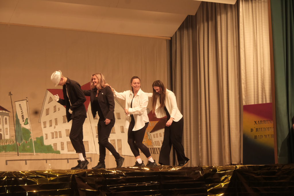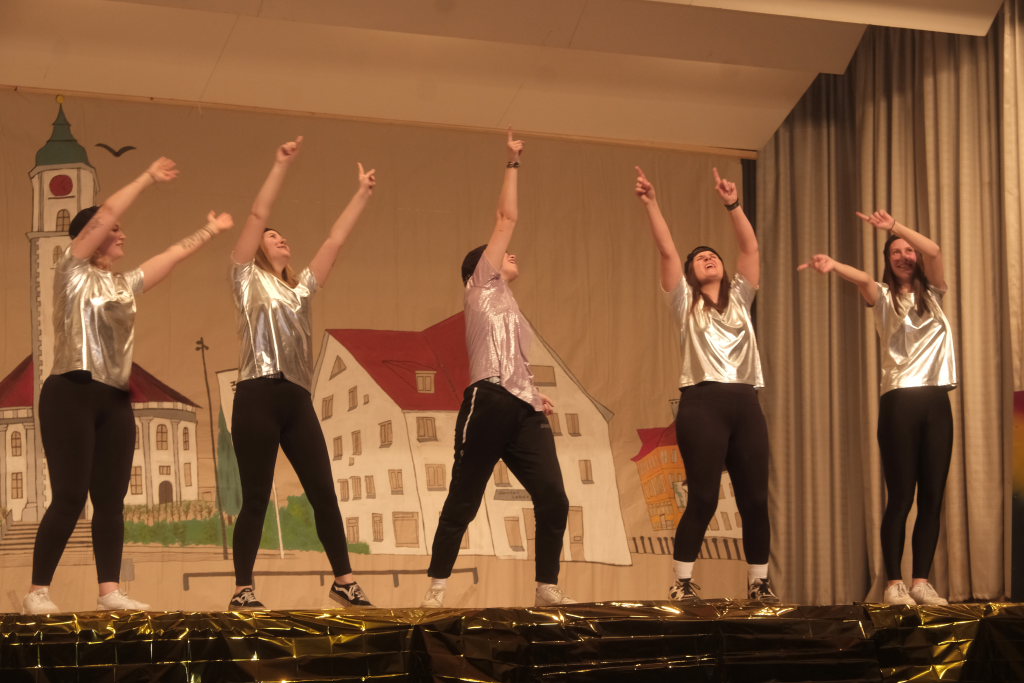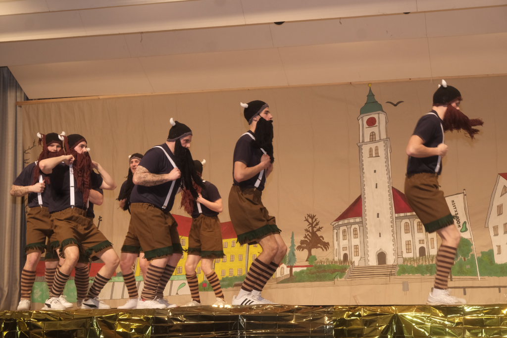 Den zweiten Teil nach einer gut genutzten Tanzpause eröffneten die Tänzerinnen und Tänzer der Zunft mit dem „Jahrzehnte-Tanz“, bei dem die einzelnen Gruppen aus jedem Jahrzehnt die damals aktuellen Tanzmoves präsentierten wie etwa den Disco der 70er oder etwa den von Michael Jackson erfundenen Moonwalk in den 80ern. Bis hin zu den Corona-Maskentragenden 2020ern. Zum großen Finale standen dann die Einzel-Gruppen gemeinsam auf der Bühne und boten dem begeisterten Publikum ein Finale á la Garde.