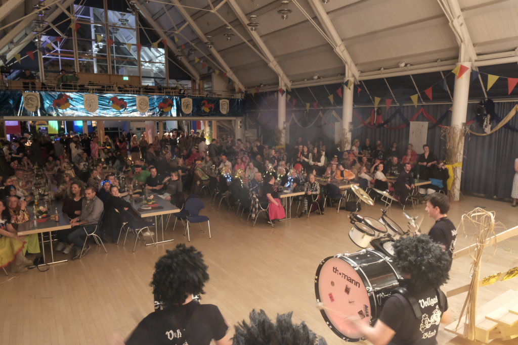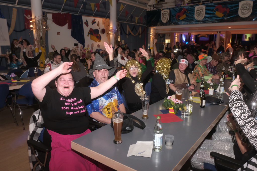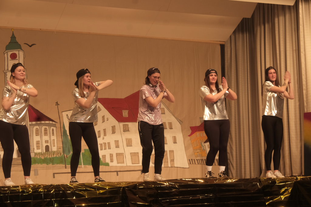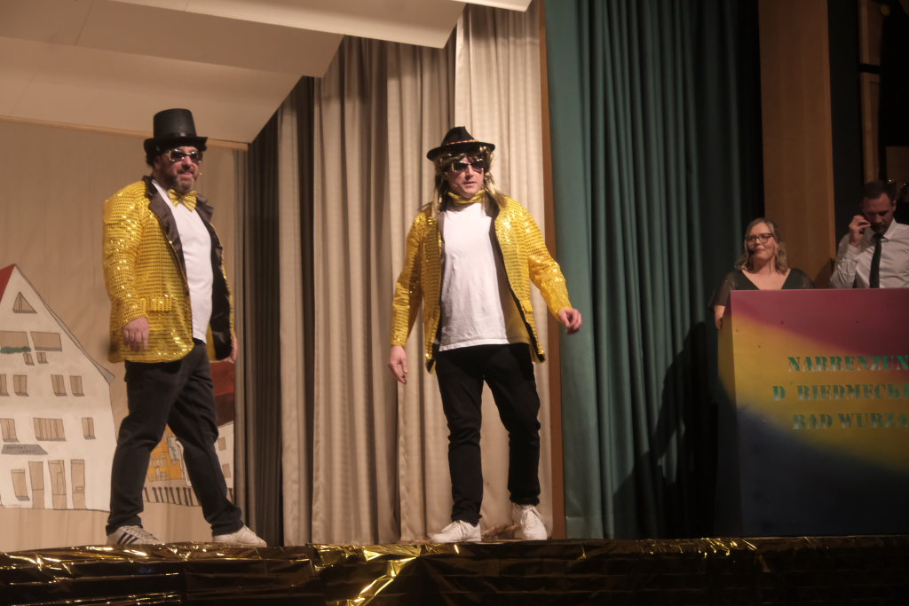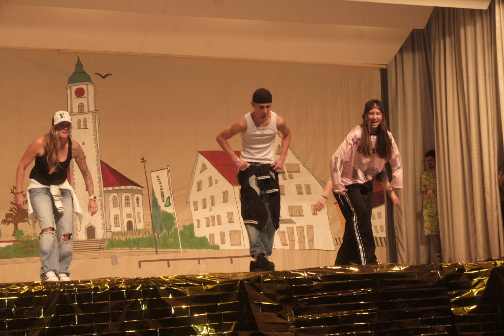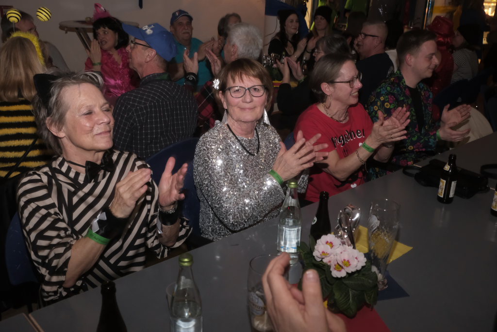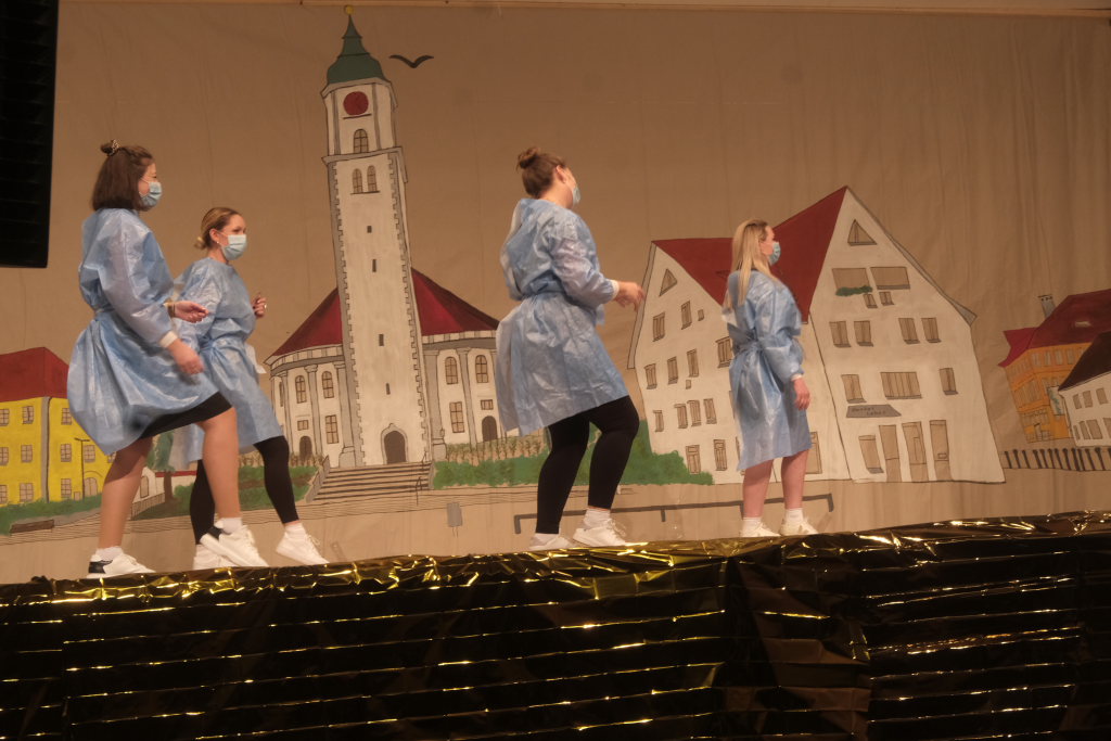 Den zweiten Teil nach einer gut genutzten Tanzpause eröffneten die Tänzerinnen und Tänzer der Zunft mit dem „Jahrzehnte-Tanz“, bei dem die einzelnen Gruppen aus jedem Jahrzehnt die damals aktuellen Tanzmoves präsentierten wie etwa den Disco der 70er oder etwa den von Michael Jackson erfundenen Moonwalk in den 80ern. Bis hin zu den Corona-Maskentragenden 2020ern. Zum großen Finale standen dann die Einzel-Gruppen gemeinsam auf der Bühne und boten dem begeisterten Publikum ein Finale á la Garde.