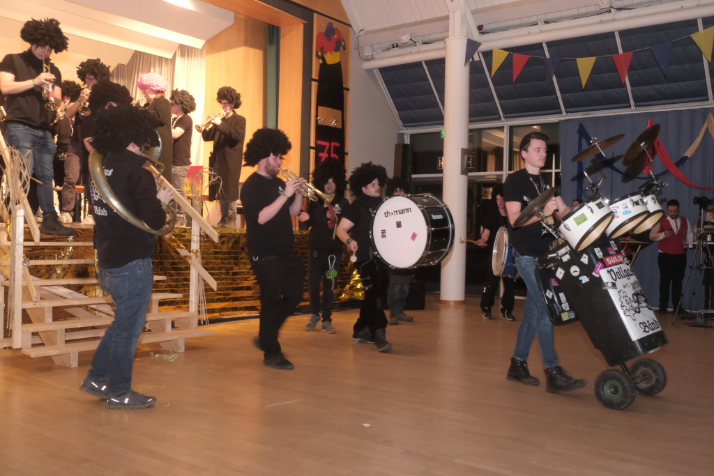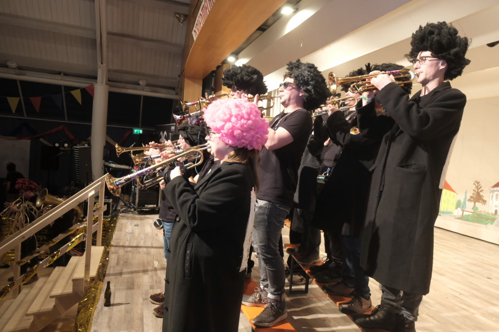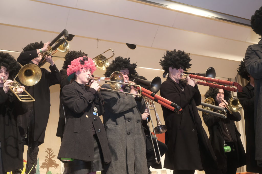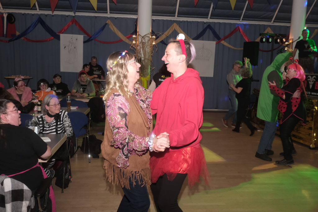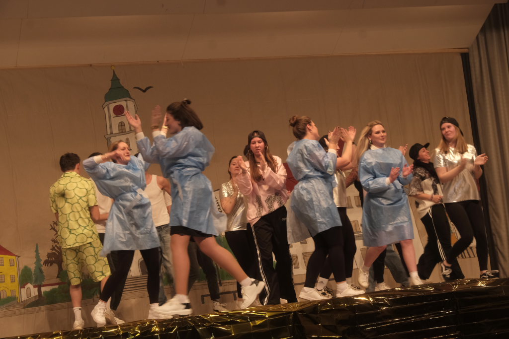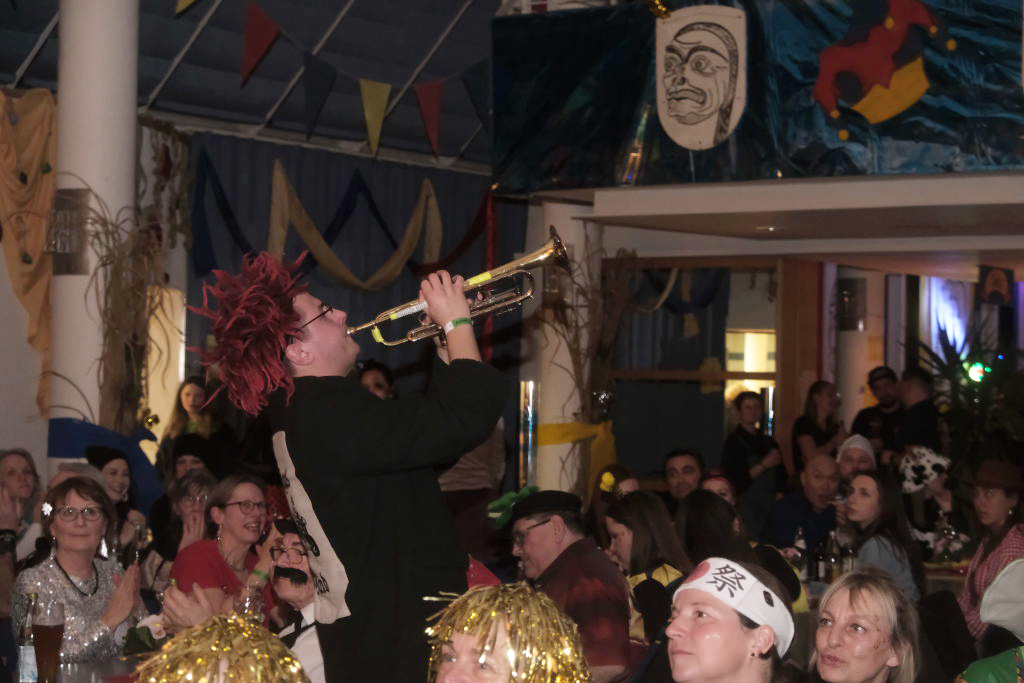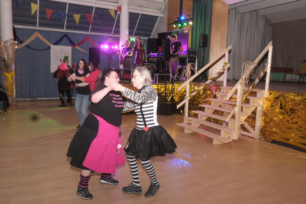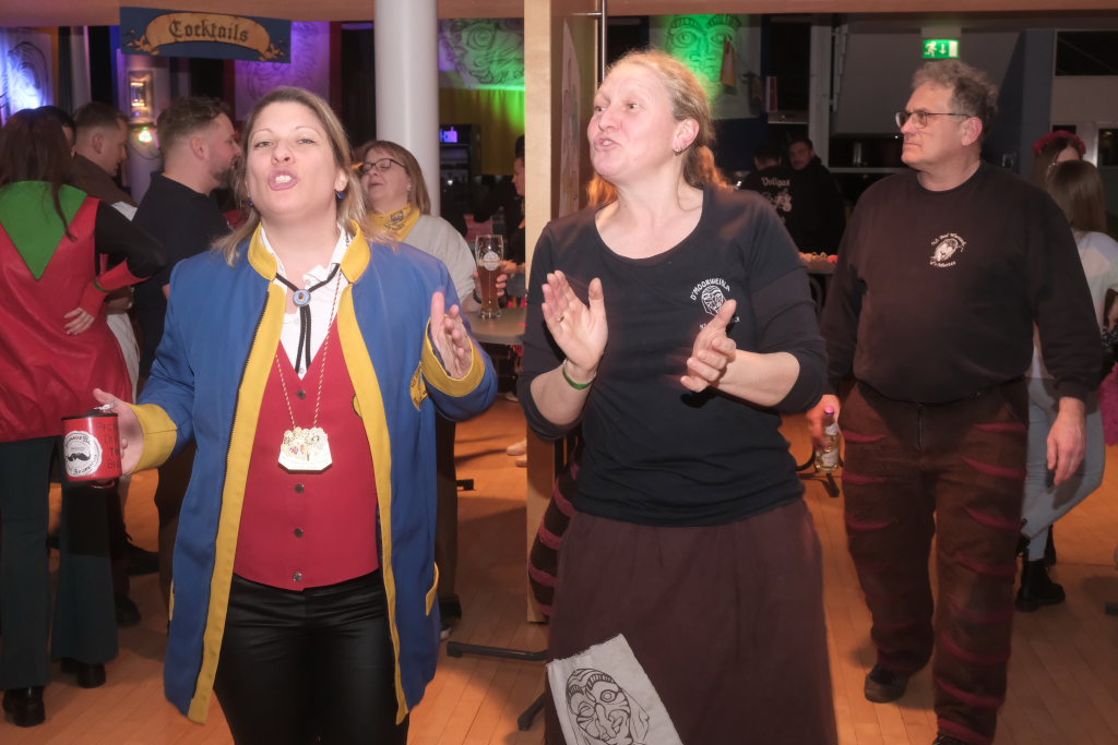 Den zweiten Teil nach einer gut genutzten Tanzpause eröffneten die Tänzerinnen und Tänzer der Zunft mit dem „Jahrzehnte-Tanz“, bei dem die einzelnen Gruppen aus jedem Jahrzehnt die damals aktuellen Tanzmoves präsentierten wie etwa den Disco der 70er oder etwa den von Michael Jackson erfundenen Moonwalk in den 80ern. Bis hin zu den Corona-Maskentragenden 2020ern. Zum großen Finale standen dann die Einzel-Gruppen gemeinsam auf der Bühne und boten dem begeisterten Publikum ein Finale á la Garde.