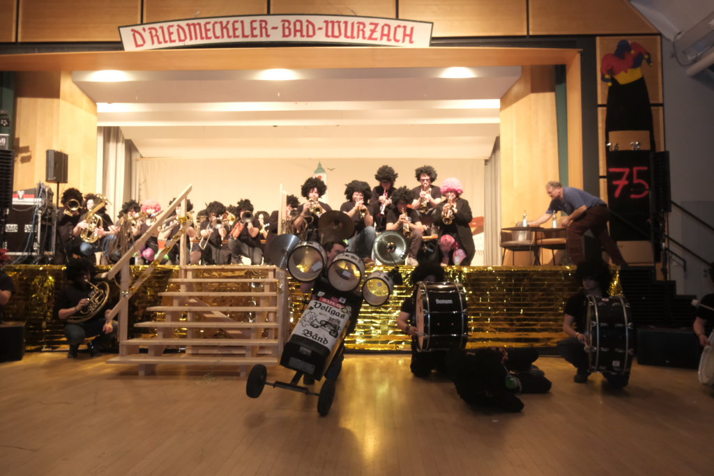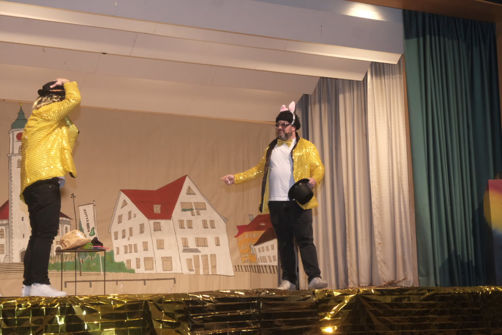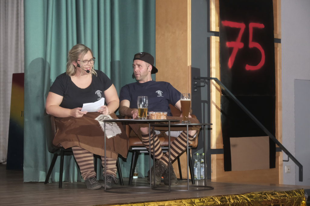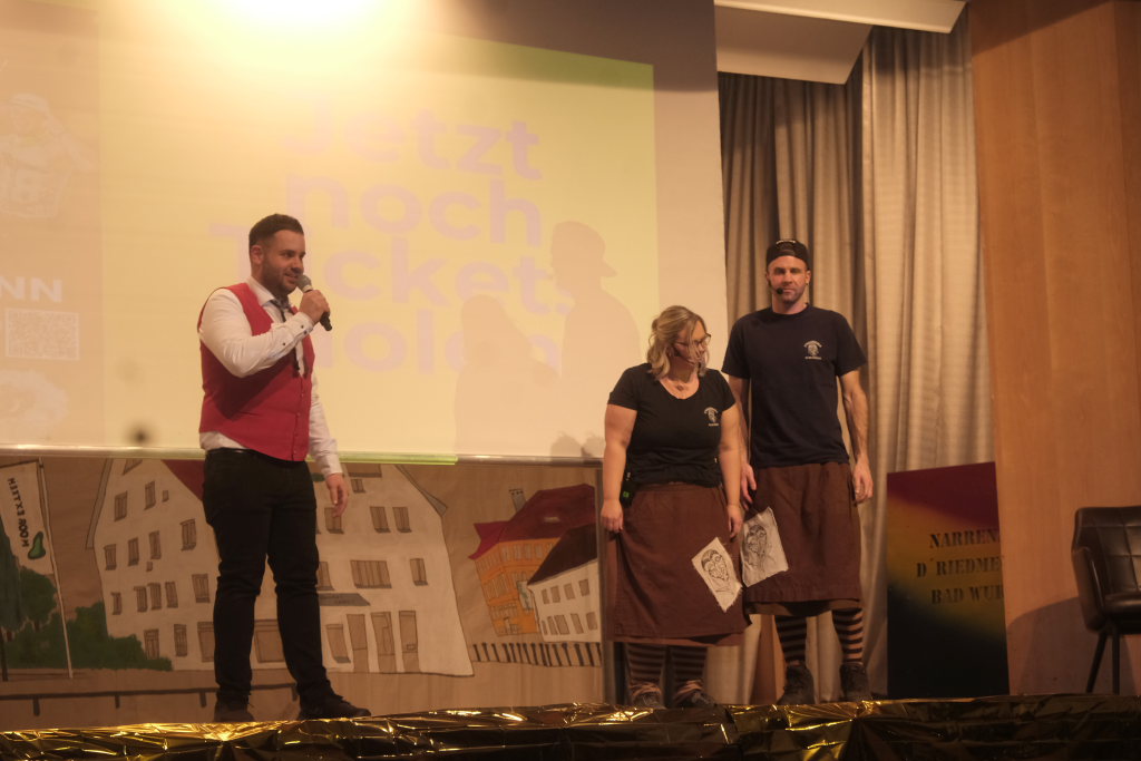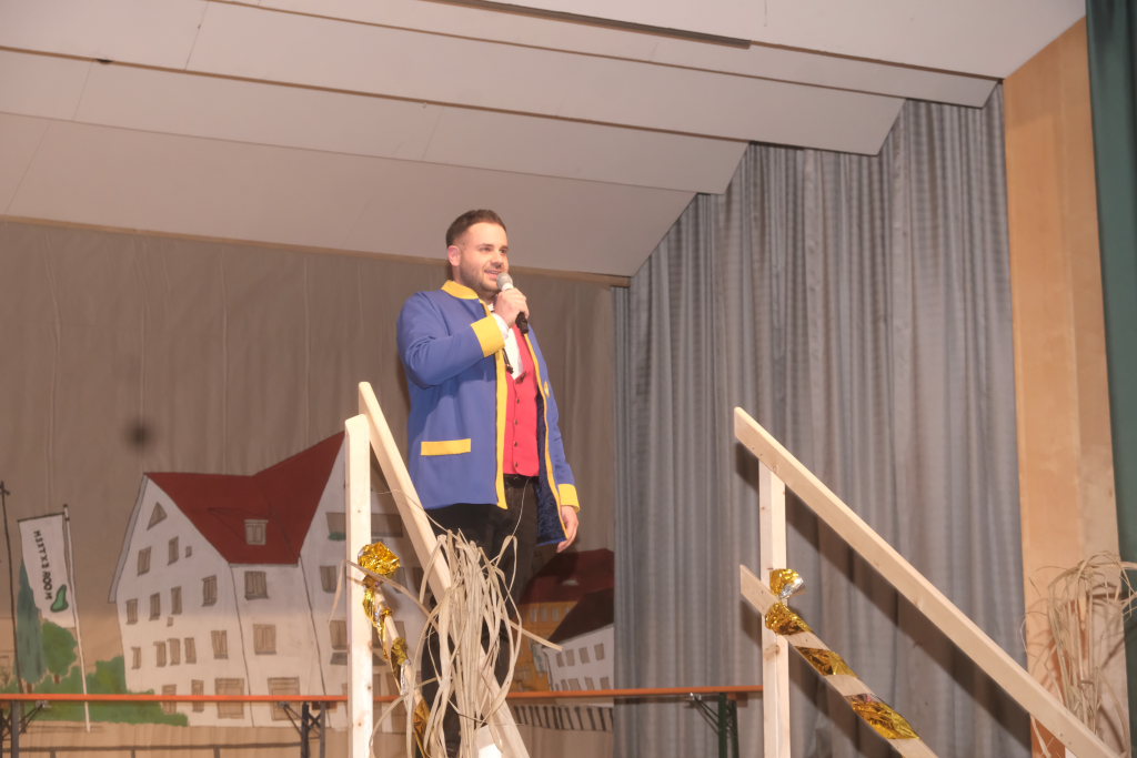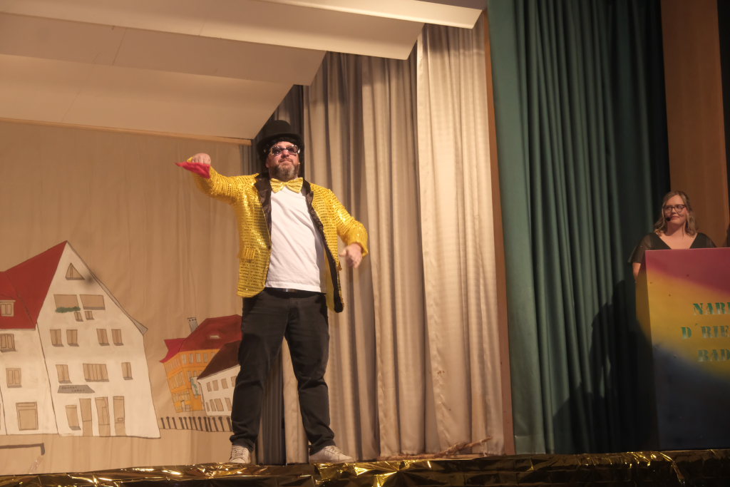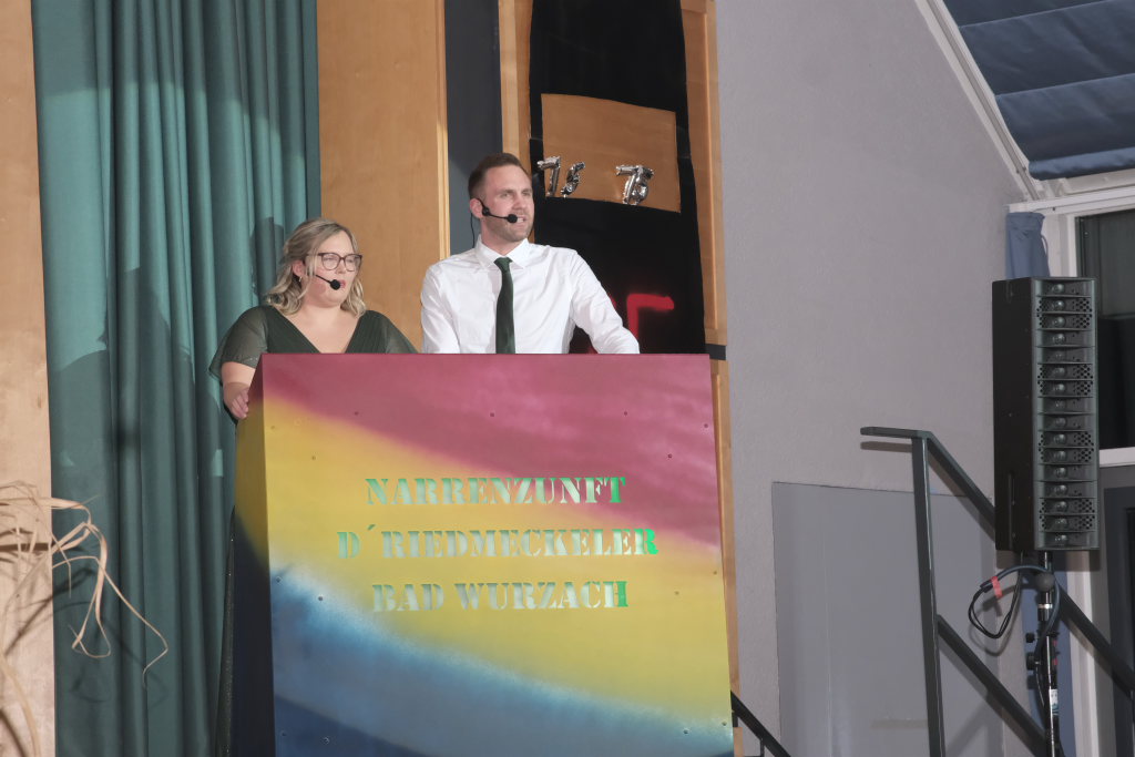 Nachdem die Band schon einige musikalische Runden gedreht hatte, darunter für ein Geburtstagskind namens Heidi das entsprechende Lied aus der Schweiz sowie das obligatorische Happy-Birthday, begrüßte Zunftmeister Dominic Neher das Publikum im Namen der Narrenzunft zu dieser wegen des Jubiläums ganz besonderen Feierabend-Gaudi, durch dessen Programm Kathrin Neher und Markus Birk führten.