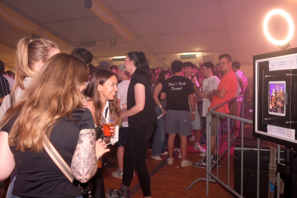 Direkt dahinter konnten sich die Partygäste am Fotoautomat austoben, Grimassen schneiden, ein Tänzchen wagen oder einfach sie selbst sein. Ein Feature, das querbeet durch alle Generationen gerne in Anspruch genommen wurde.