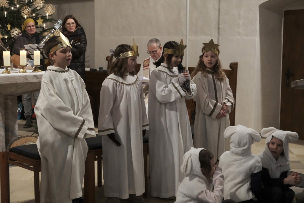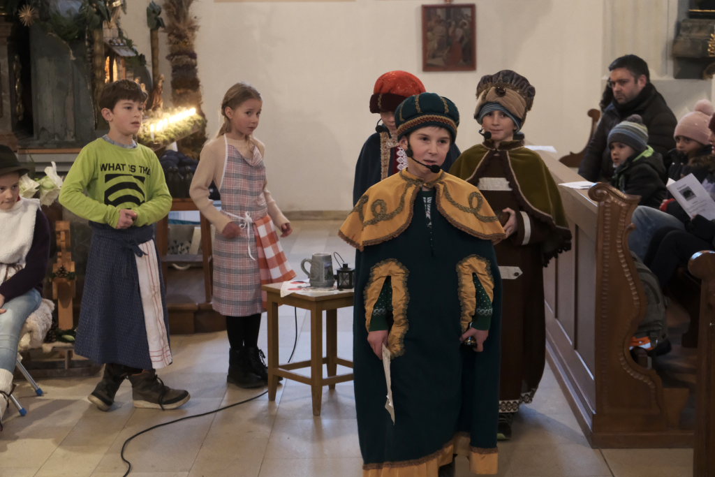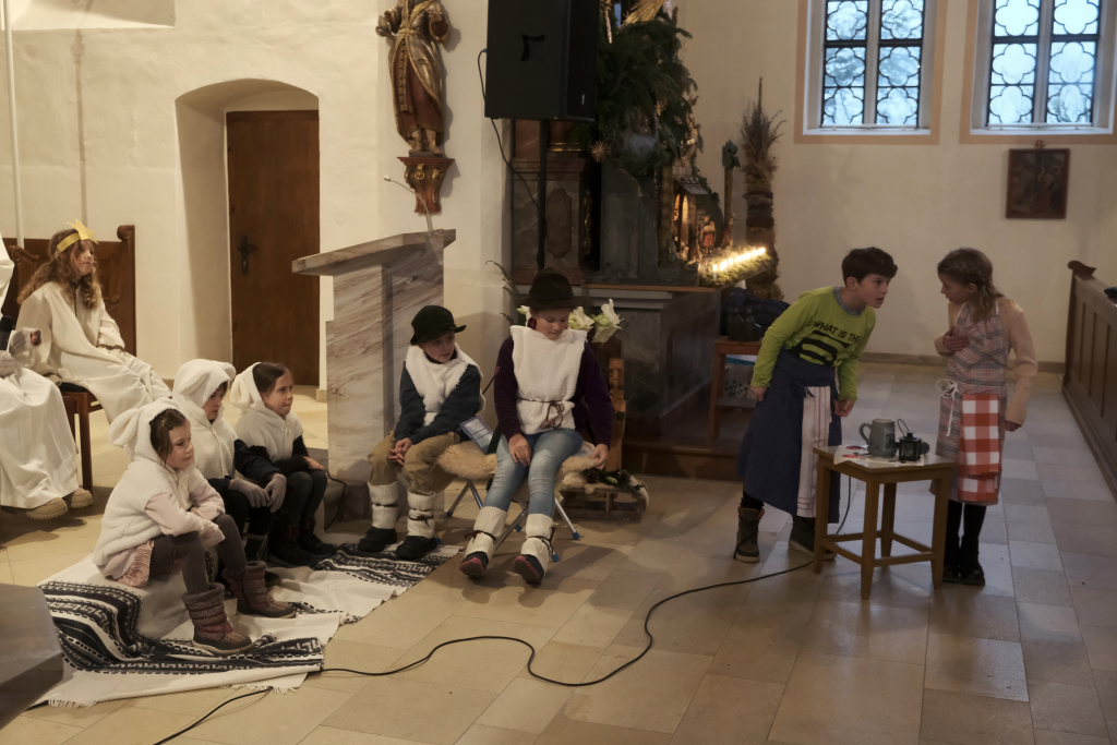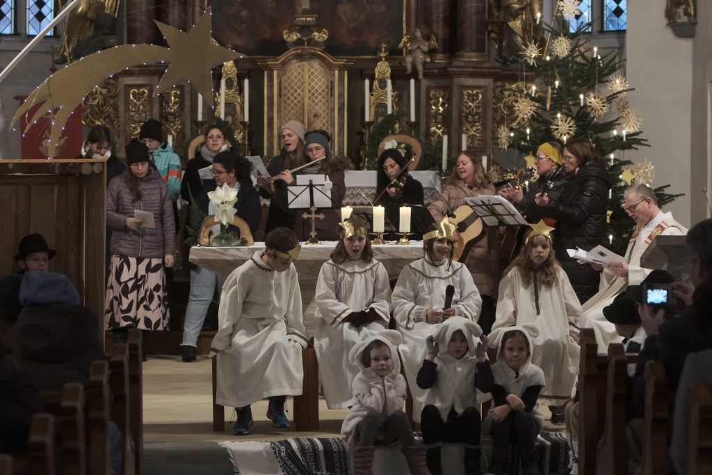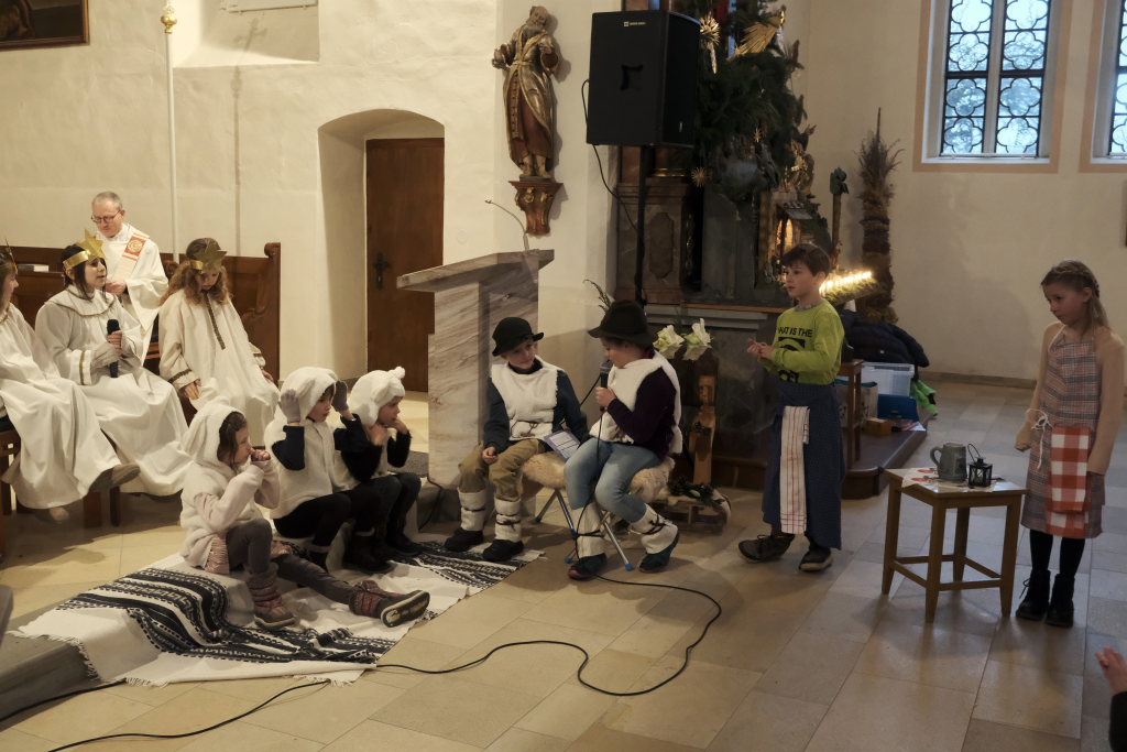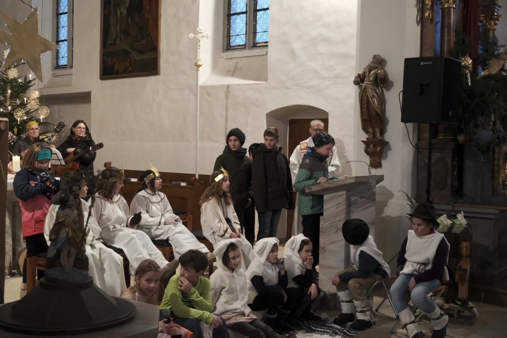 Unterschwarzach – In jeder der zehn Kirchengemeinde der Seelsorgeeinheit Bad Wurzach wird an Heiligabend von Schülern ein Krippenspiel in Verbindung mit einem Wortgottesdienst aufgeführt, so auch in der Kirche St. Gallus in Unterschwarzach, wo die 3. Klasse der Grundschule gemeinsam mit der Singgruppe der Kirchengemeinde beim von Pfarrer Patrick Meschenmoser zelebrierten Wortgottesdienst das Weihnachtsgeschehen darbot.