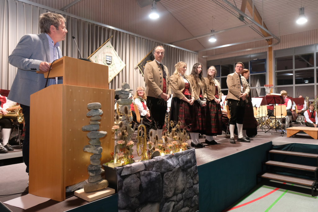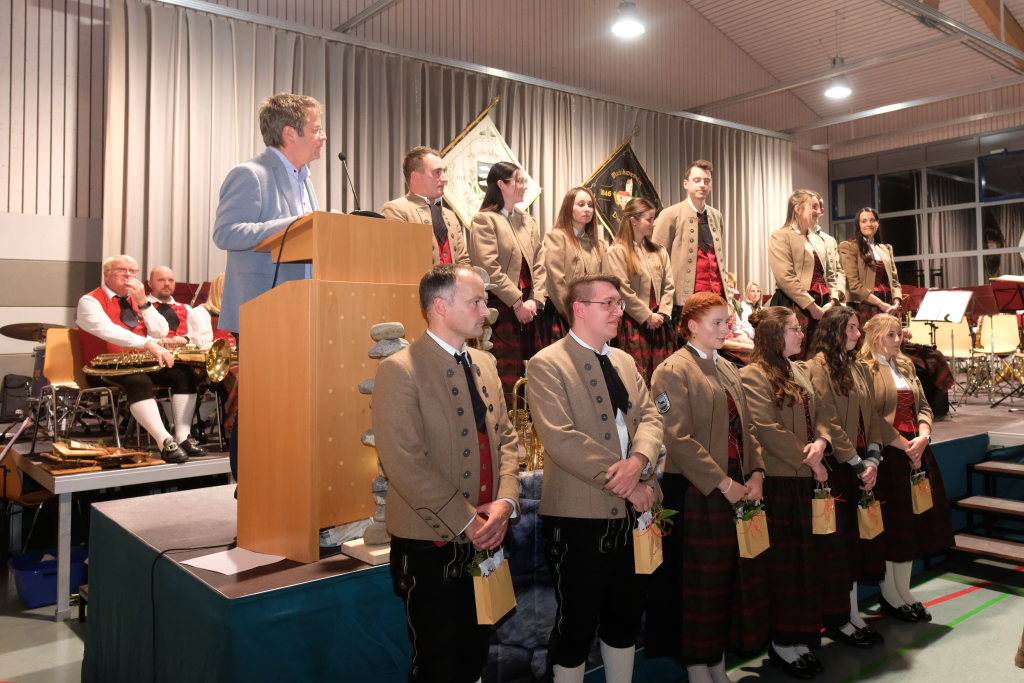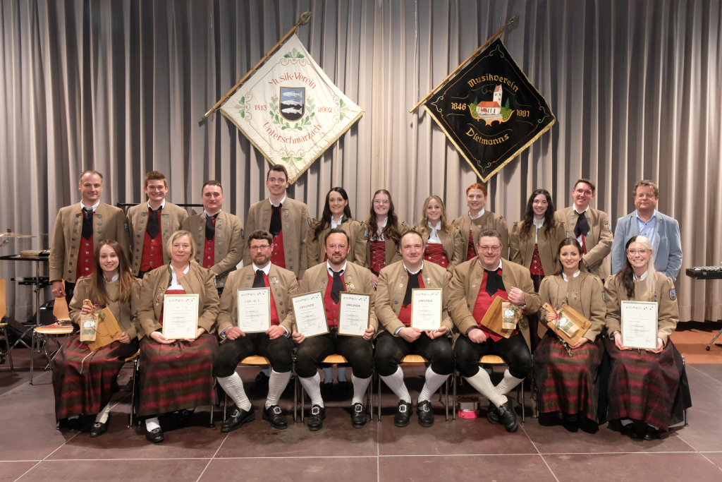 Dietmanns – Der stellvertretende Kreisvorsitzende des Blasmusikkreisverbandes Ravensburg, Peter Zauner, durfte bei dem Jahreskonzert in Dietmanns 22 Musiker mit Ehrennadeln für langjährige aktive Musikertätigkeit sowie mit Fördermedaillen für entsprechend lange Vorstandstätigkeit auszeichnen. Insgesamt belief sich die Anzahl der Jahre im Dienste der Blasmusik auf 365 Jahre.