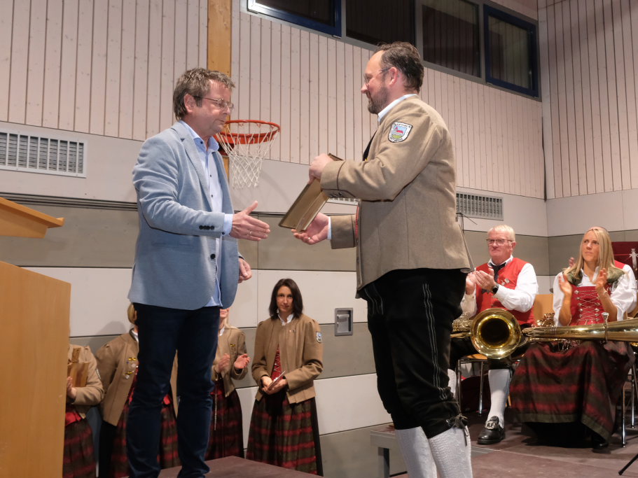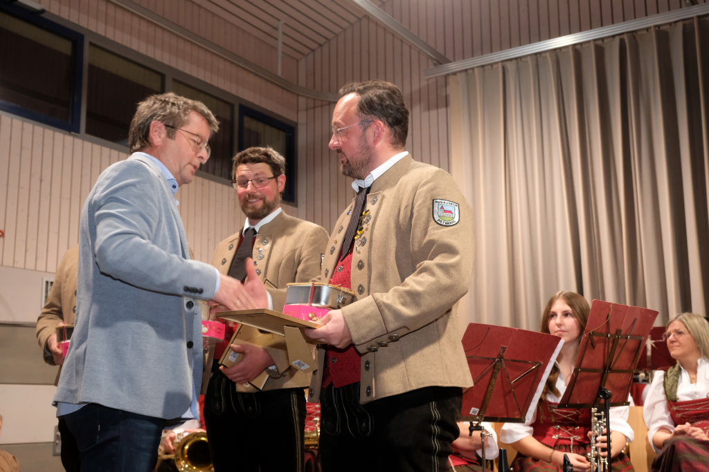 Sebastian Heber erhielt eine vereinsinterne Ehrung, da der Hornist zwar schon zum lebenden Inventar des Vereines zählt, er aber von seinem Heimatverein, dem MV Oberessendorf, für die Ehrung durch den Blasmusikverband vorgeschlagen wurde.