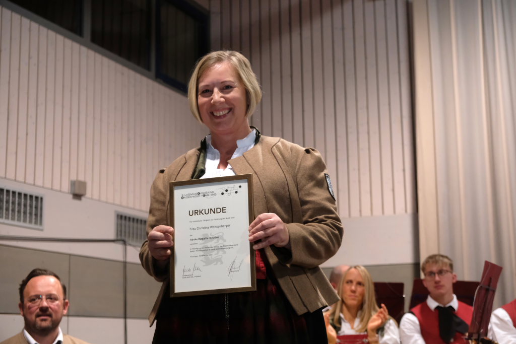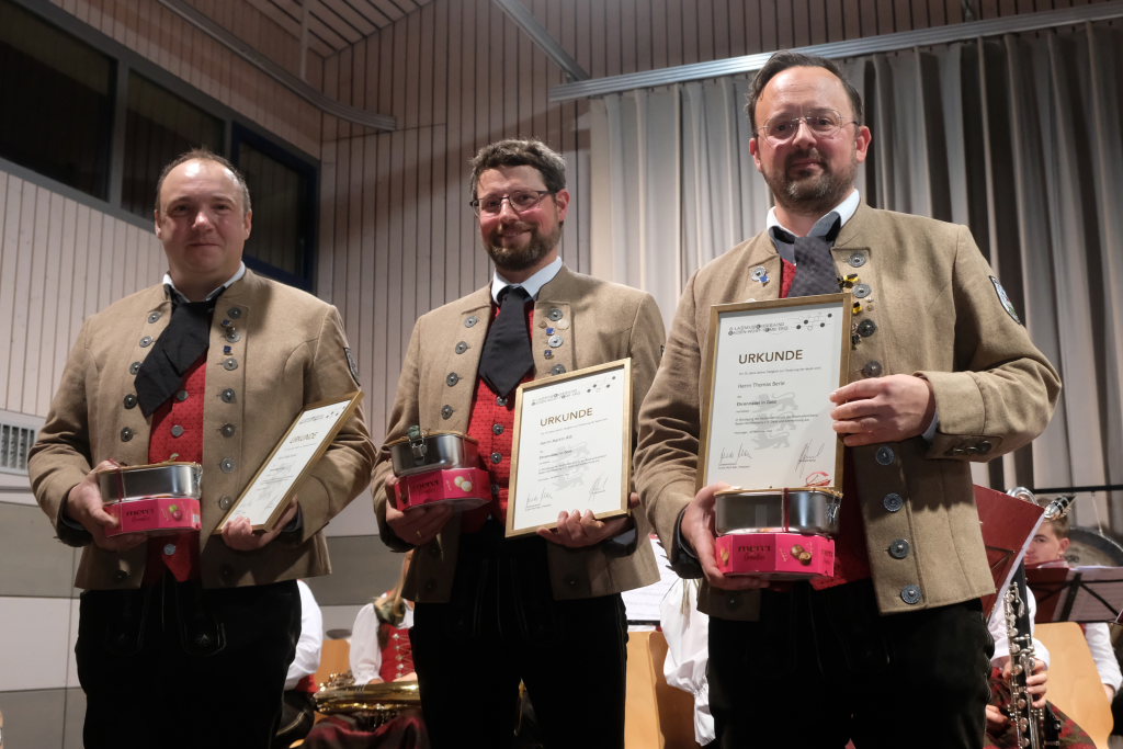 Die Fördermedaille in Bronze mit Urkunde für 10-jährige Tätigkeit zum Wohle des Vereines erhielt Alina Jäger von Zauner überreicht. Für 15 Jahre Tätigkeit im Vorstand erhielt Christina Weissenberger die Fördermedaille in Silber. Thomas Berle wurde mit der Fördermedaille in Gold mit Urkunde für seine 20-jährige Tätigkeit in verschiedenen Vorstandspositionen des Musikvereines geehrt.