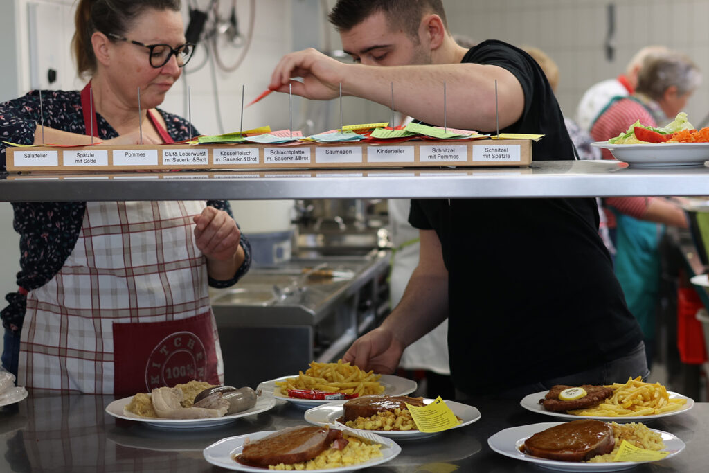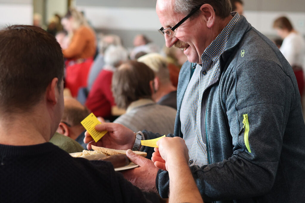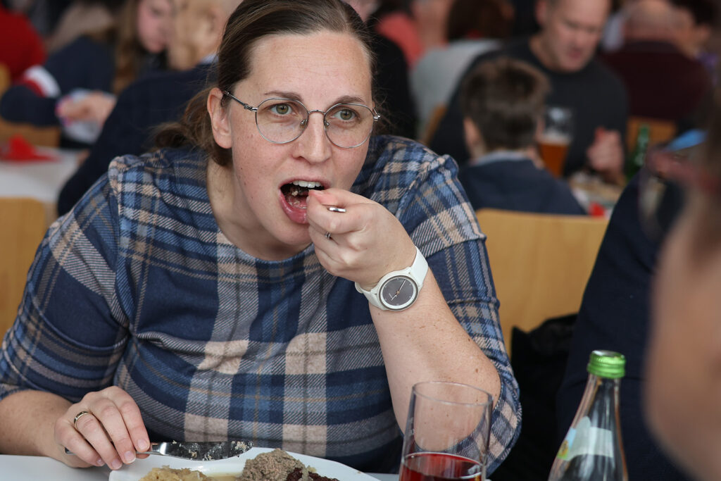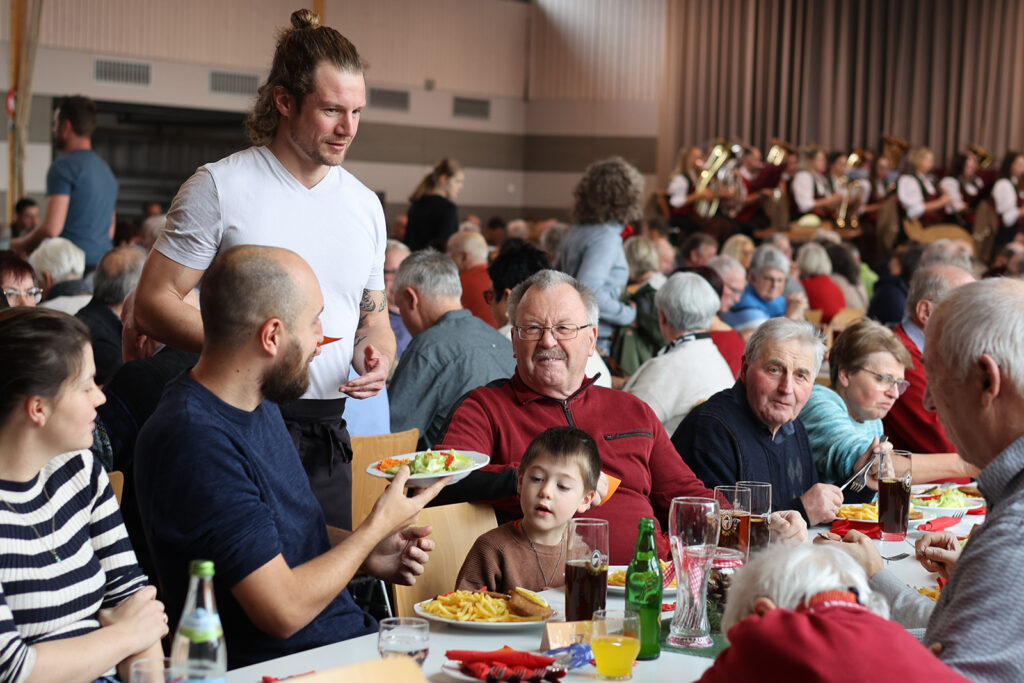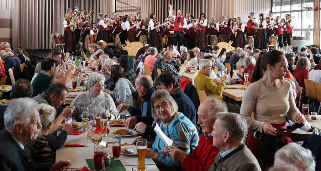 Die Gäste konnten sich auf eine Vielzahl von heimischen Spezialitäten freuen wie Blut- und Leberwurst, Kesselfleisch mit Sauerkraut und Brot – alles für nur zehn Euro. Besonders beliebt war auch der Dietmannser Gefüllte Saumagen mit Spätzle sowie die Schlachtplatte, die für etwas mehr Geld angeboten wurde. Die Kombination aus herzhaften Speisen, der Blasmusik und der geselligen Atmosphäre machte die Metzelsupp‘ zu einem Erlebnis.