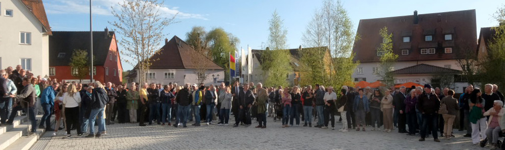 Schlag 19.00 Uhr erschien der gewählte Kandidat Florian Schiller aus Richtung „Torfstecher“, während die aktuelle Amtsinhaberin Alexandra Scherer mit Ehemann Erwin, mit Tochter und Sohn schon einige Zeit auf dem Klosterplatz weilte, wo sich bis dahin schon eine große Menschenmenge versammelt hatte. Zur gleichen Zeit musste der Leiter des Gemeindewahlausschusses, der Erste Bürgermeisterstellvertreter Klaus Schütt, die Wartenden noch vertrösten: Zur Bekanntgabe des Wahlergebnisses brauchte er noch die schriftliche Bestätigung von Wahlleiter Jan Högerle, so dass zunächst die Stadtkapelle einen ersten Marsch zur Einstimmung auf die Feierlichkeiten spielte.