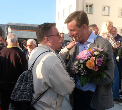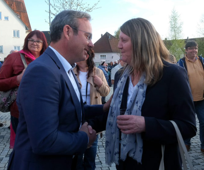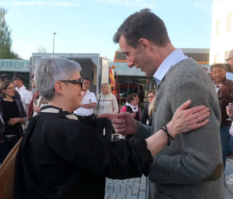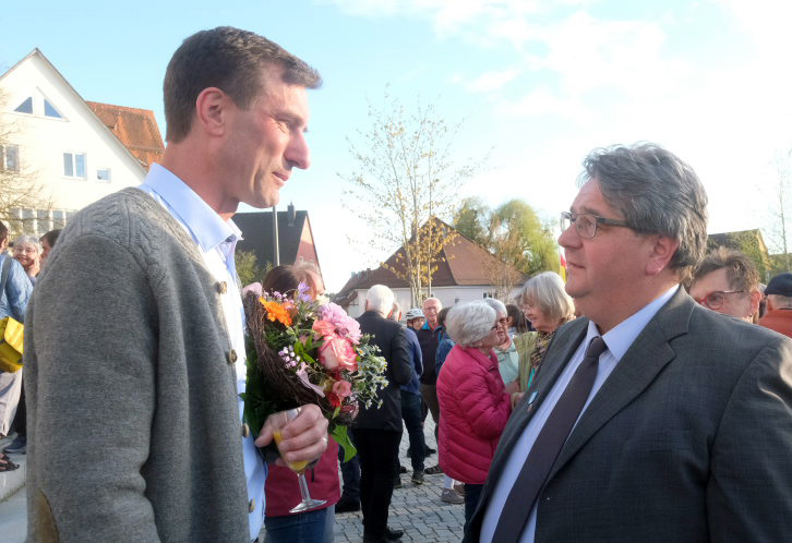 Viele der aus der Umgebung gekommenen Bürgermeister spendeten zunächst der nun abgewählten Alexandra Scherer Trost, ehe sie Florian Schiller gratulierten. Unter den angereisten Bürgermeistern war auch Irene Brauchle, eine Wurzacherin, die sich an diesem Abend sehr gut in Frau Scherer hineinversetzen konnte, war sie doch vor gar nicht so langer Zeit aufgrund einer Kampagne in den sogenannten Sozialen Medien in der Nachbargemeinde Rot an der Rot ebenfalls nach ihrer ersten Amtsperiode abgewählt worden. Auch viele Mitarbeiter aus den verschiedenen Dezernaten des Rathauses spendeten Alexandra Scherer Trost.