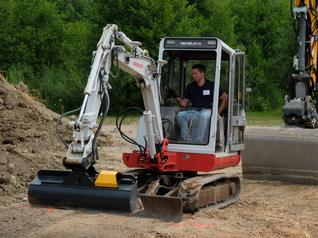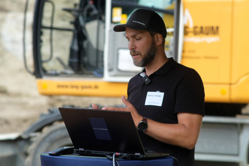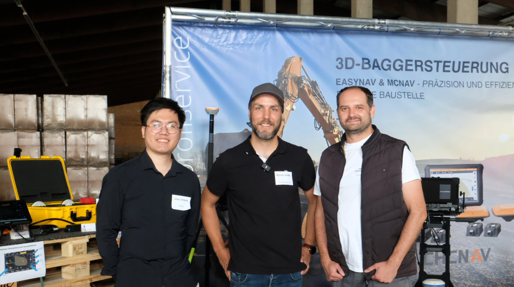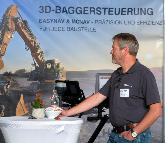 Parallel dazu präsentierte Matthias Taube von messprofiservice innovative und kostengünstige Baggersteuerungen vom Hersteller CHCNAV an verschiedenen Baumaschinen. Über Live-Streams wurden die Funktionsweise und Genauigkeit der Steuerung eindrucksvoll vermittelt.