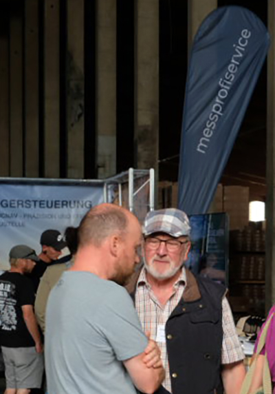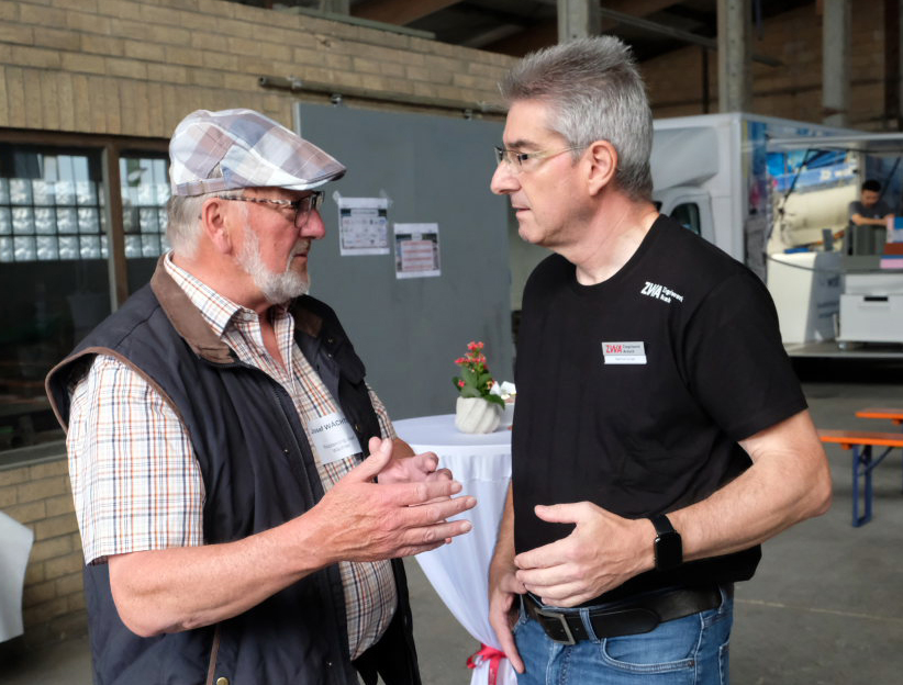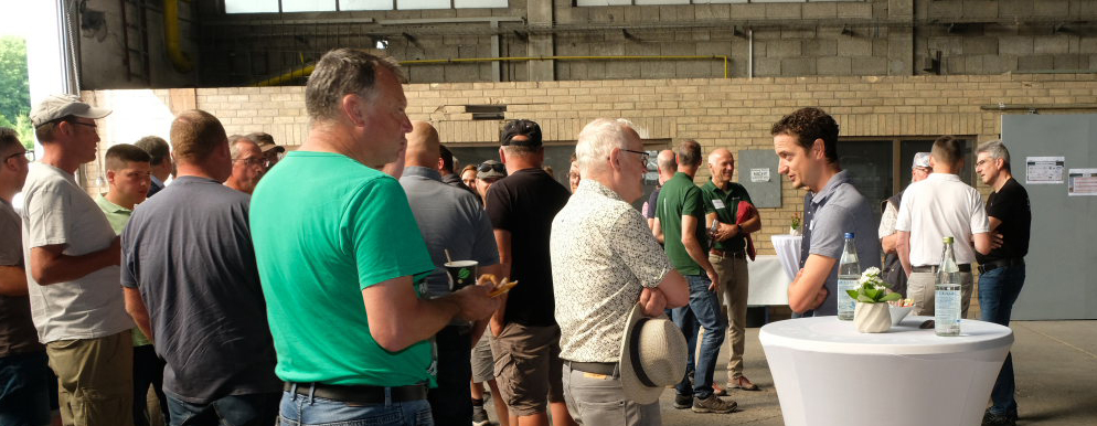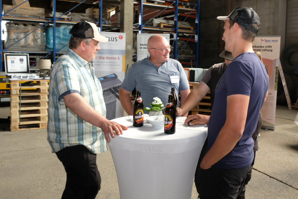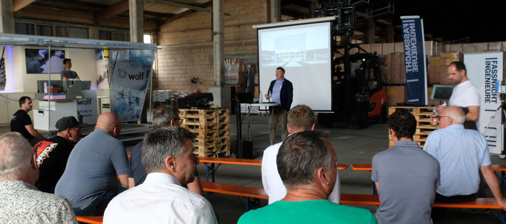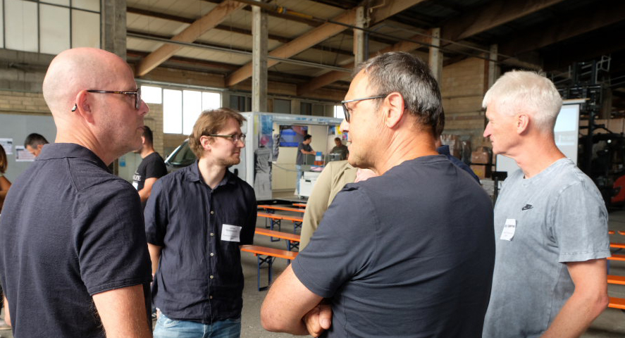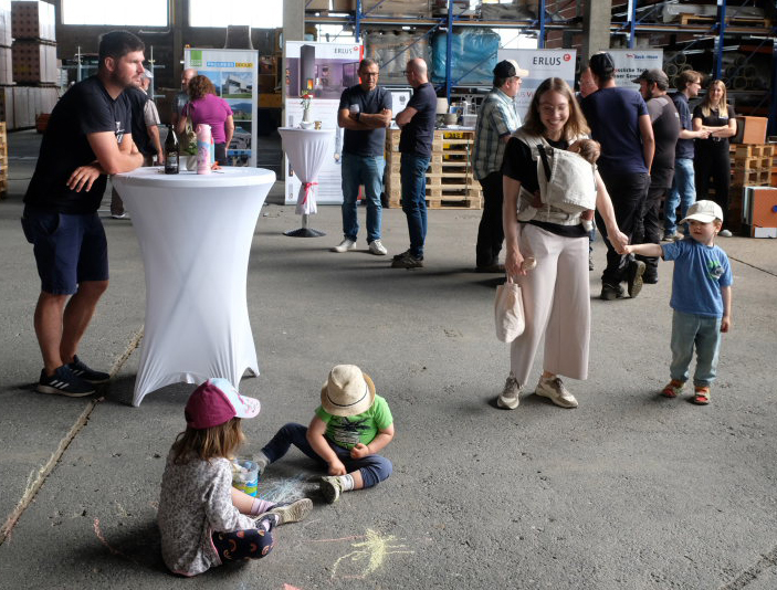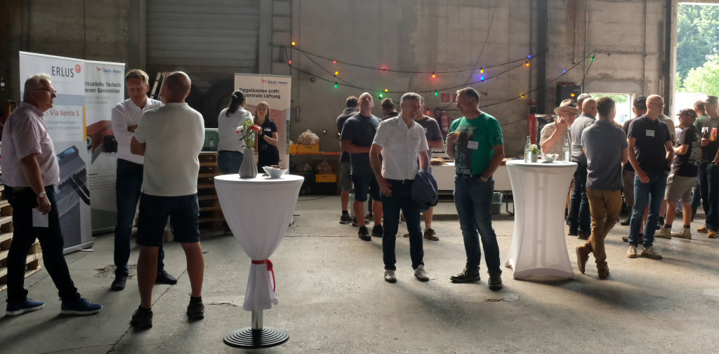 Die eigens leergeräumte Lagerhalle verwandelte sich für die Veranstaltung in eine Messefläche mit Bewirtung durch ein Grillteam und vielen Möglichkeiten für fachlichen Austausch zwischen Besuchern und Experten.