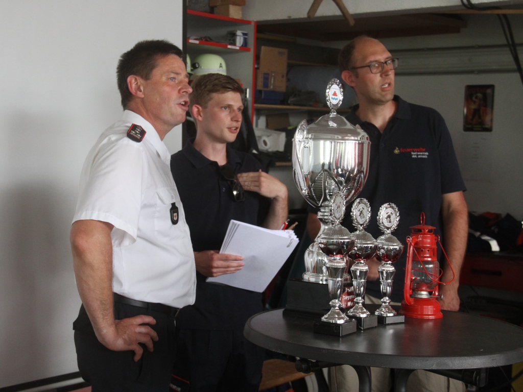 Um diesen Pokal ging es. Links Gesamtkommandant Rolf Butscher.