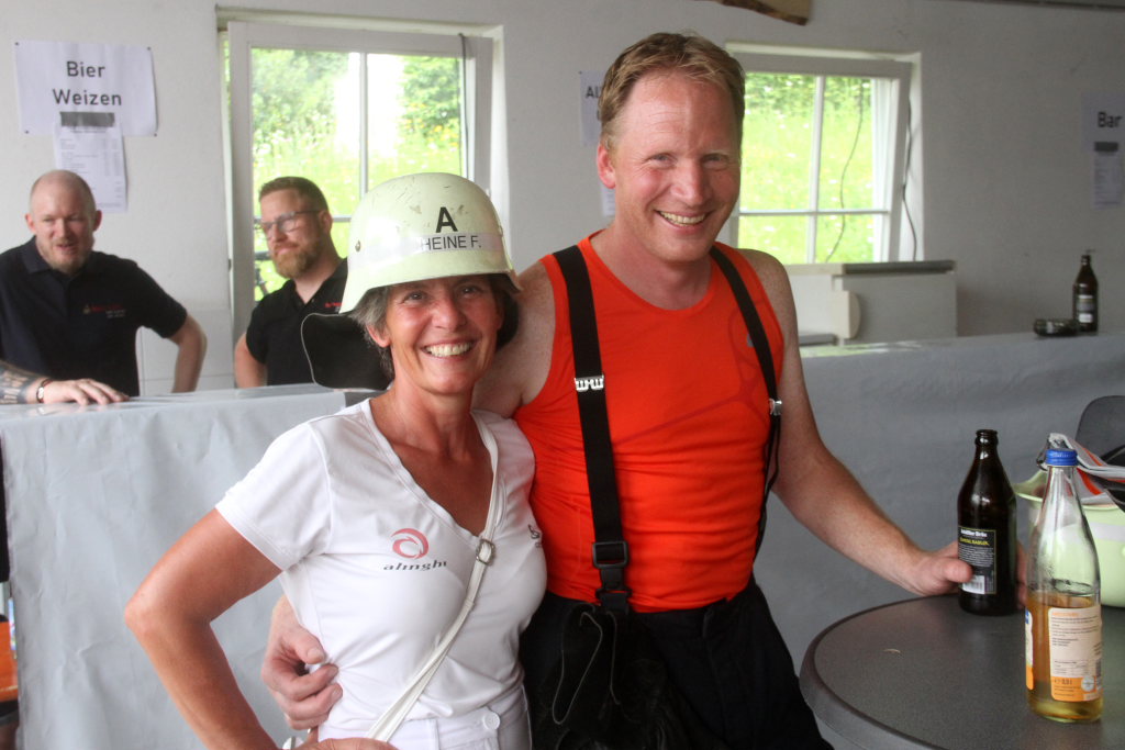 Ortsvorsteher Mike Rauneker bewunderte die exklusive Beameraufhängung, dank der am Abend dann das Public Viewing stattfinden konnte. Florian Buck sagte schmunzelnd dazu: „Das kommt davon, wenn man einen Schreiner, einen Zimmermann, zwei Elektriker und einen Metallbauer in seinen Reihen hat.“