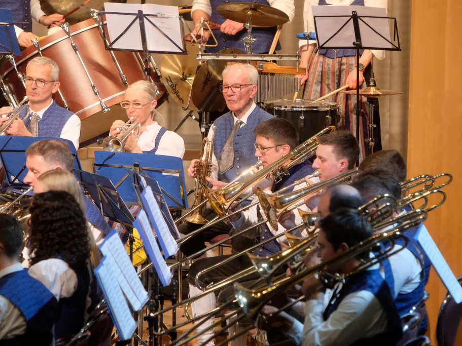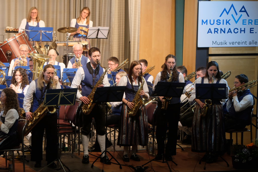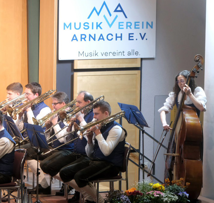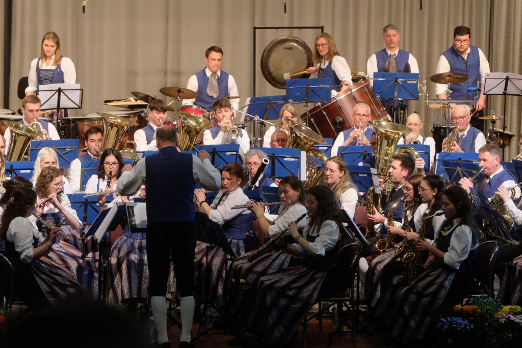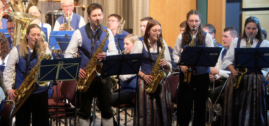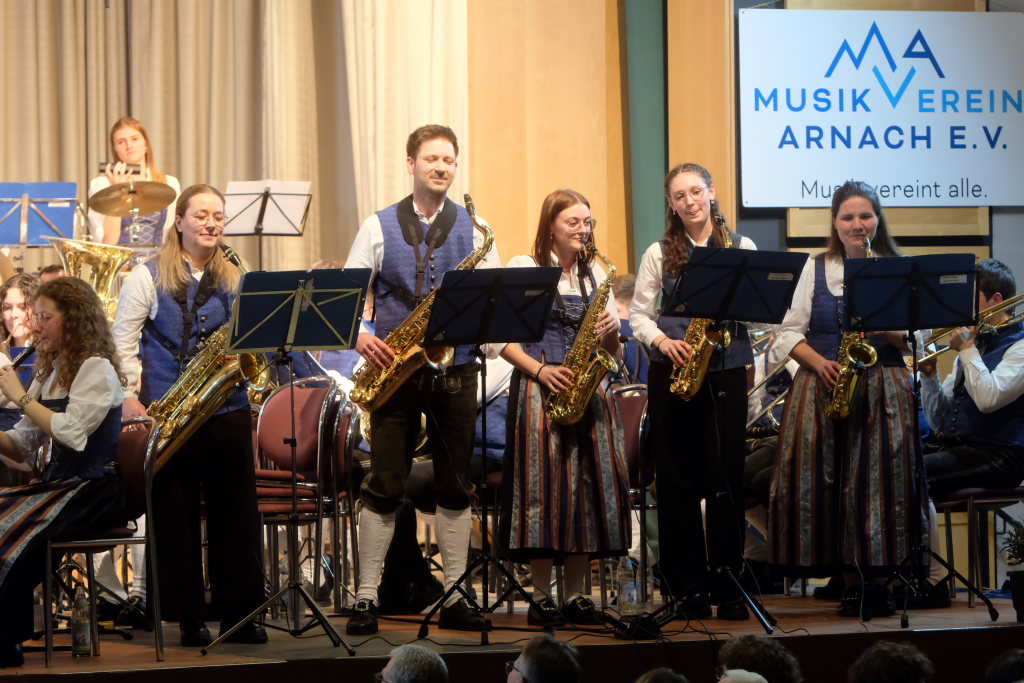 Arnach/Bad Wurzach – Am Palmsonntag veranstaltete der Musikverein Arnach sein diesjähriges Frühjahrskonzert im vollbesetzten Kursaal vor Vertretern von Musikkapellen aus der Region sowie zahlreichen Ehrenmitgliedern und Ehrengästen. Unter der Leitung von Dirigent Berthold Hiemer haben die Musikanten in den letzten Monaten wieder ein interessantes und abwechslungsreiches Programm einstudiert, mit Werken aus unterschiedlichen Stilrichtungen wie etwa eine sinfonische Ouvertüre, ein Saxophon-Medley aus dem Bereich Jazz oder Filmmelodien aus einem Kinofilm.