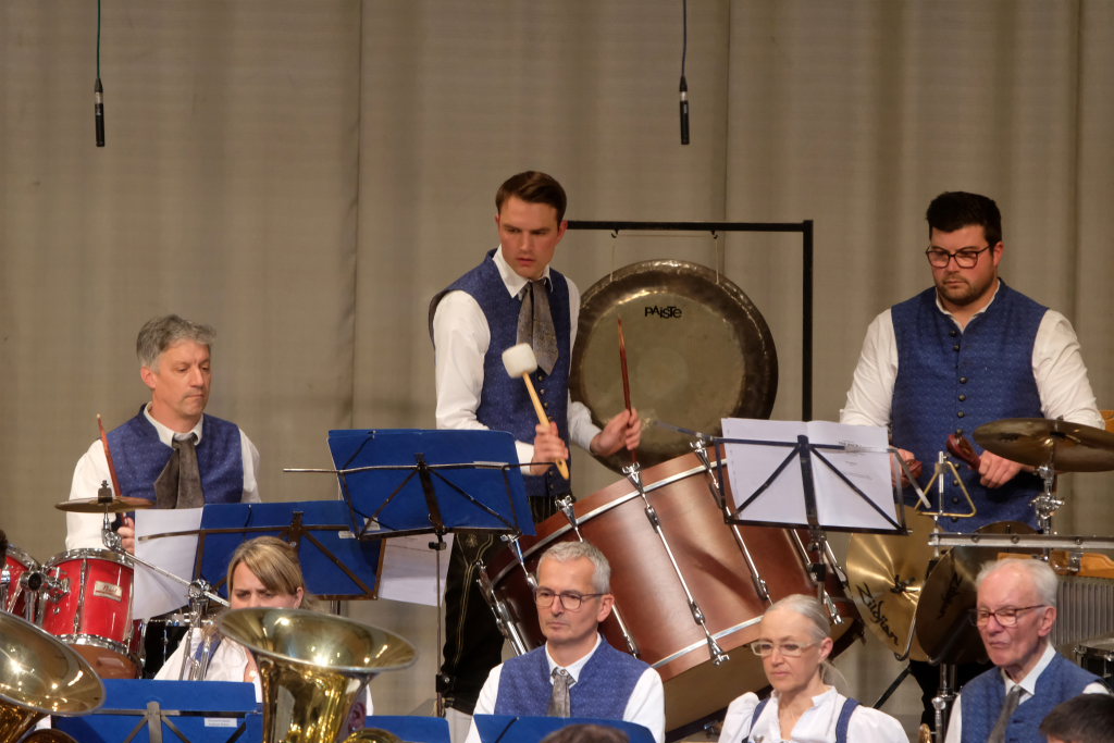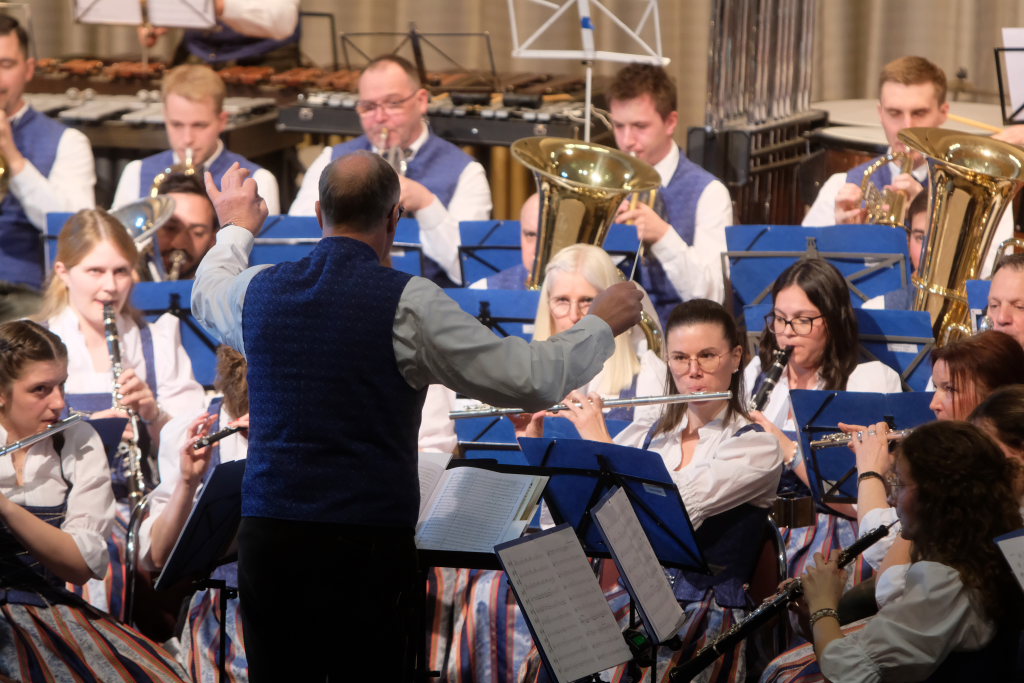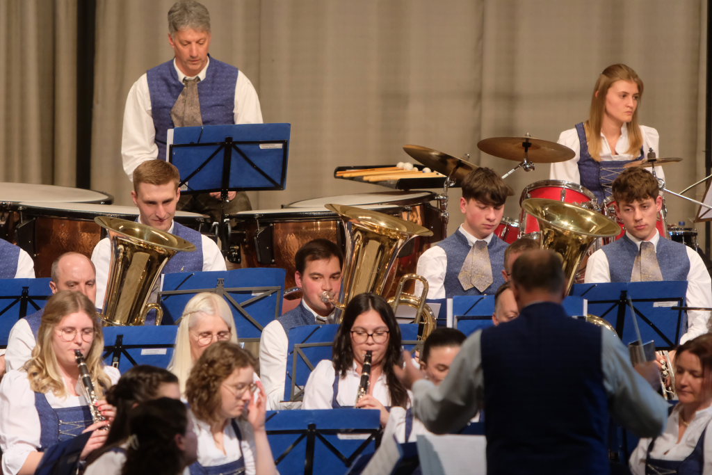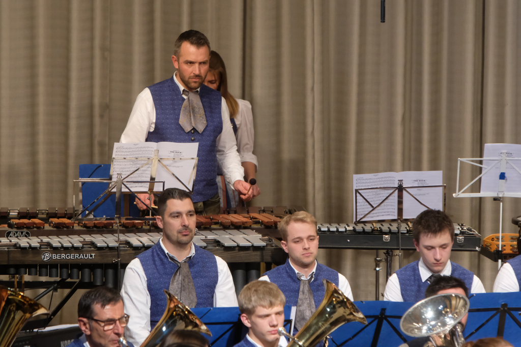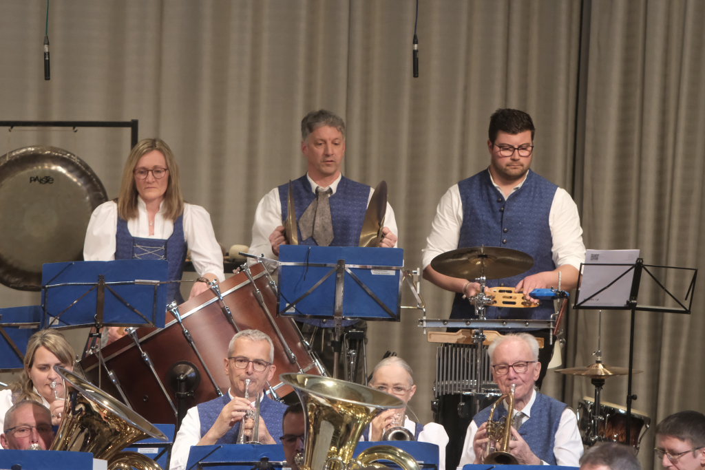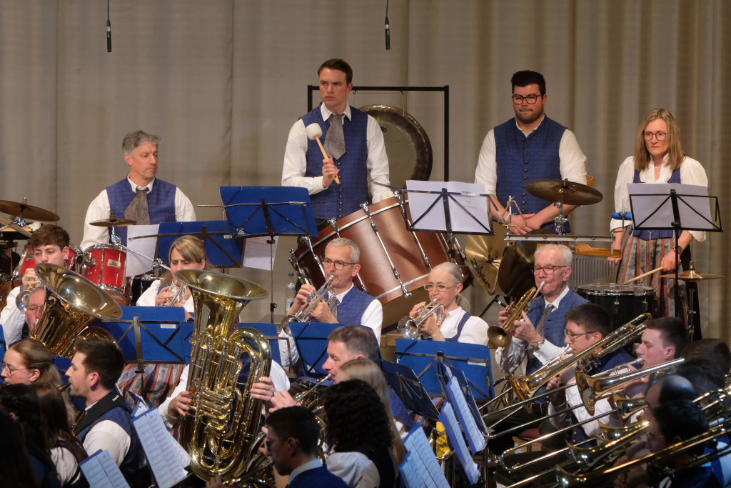 Mit der Konzertfanfare „Covenant“ von Robert W. Smith, einem der beliebtesten – und mit über 600 Werken einer der produktivsten – amerikanischen Komponisten, setzte Dirigent Berthold Hiemer, der selbst durch das Programm führte, einen „Hallo-Wach-Effekt“ an den Beginn des Konzertes.