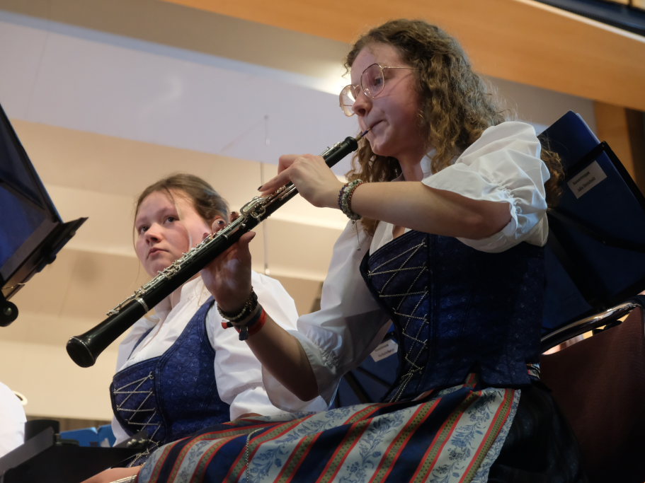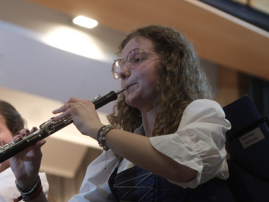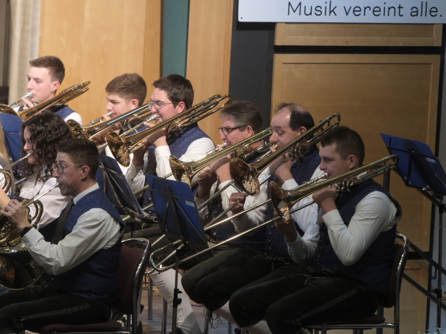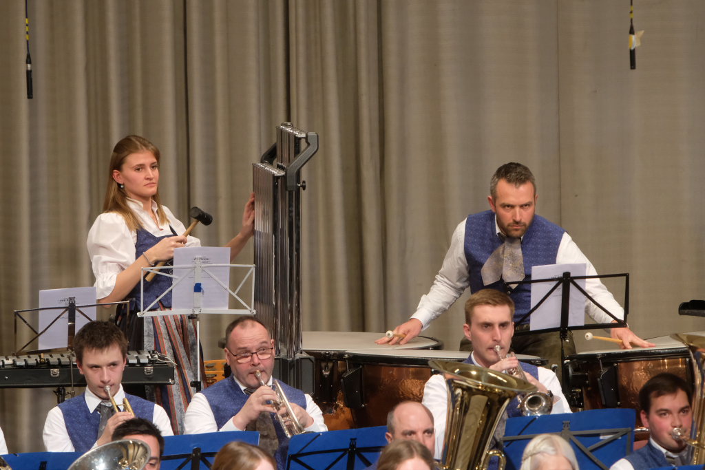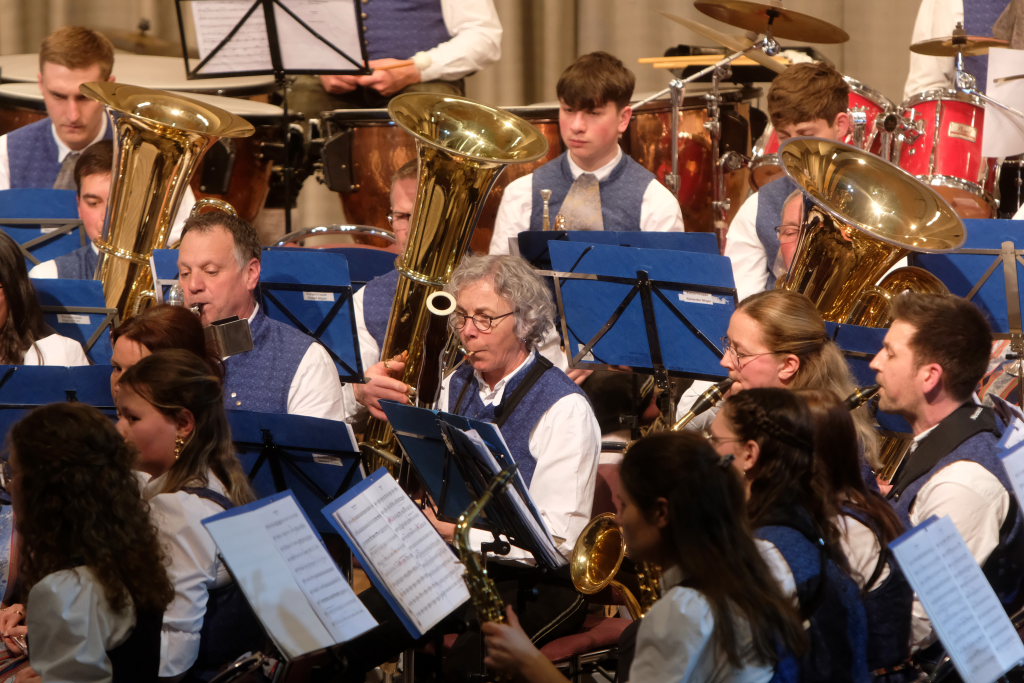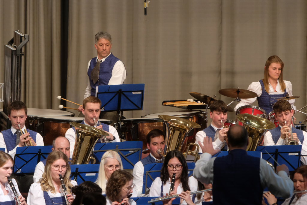 Mit der Konzertfanfare „Covenant“ von Robert W. Smith, einem der beliebtesten – und mit über 600 Werken einer der produktivsten – amerikanischen Komponisten, setzte Dirigent Berthold Hiemer, der selbst durch das Programm führte, einen „Hallo-Wach-Effekt“ an den Beginn des Konzertes.