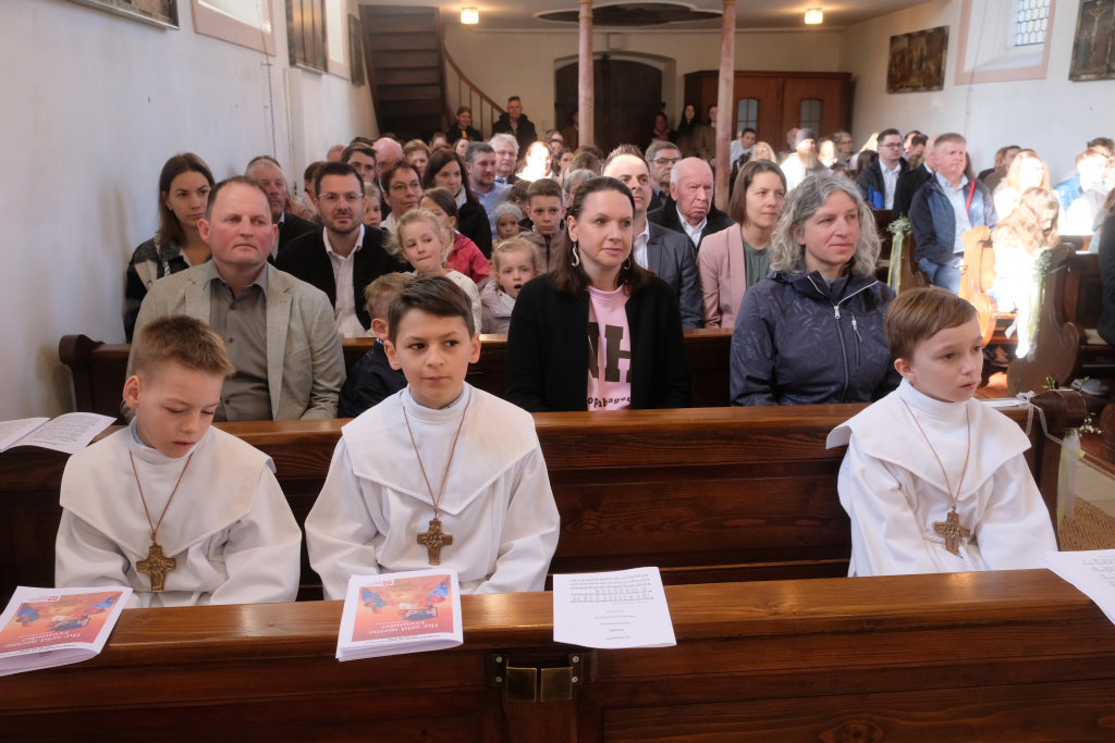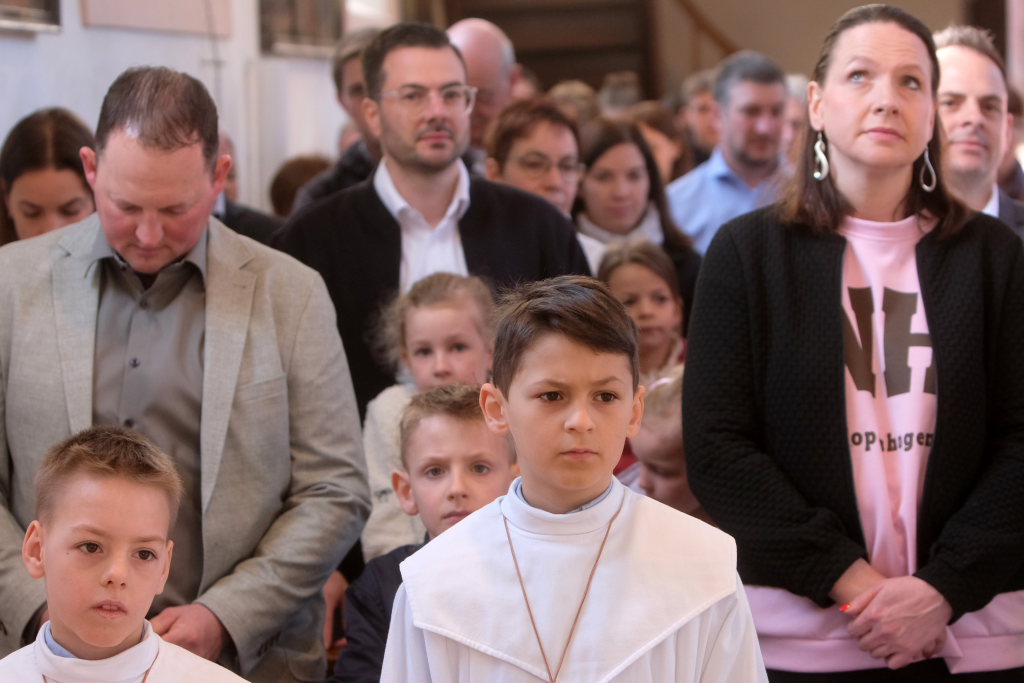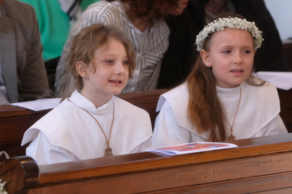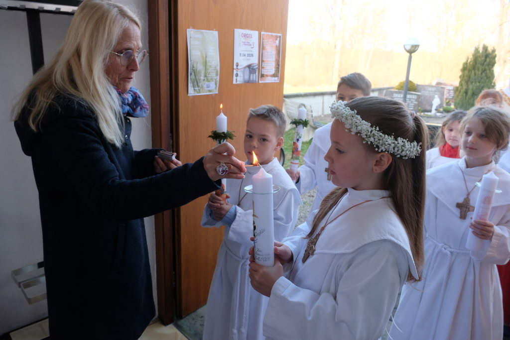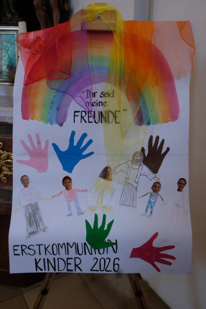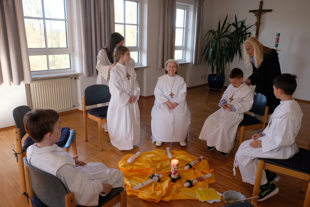 „Das Herz versteht und das Herz glaubt“ sagte die Pastoralreferentin Anna-Katharina Merk in der Predigt, nachdem sie die Kinder gefragt hatte, was in einer Freundschaft wichtig sei und diese geantwortet hatten: „Vertrauen und sich auf den Anderen verlassen können“. Am Gründonnerstag hat Jesus zu seinen Jüngern gesagt: „Das ist mein Blut, das ist mein Leib“ – und damit für seine Freunde –war er bereit, sich hinzugeben und für sie zu sterben. „Etwas über die Eucharistie lernen und Fragen stellen ist wichtig, gleichzeitig ist die Eucharistie ein Geheimnis, das sich dem liebenden Herzen öffnet“.