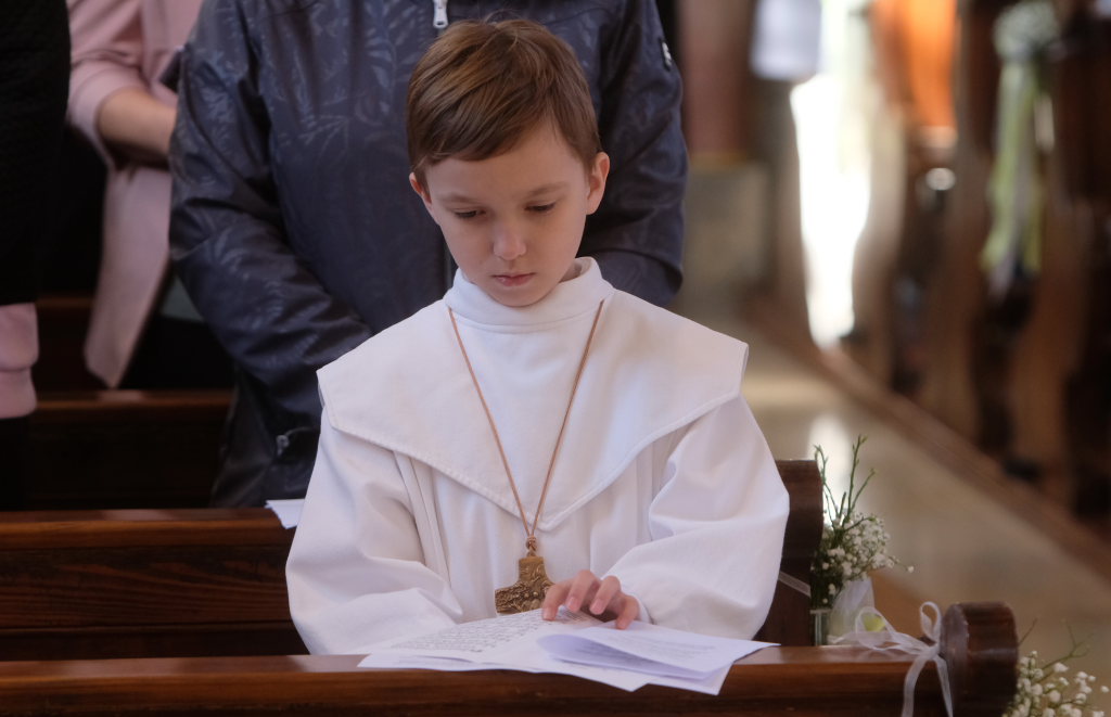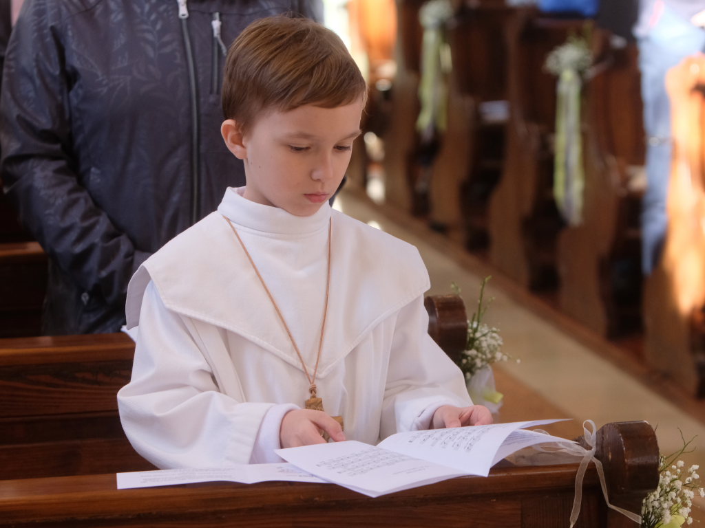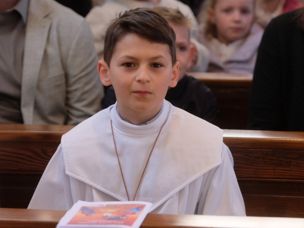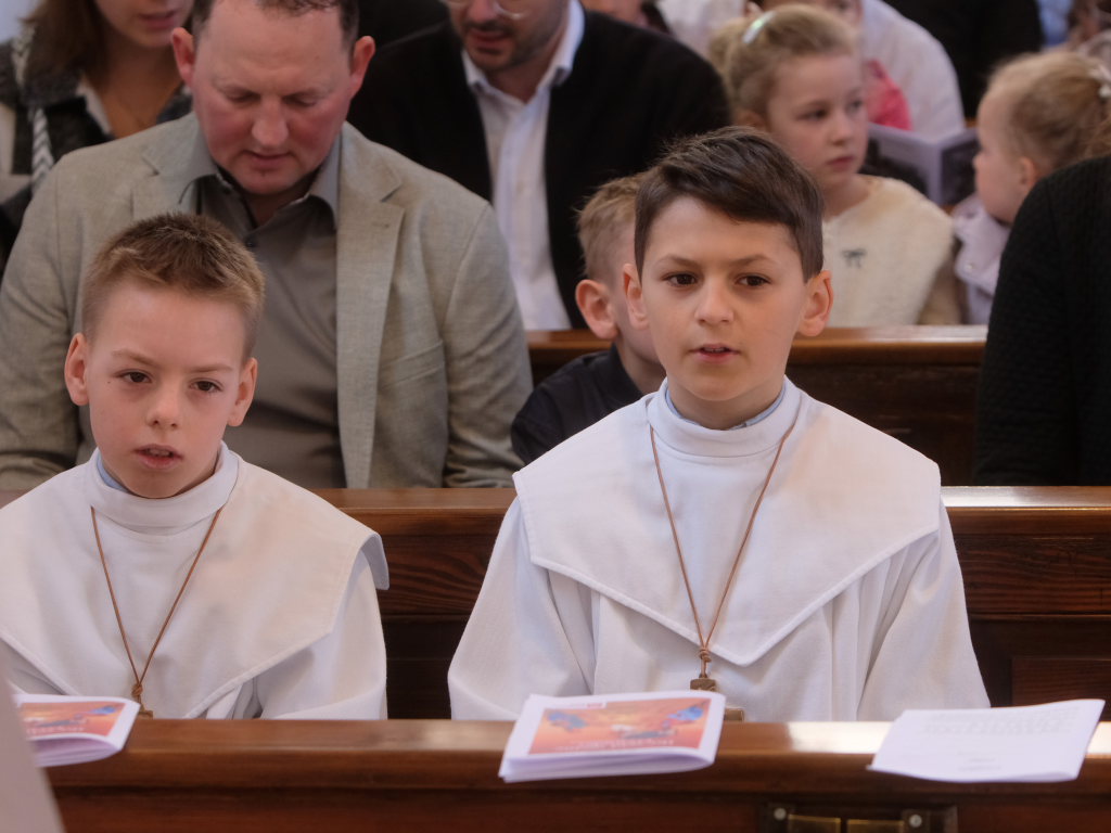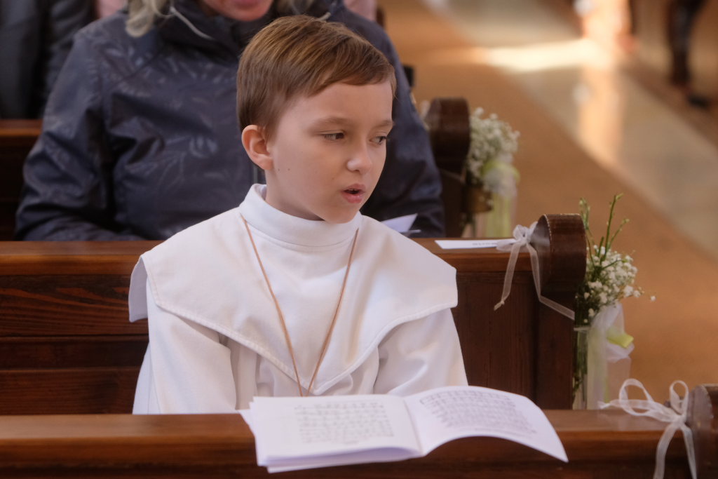 „Das Herz versteht und das Herz glaubt“ sagte die Pastoralreferentin Anna-Katharina Merk in der Predigt, nachdem sie die Kinder gefragt hatte, was in einer Freundschaft wichtig sei und diese geantwortet hatten: „Vertrauen und sich auf den Anderen verlassen können“. Am Gründonnerstag hat Jesus zu seinen Jüngern gesagt: „Das ist mein Blut, das ist mein Leib“ – und damit für seine Freunde –war er bereit, sich hinzugeben und für sie zu sterben. „Etwas über die Eucharistie lernen und Fragen stellen ist wichtig, gleichzeitig ist die Eucharistie ein Geheimnis, das sich dem liebenden Herzen öffnet“.
