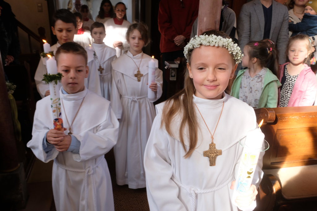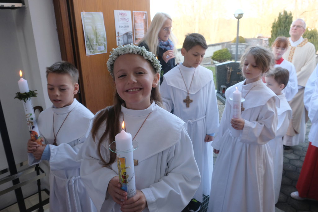 In Dietmanns wird tradtionell am Ostermontag der „Weisse Sonntag“, die Erstkommunion gefeiert. Für die Kinder ist das der Höhepunkt, auf den sie sich so lange vorbereitet haben: Sie dürfen im Gottesdienst zum ersten Mal die Hostie, den Leib Christi, empfangen. Der Gottesdienst stand unter dem Motto „Ihr seid meine Freunde“, angelehnt an die Worte Jesu zu seinen Jüngern.