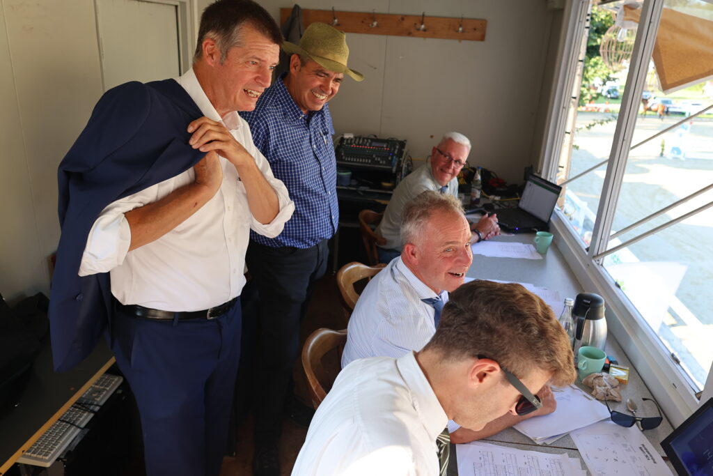 Eine beeindruckende Perspektive ergab sich vom Richterturm aus. Hier war der gelernte Jurist und Strafrichter Alex Müller sehr von der Präzision und computerunterstützter Dokumentation beeindruckt. Vor allem die Geschwindigkeit, wie die Stilnoten gegeben werden, muss ihm aufgefallen sein. Im Turnier-Richterteam sind Holger Martin aus Esslingen und Pferdewirtschaftsmeister Markus Mang, der seine Berufsentscheidung als junger Mann in Hauerz im Reitverein gefällt hat.