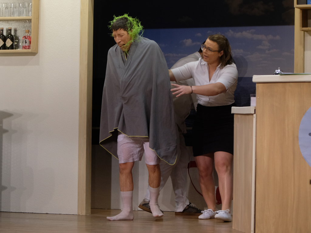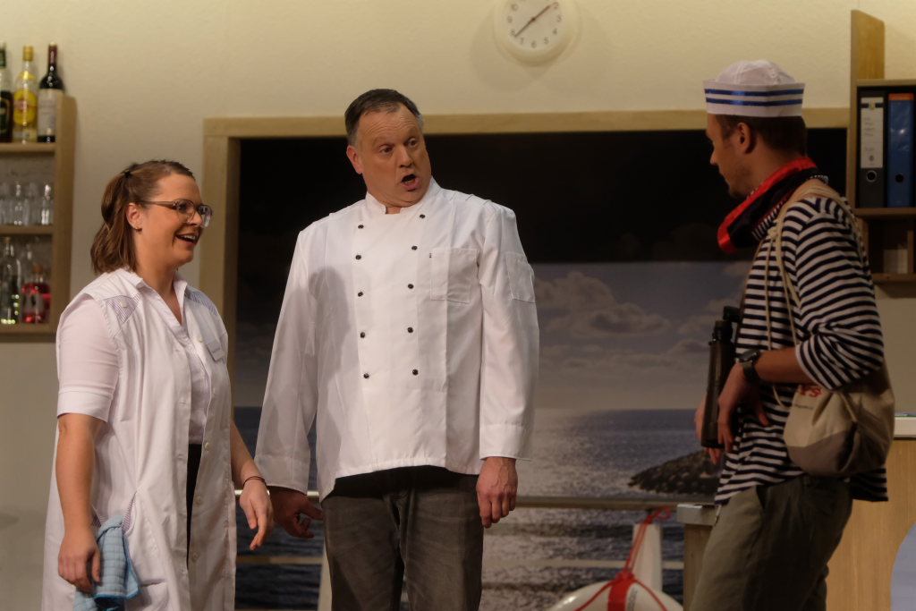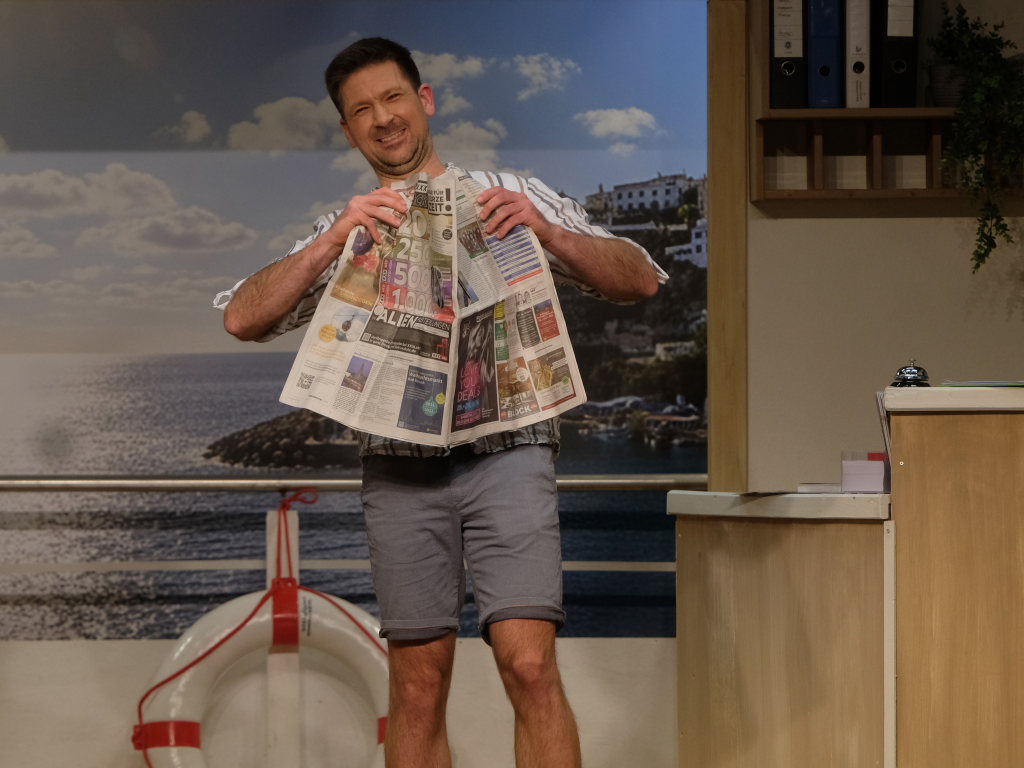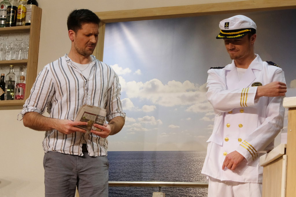 Die besondere Entdeckung dieses Theater-Jahres ist Kornelius Schwarz. Er mischt als Theater-Neuling in seiner Rolle als Schauspieler (!) Henry Kellner das Schiff bzw. die Besatzung und die Passagiere gewaltig auf und bekommt dabei gleich mehrfach die Härte des Berufs aufgezeigt.