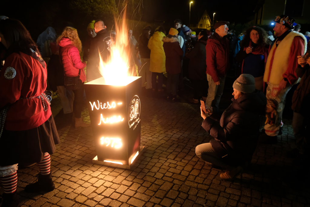 Große Ereignisse werfen in der Haidgauer Fasnetszeit ihre Schatten voraus. Und so war es kein Wunder, dass so viele Narren den Ruf zum Kuhschwanzlüften gehört hatten und im Häs mitsamt Narrensamen zum Rathaus gekommen waren. Daniel Wassner nutzte die Gelegenheit, seine Narren aber auch die Besucher zu den Veranstaltungen der Zunft einzuladen, die sich bereits mit einer ganz besonderen, von Dominik Müller aus Hauerz künstlerisch gestalteten Feuerschale vor dem Rathaus abzeichneten.