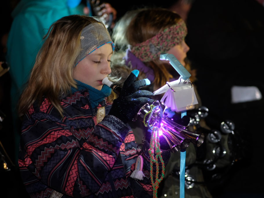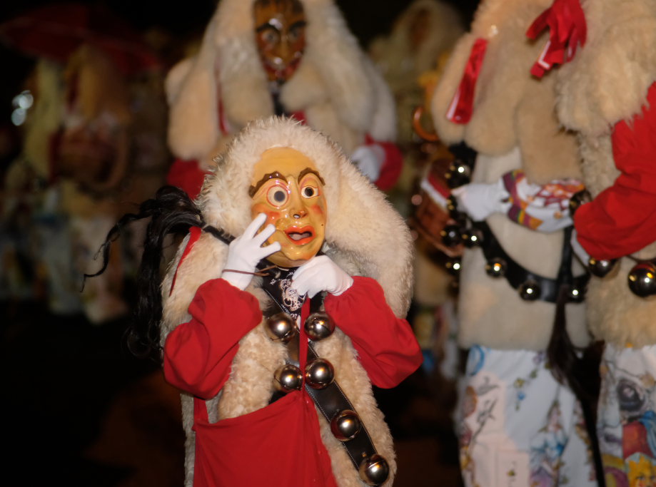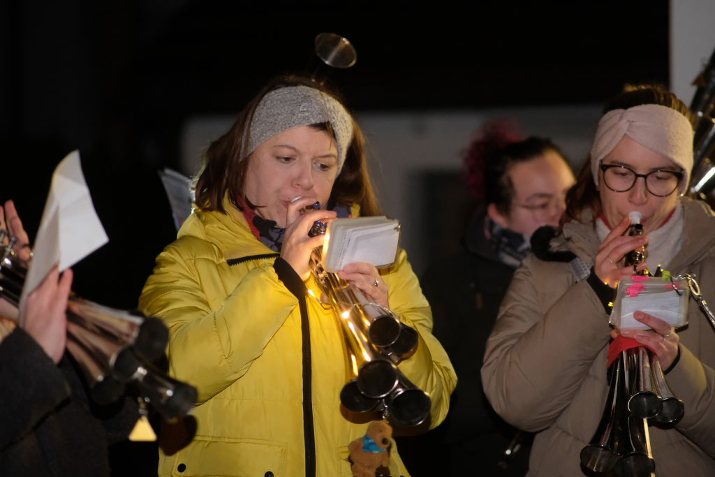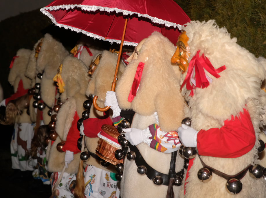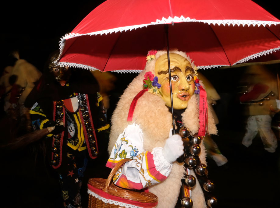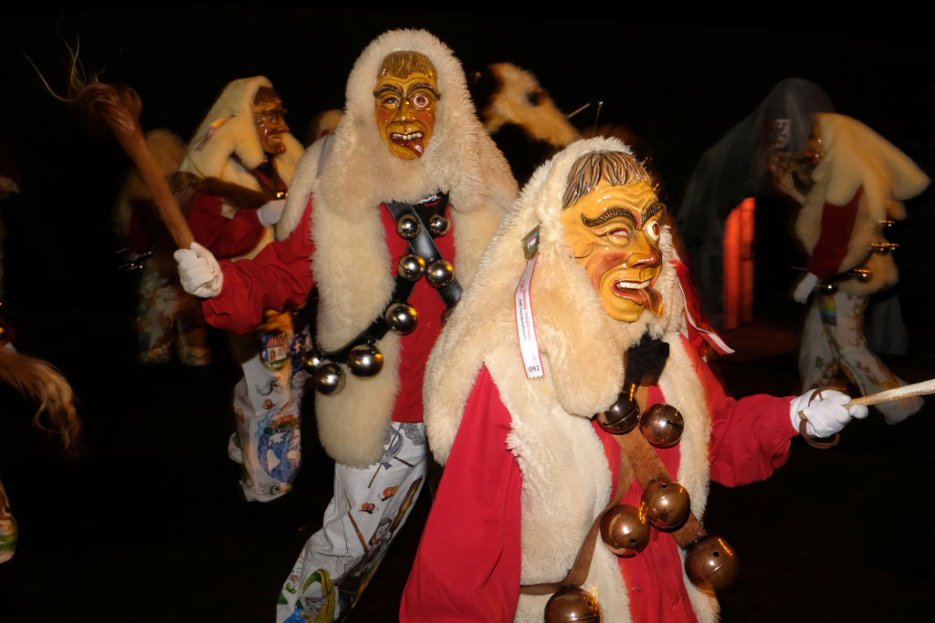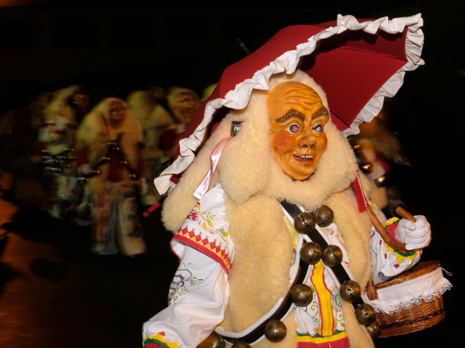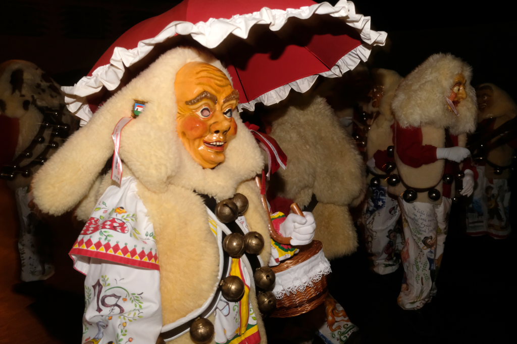 Von – künstlichem – Nebel umwabert stieg der Schwarznarr „Wolfsleib“, von „Wago“ geweckt, der mit seiner Laterne als Erster die Szene betrat, aus seiner Höhle gegenüber des Rathauses. Gemeinsam machten sie sich auf die Suche nach den anderen Narren, die dann von allen Seiten zu ihrem närrischen Treiben zum Haidgauer Rathausplatz strömten. Dort wartete bereits die Schalmeiengruppe D`Hoigamer Schtroßahup`r, die musikalisch – u. a. mit dem Haidgauer Narrenmarsch – die Fasnet miteinläutete. Mit dem alljährlichen von Zunftmeister Daniel Wassner vom Bühnenlädele des Rathauses herabgesprochenen Zaubersatz: „Etz, Ihr Narra, springet zua, und hollet`n raus den Schwanz von dr Kuh!“ wurden die 327 Tage gemeinsam mit den Masken und Häsern in den Truhen ruhenden namensgebenden Accessoires zum kräftigen Auslüften hervorgeholt.