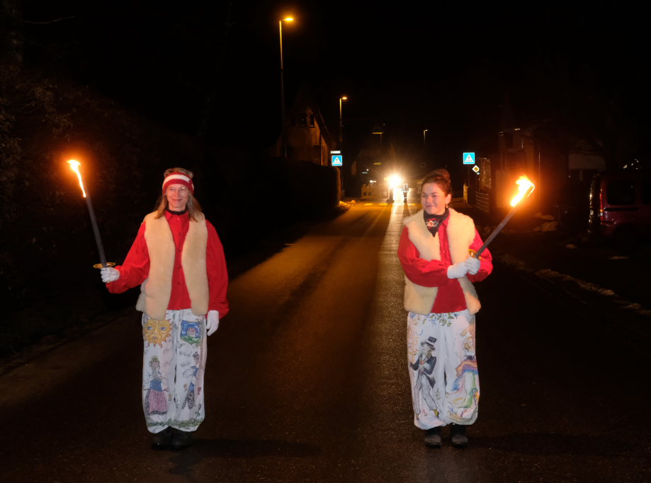 Der Zunftmeister bedankte sich danach noch bei allen an der Organisation des Fasnetsauftaktes Beteiligten, besonders bei Ortsvorsteherin Ernestina Fick, die die Narren immer kräftig unterstützt. Auch der Feuerwehr fürs Absperren der Straße und die Bewirtung sowie den Stroßa Hup´r für die musikalische Umrahmung galt sein Dank.