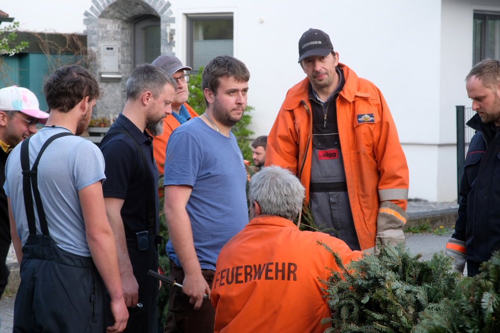 Nachdem die Hauerzer Feuerwehr in ihrer Abteilungsversammlung beschlossen hatte, auch in diesem Jahr wieder einen Maibaum aufzustellen, waren erst einmal viele helfende Hände gefragt: Denn um den Baum wie gewohnt prachtvoll herauszuputzen, stand die Tätigkeit des Kranzens auf dem Programm, wozu Ortsvorsteher Kurt Miller die Bevölkerung herzlichst auf den Freitagabend am 25. April ins Feuerwehrhaus einlud. Und weil auch sehr viele Helfer kamen, konnte rasch zum gemütlichen Teil der Aktion übergegangen werden…