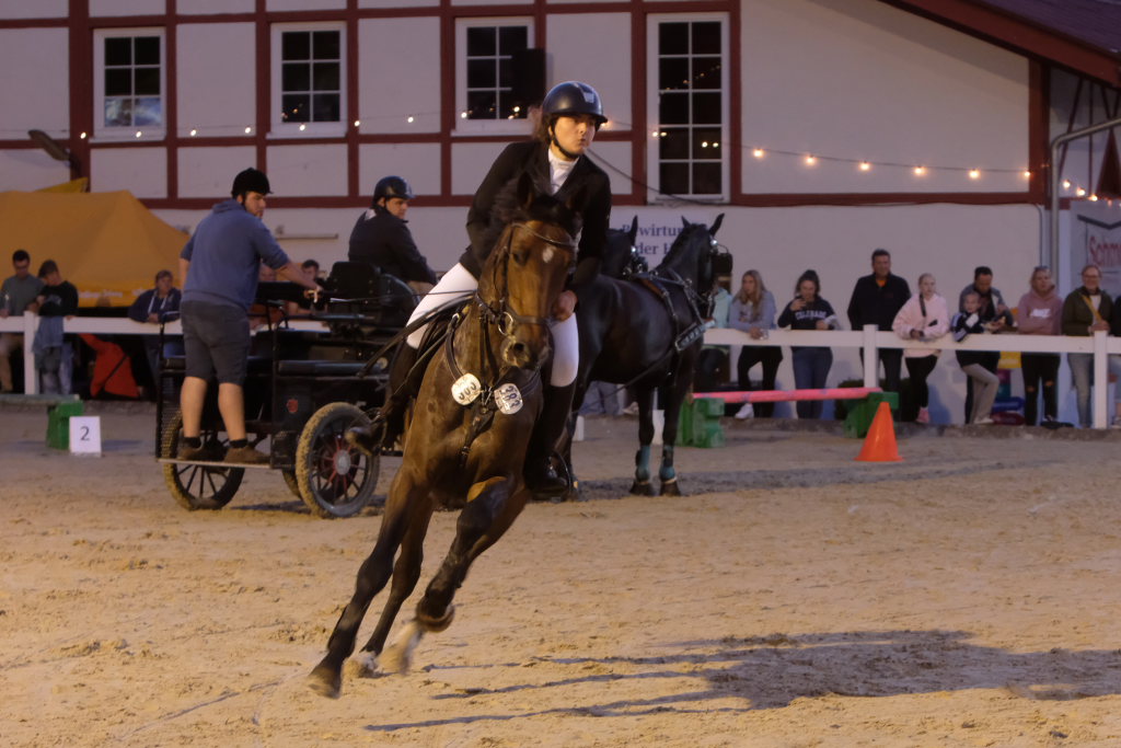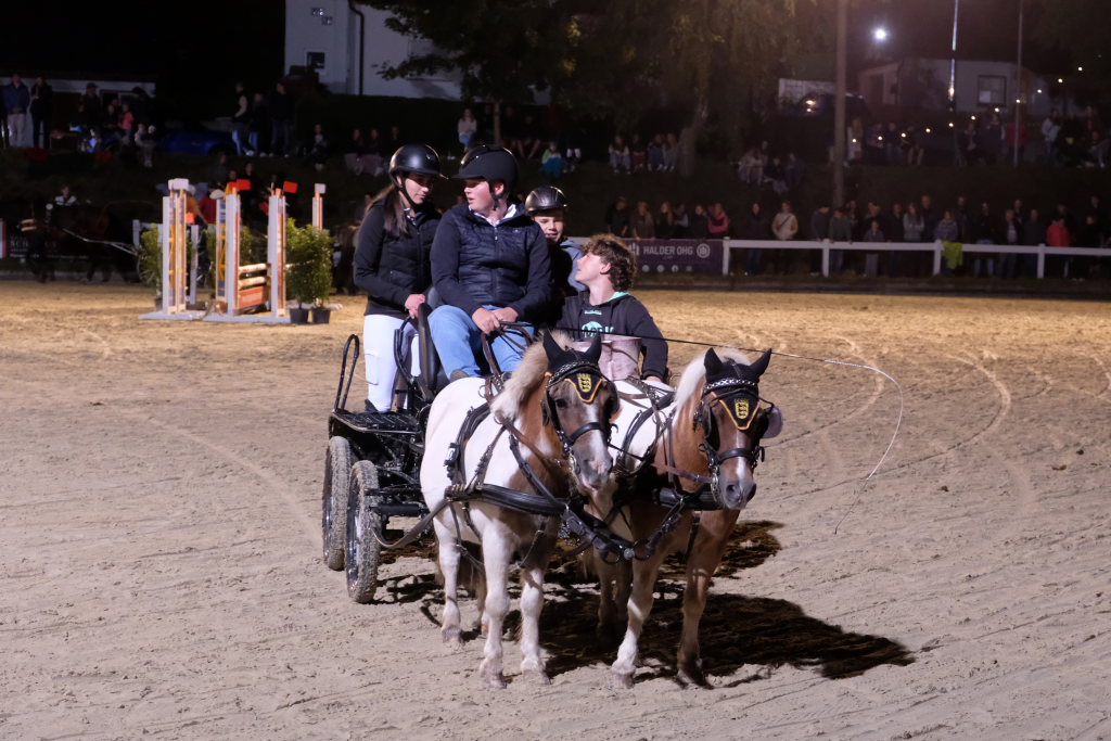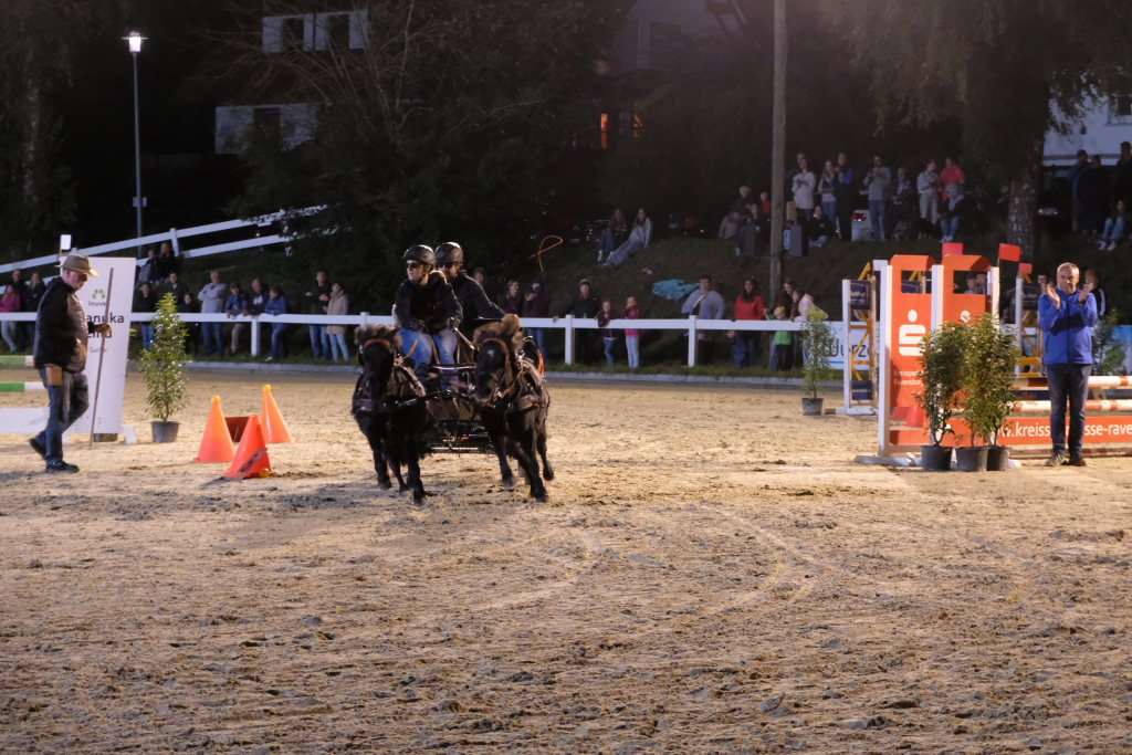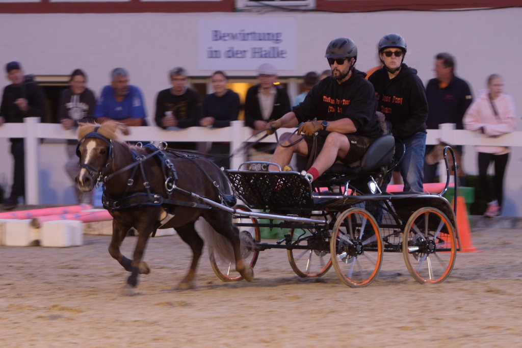 „Gina und die wilden Kerle“ gewannen bei den Pony-Einspännern in 155,40 Sekunden trotz drei Fehlern, ohne die das Team sogar um den Gesamtsieg hätte mitmischen können. Platz zwei belegte die fehlerlose „Chaos-Crew“ vor „The Boss Pony Team“, das sich zwei Fehler geleistet hatte. Ausgeschieden war das Team „Ente gut, alles gut“.