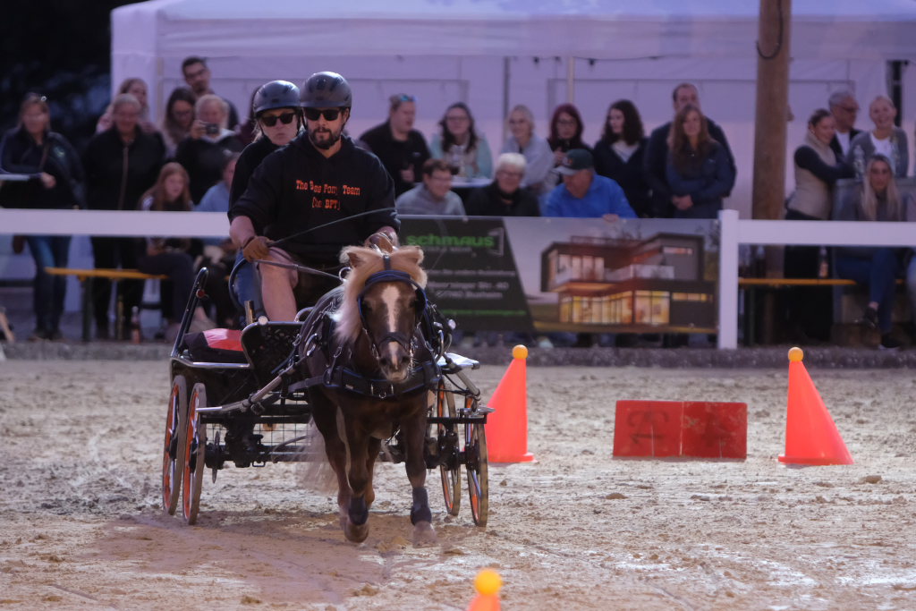 Tagesschnellstes Team war das Team „Running Gags“, das mit seinem Pony-Zweispänner den Parcour in 137,59 Sekunden bewältigte. Und das trotz eines viersekündigen Aufschlags wegen eines Fehlers. Ihm folgten bei den Pony-Zweispännern „Die Rebellen“ mit 146,29 Sekunden und auf Platz drei „SPZ El Paradiso Ranch“ mit deutlichem Abstand in 165,44 Sekunden. „Flotti Karotti“ schaffte es in dieser Wertung trotz 20 Zusatzsekunden wegen fünf Fehlern noch auf Platz vier und sie blieben damit noch knapp vor „The Boss Hoss Team II“, der „Pony Gang“ und den „Mehlstaubflitzern“, die ohne Wertung blieben.