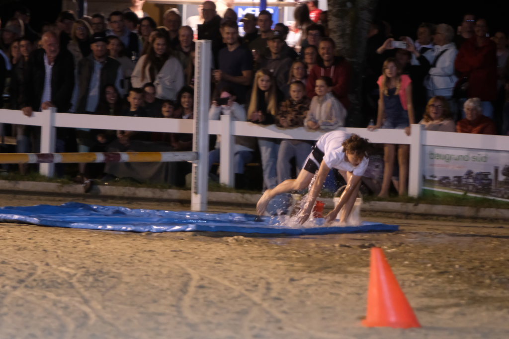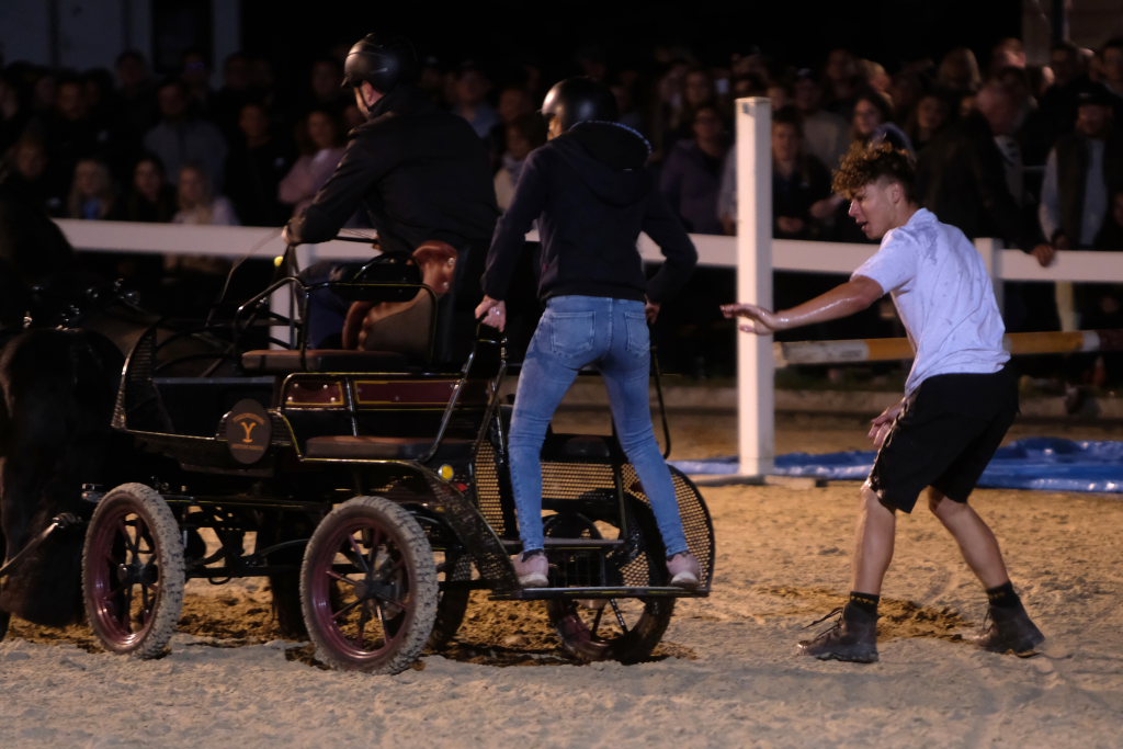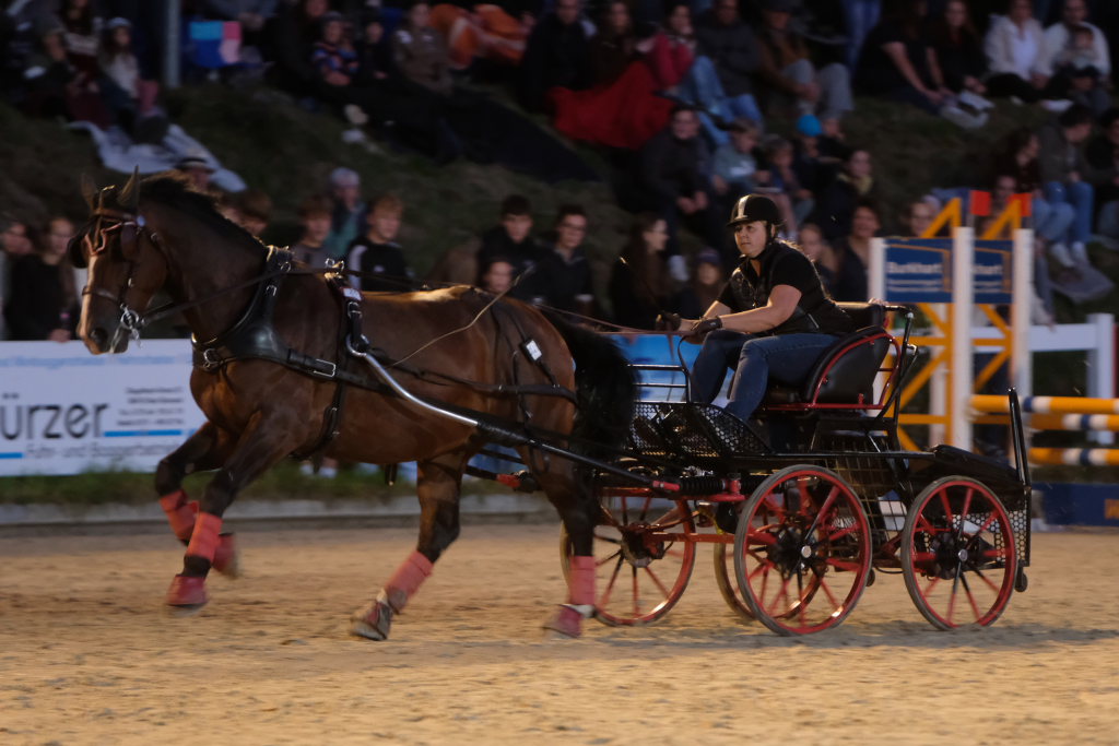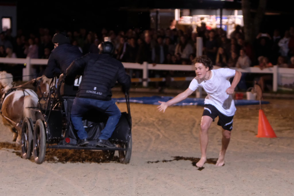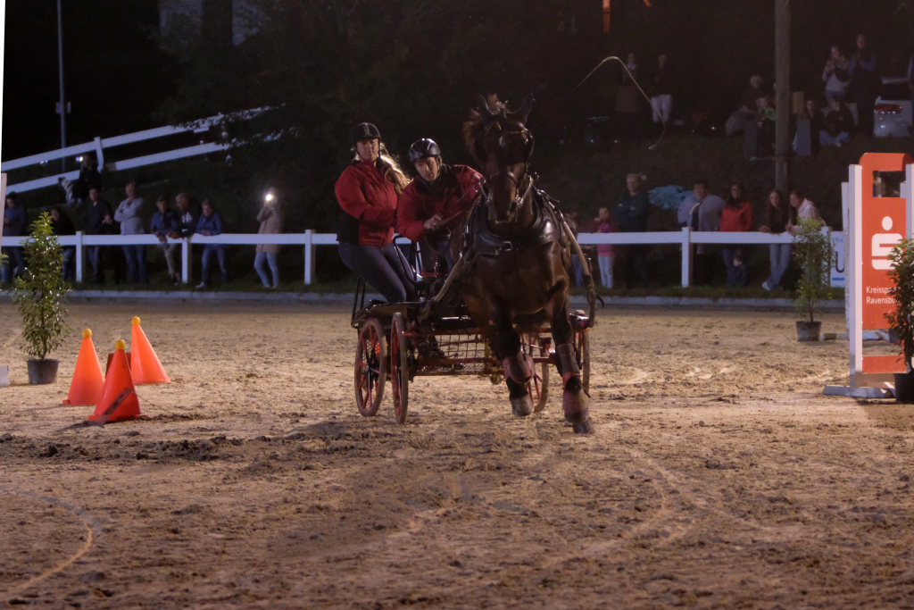 Zuweilen stockte an diesem Abend den rund 1000 Zuschauern, die das Spektakel angelockt hatte, der Atem: Als eine Kutsche, die den finalen Parcours absolvierte in einer der engsten Kurven der Schwerkraft nicht mehr trotzen konnte und Fahrer und Beifahrer abwarf. Sofort waren dann viele helfende Hände bei der jeweiligen Kutsche, um das Pferd aus seinem Geschirr zu befreien, zu beruhigen und die Kutsche wiederaufzurichten. Der anwesende Tierarzt stellte bei seinen späteren Untersuchungen fest, dass die Tiere alle wohlauf waren. Fahrer und Beifahrer trugen außer einer verschmutzten Kleidung keinerlei Blessuren davon. Hier waren aufgrund ihres sehr niedrigen Schwerpunkts die Pony-Gespanne auf der sicheren Seite.