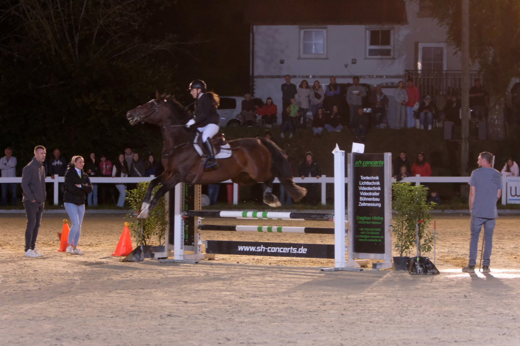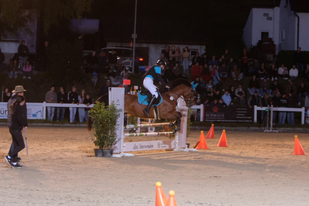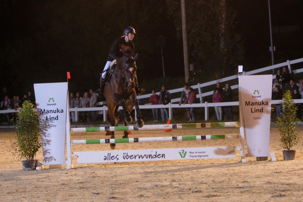 Hauerz – Einmal während des alljährlich am ersten Septemberwochenende stattfindenden traditionellen Hauerzer Pferdefestivals wird es richtig voll rund um den idyllisch gelegenen Reitplatz: Dann, wenn seit 2005 am Samstagabend bei Flutlicht das große Spektakel „Jump, Run & Drive“ steigt.