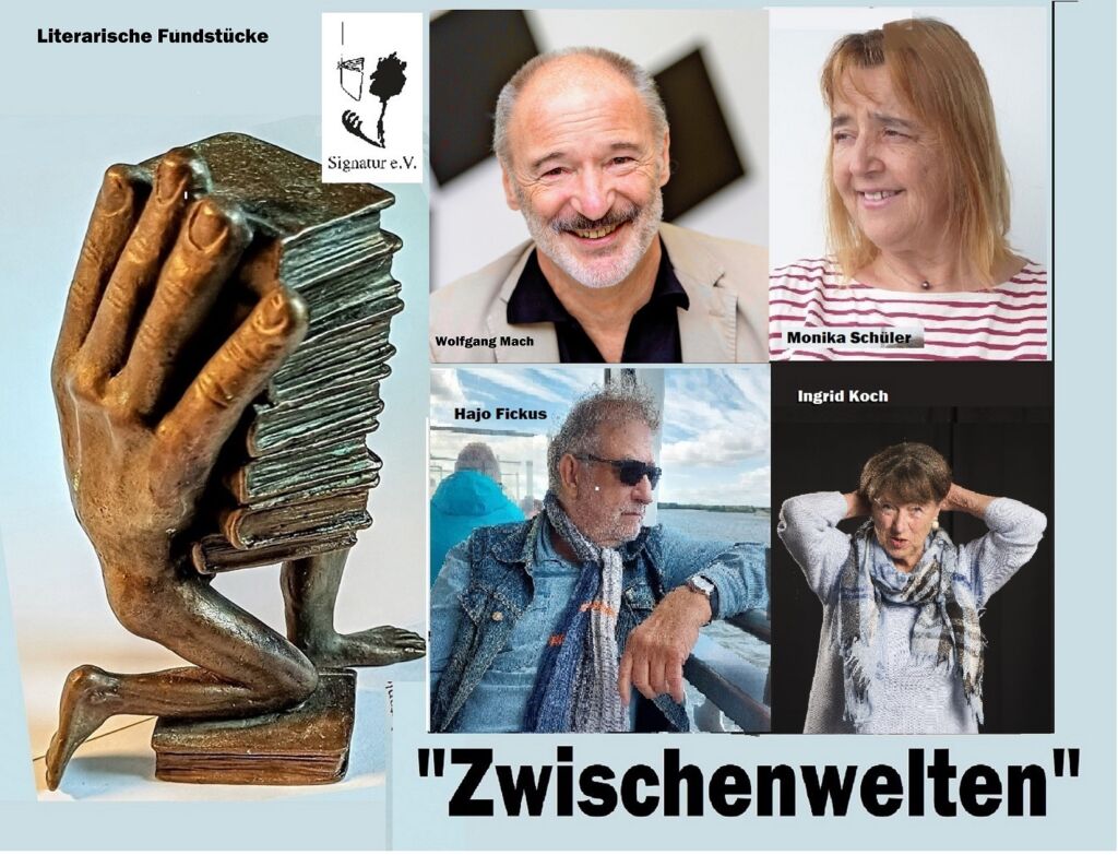 Bad Wurzach – Am Dienstag, 21. April, findet um 19.00 Uhr in der Stadtbücherei Bad Wurzach (Rosengarten 3) eine Lesung der literarischen Vereinigung Signatur e.V. zum Thema „Zwischenwelten“ statt. Die Signatur-Vorsitzende Angelika Banzhaf wird in das Thema einführen. Es lesen die Mitglieder des Signatur-Vorstands Hajo Fickus, Ingrid Koch, Wolfgang Mach und Monika Schüler. Der Eintritt ist frei.