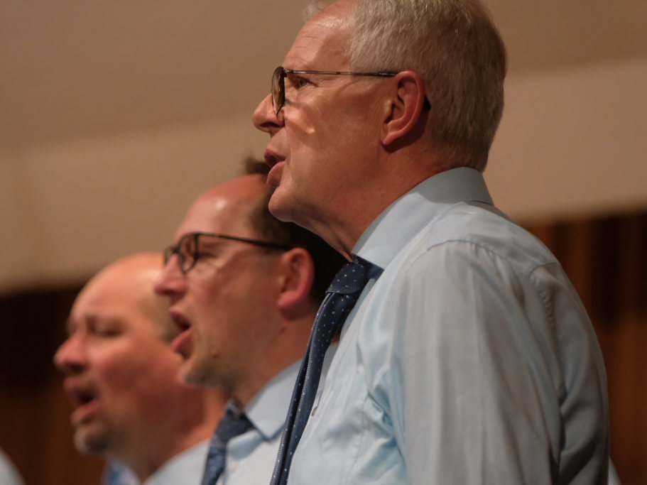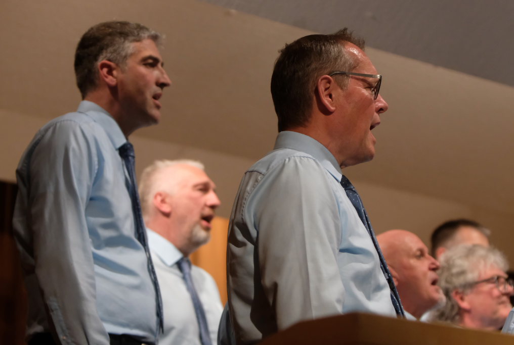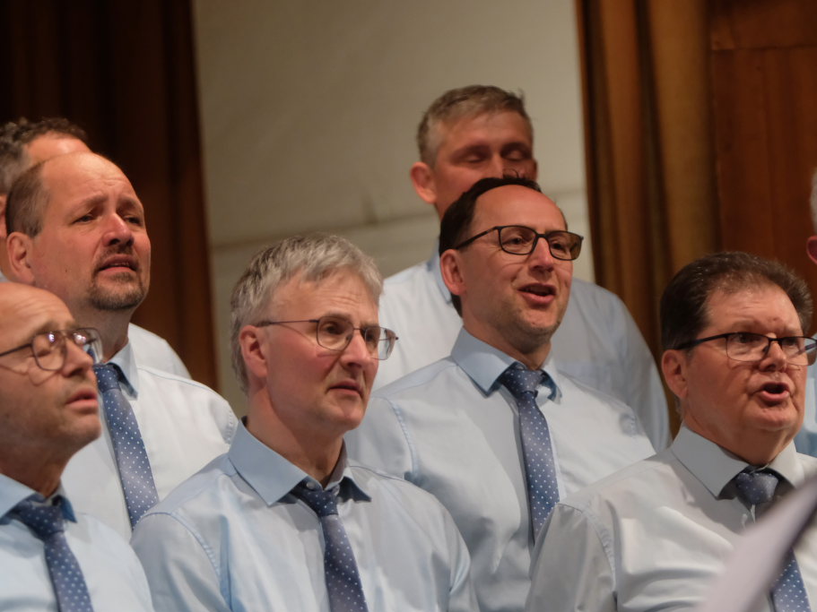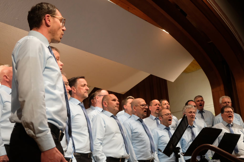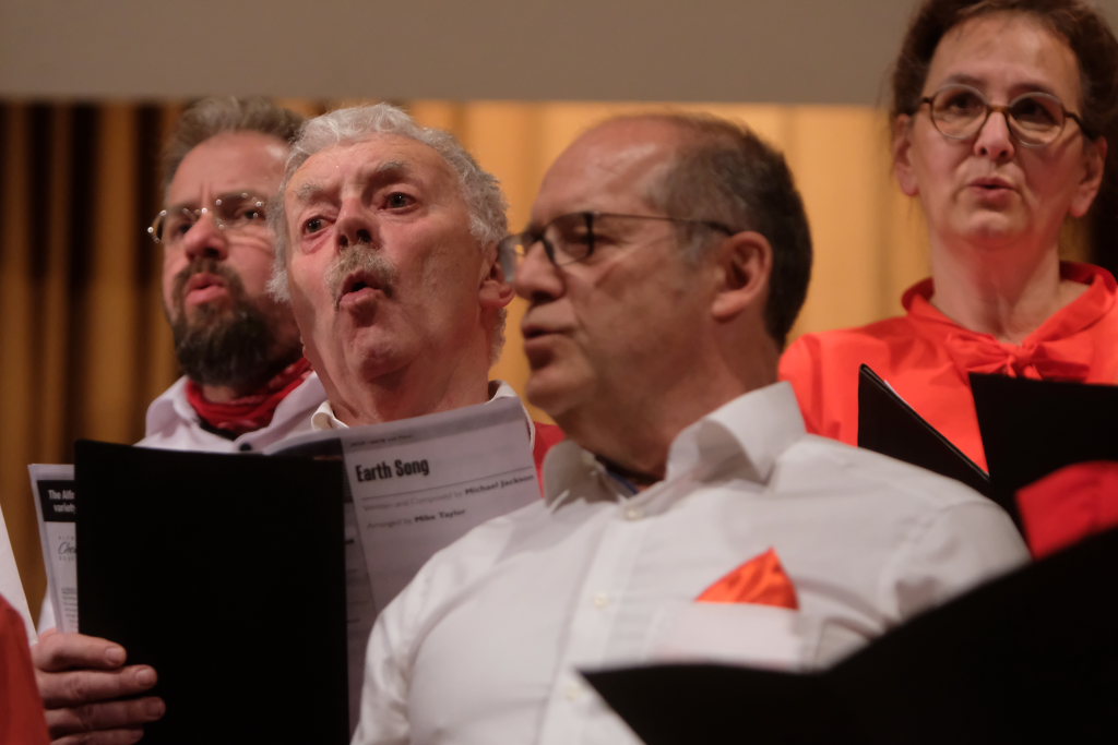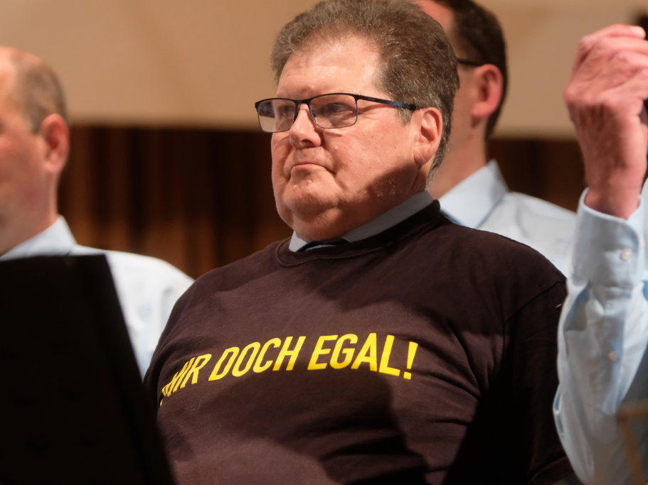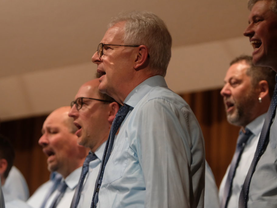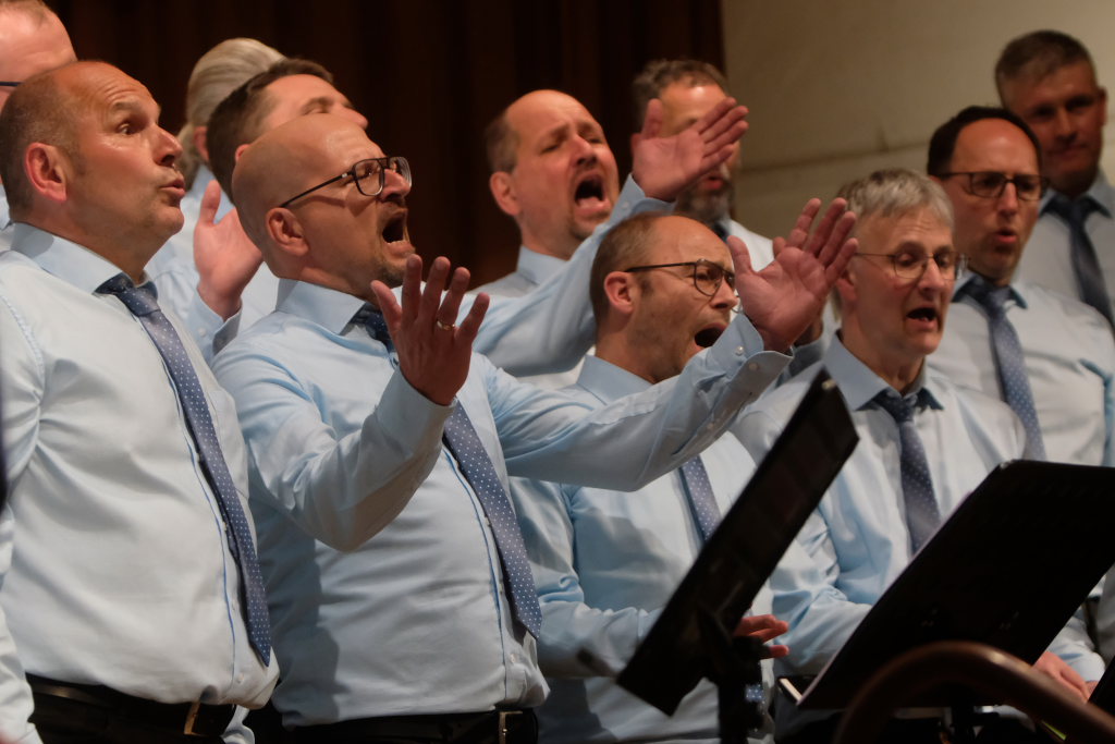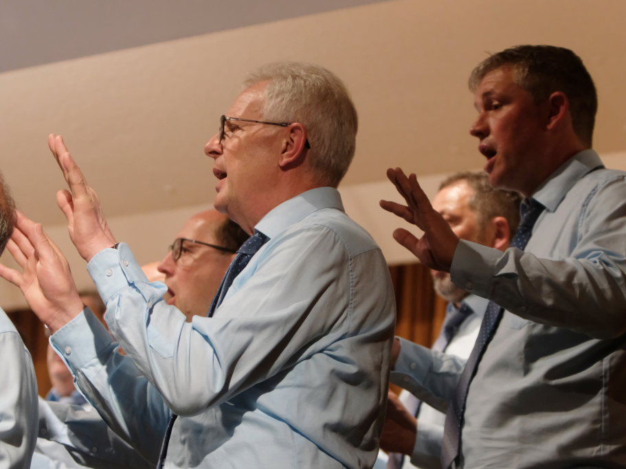 Nachdem der Männerchor mit „Eleni“ ein weiteres Lied mit einem eher traurigen Inhalt die Stimmung wieder etwas dämpfte, musste es natürlich zum Abschluss des Konzertes noch einmal ein besonderes Lied sein. „Major Tom“ ist buchstäblich in aller Munde, wenn eine der deutschen Fußball-Nationalmannschaften bei einem Länderspiel ein Tor erzielt.