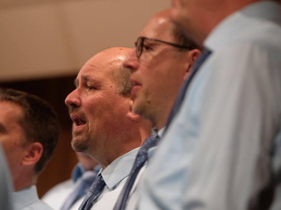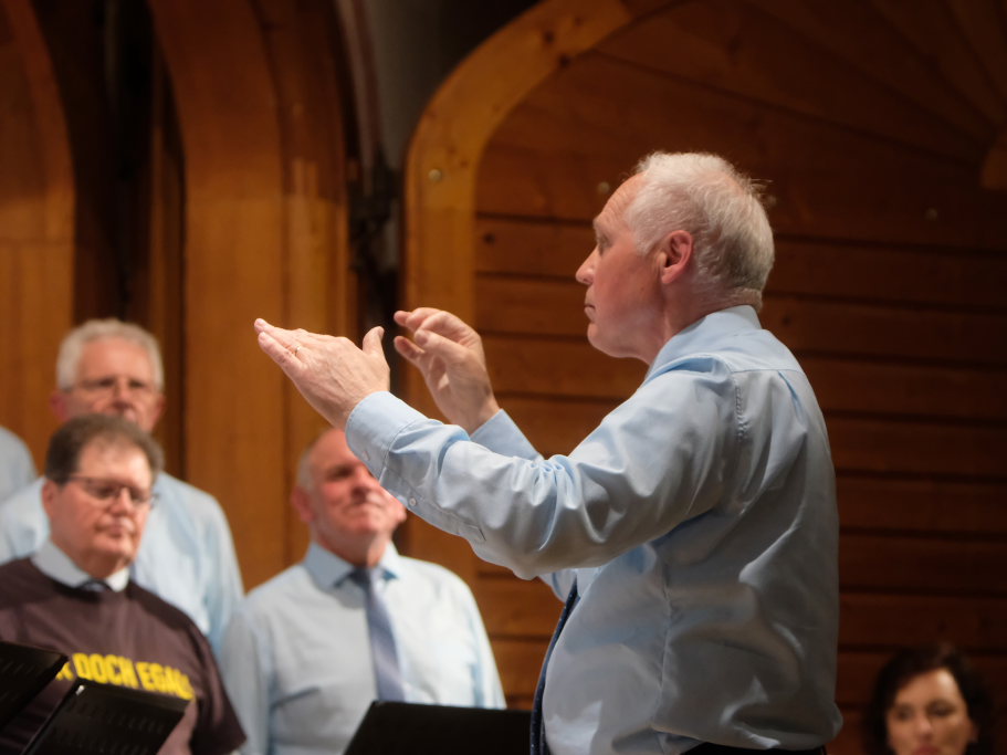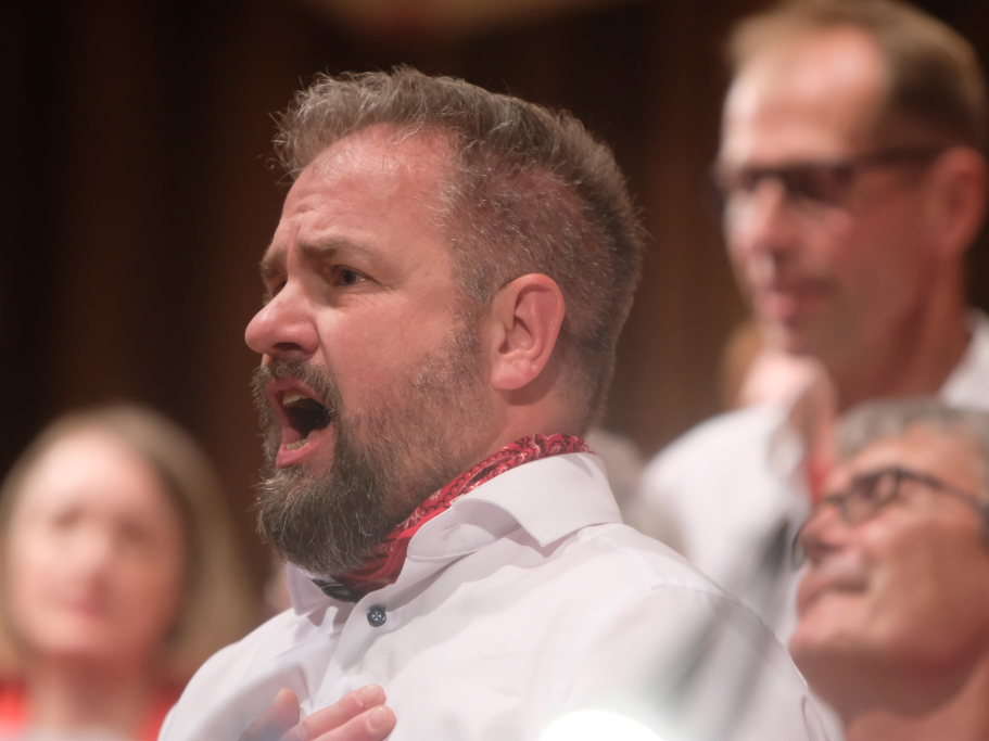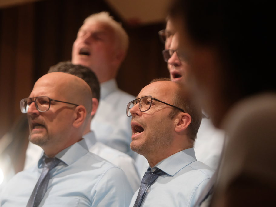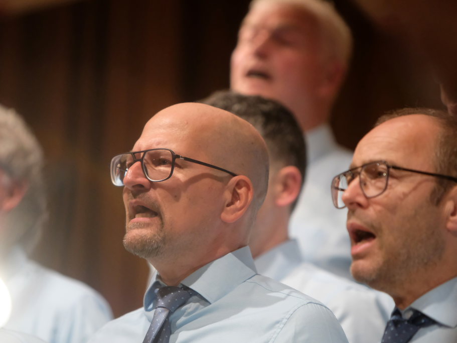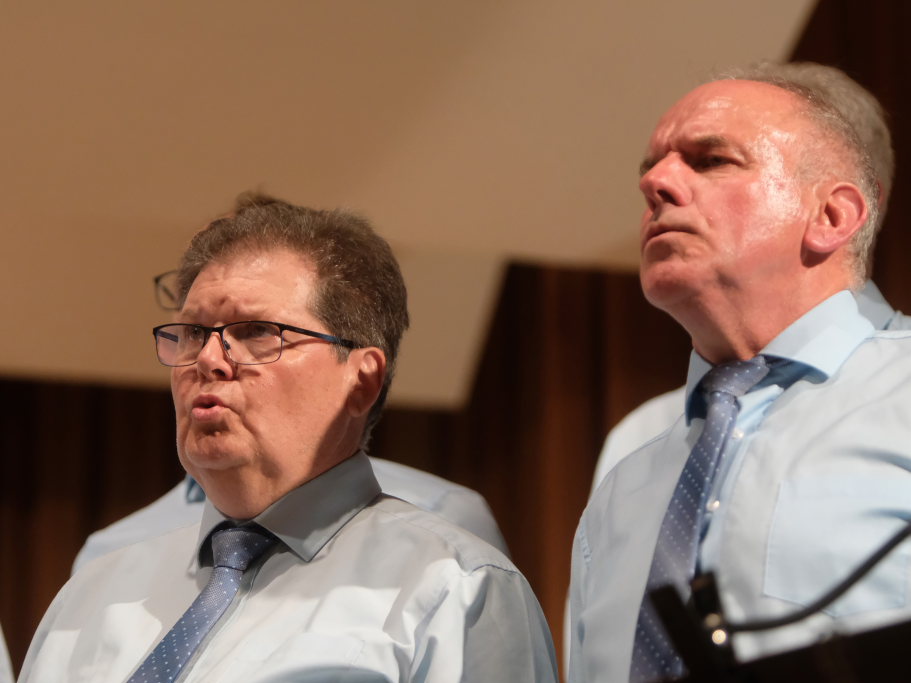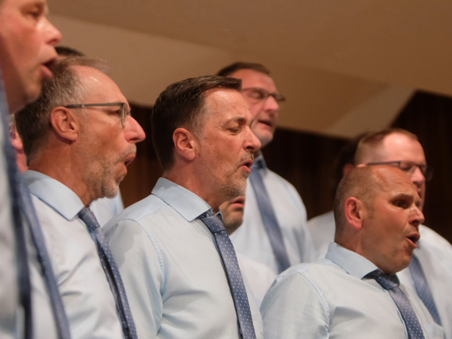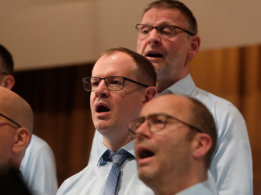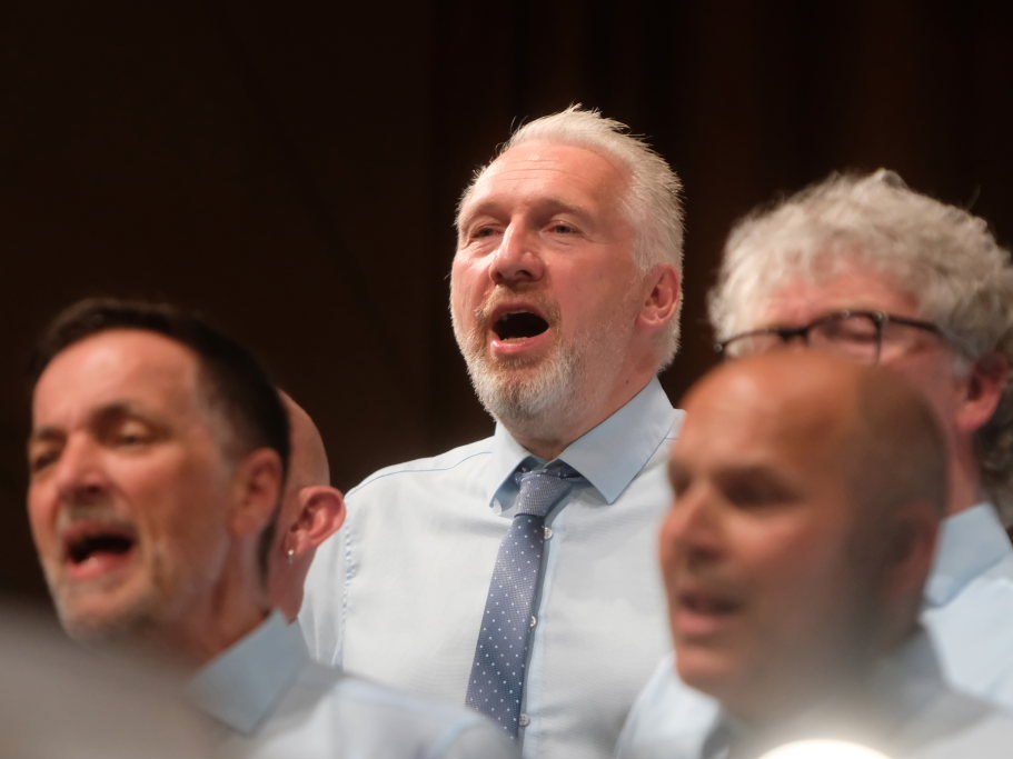 Nachdem der Männerchor mit „Eleni“ ein weiteres Lied mit einem eher traurigen Inhalt die Stimmung wieder etwas dämpfte, musste es natürlich zum Abschluss des Konzertes noch einmal ein besonderes Lied sein. „Major Tom“ ist buchstäblich in aller Munde, wenn eine der deutschen Fußball-Nationalmannschaften bei einem Länderspiel ein Tor erzielt.