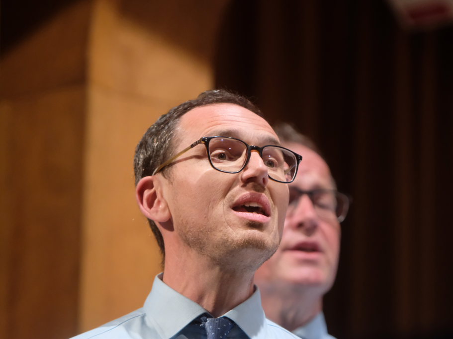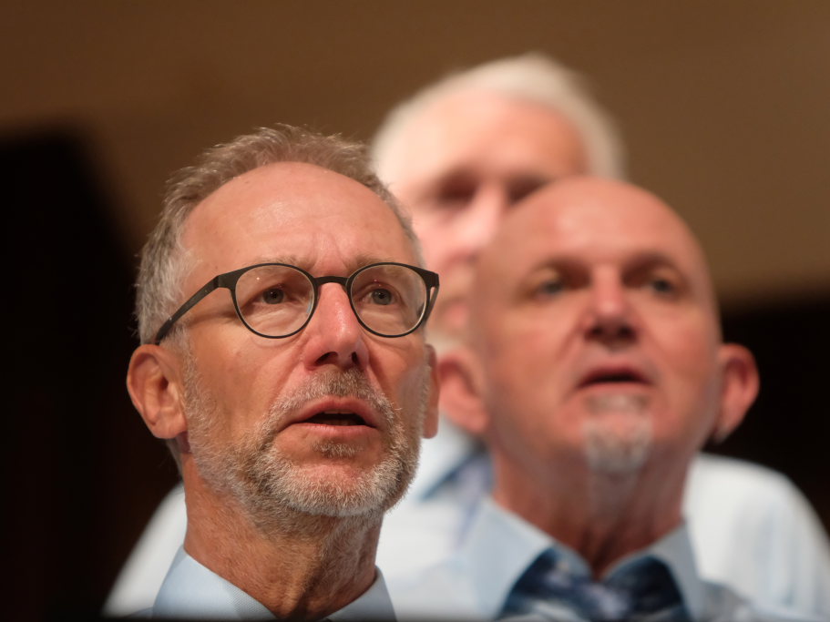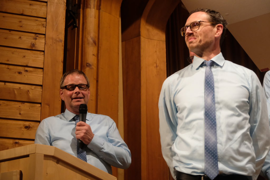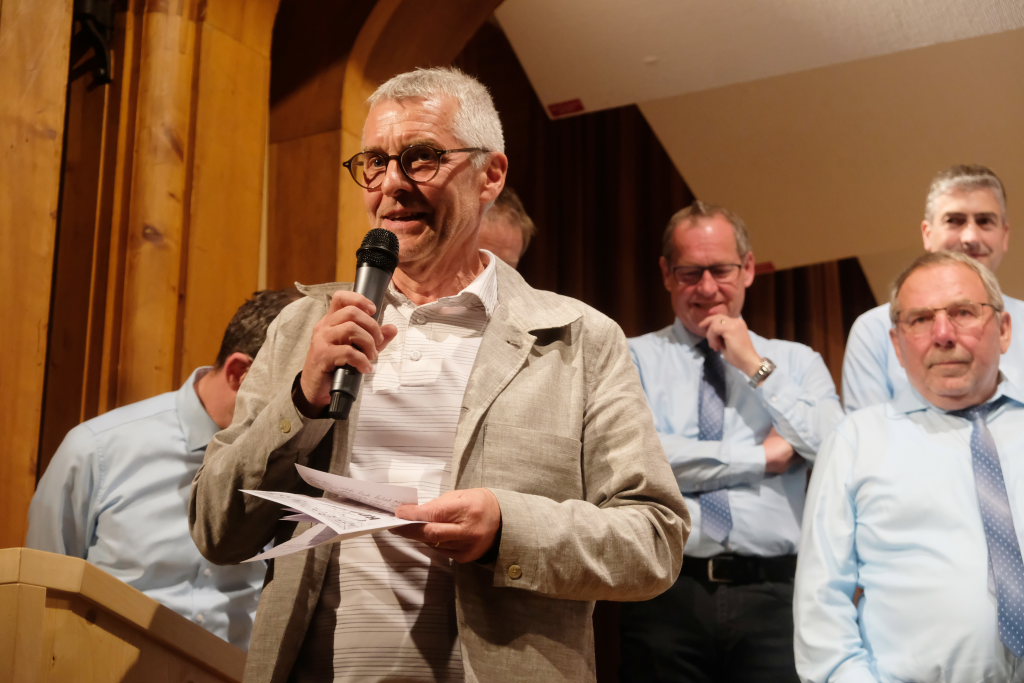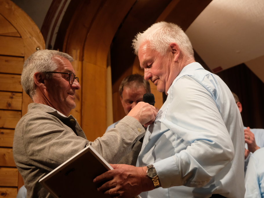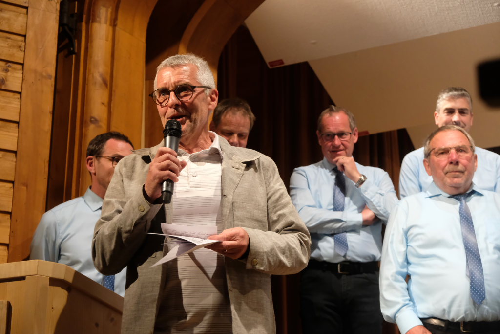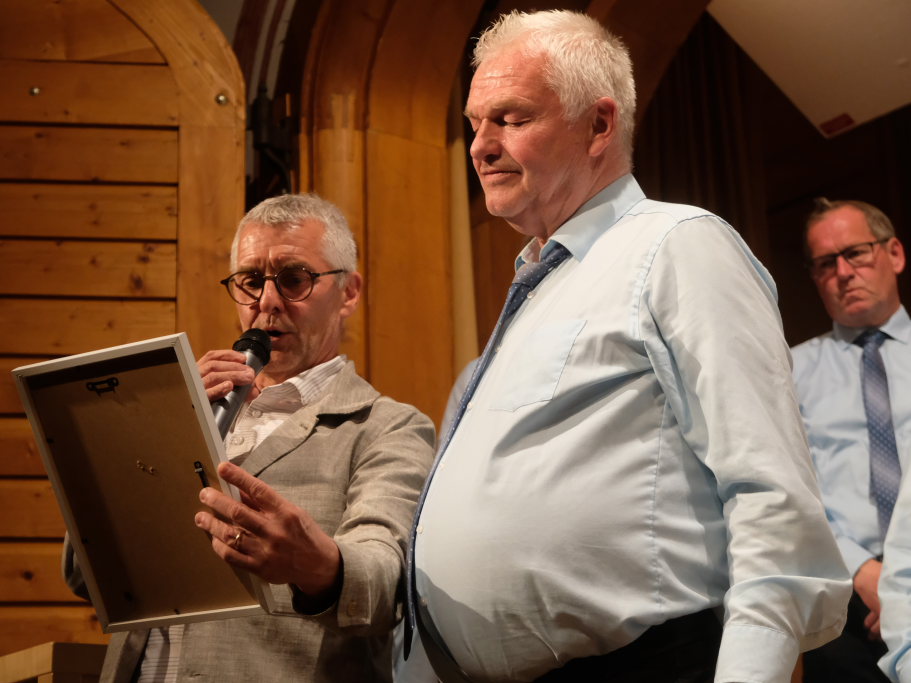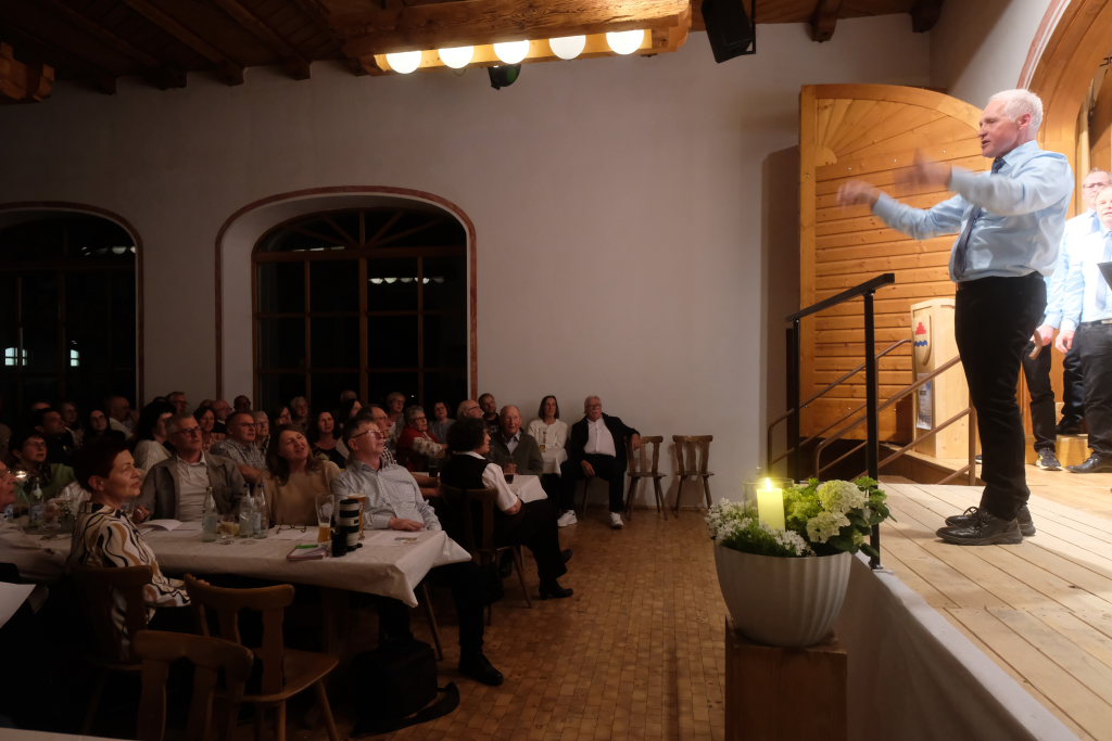 Stefan Veser, der Vorstandssprecher, hatte an diesem Konzertabend Geburtstag. Deswegen wurde nicht nur Leo Stölzle vom stellvertretenden Seibranzer Ortsvorsteher Roland Eisenbarth für sein vierzigjähriges Engagement im Chor geehrt, sondern dieser gratulierte auch Stefan Veser mit einem Geburtstagspräsent. Und natürlich gratulierte auch der ganze Dorfstadel bei so viel geballt vorhandener Sängerpower mit dem berühmtesten Geburtstagslied überhaupt. Leo Stölzle war nach 16 Jahren beim Männerchor Altmannshofen 2002 als zweiter Tenor zum Chor in Seibranz gestoßen und hatte von 2012 bis 2026 dem Vorstandsteam angehört. Der Geehrte wurde von der Ehrung völlig überrascht, gab er später zu Protokoll.