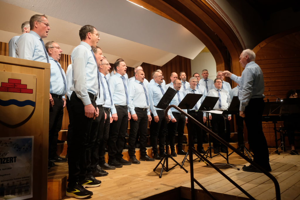 Willi Butscher, der auch in diesem Jahr wieder mit lockeren Sprüchen für den Männerchor durchs Programm führte, hatte einen solchen auch bei den Danksagungen und Präsentübergaben für den musikalischen Leiter des Männerchores Seibranz, Erich Minsch übrig, der bei Proben und Konzerten immer 100 % gibt und darüber hinaus auch noch Dirigent der Seibranzer Blaskapelle, die erst vor kurzem ebenfalls ihr Konzert gespielt hatte, ist: „Böse Zungen behaupten, dass er während den Probenzeiten schon sein Wohnzimmer bei ebay verkaufen wollte…“