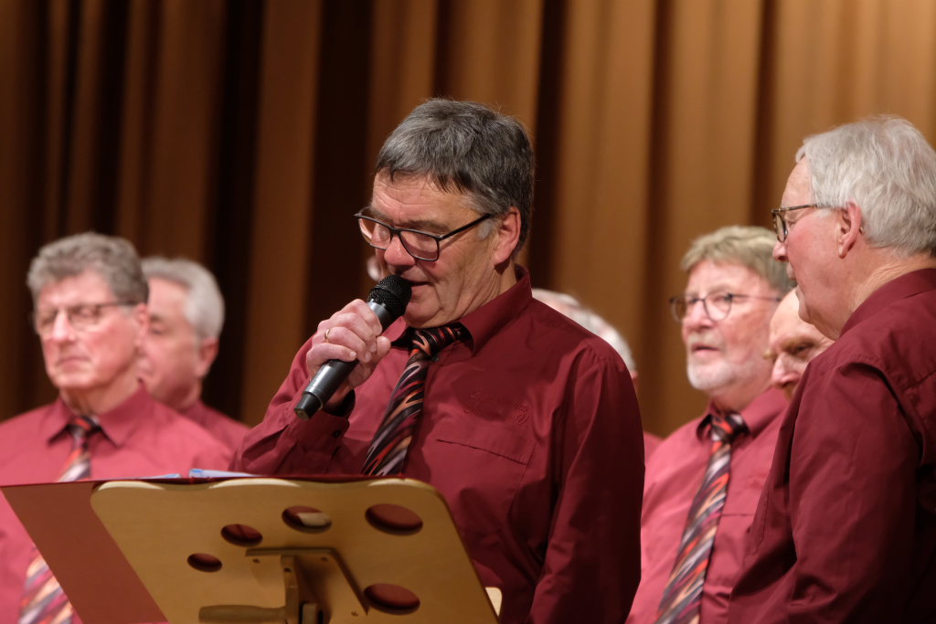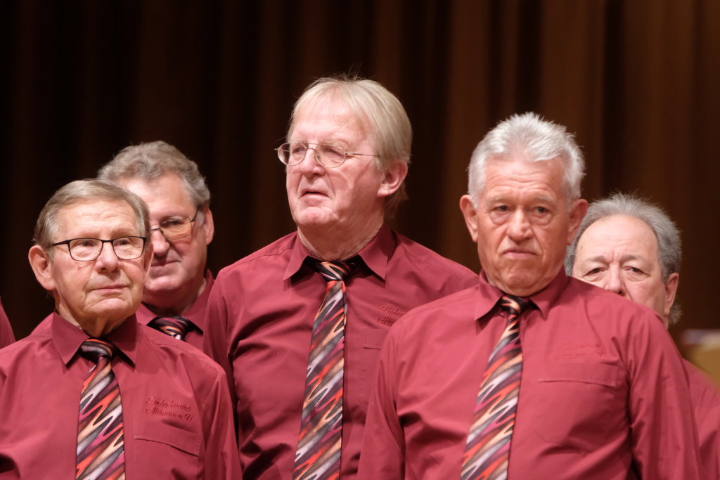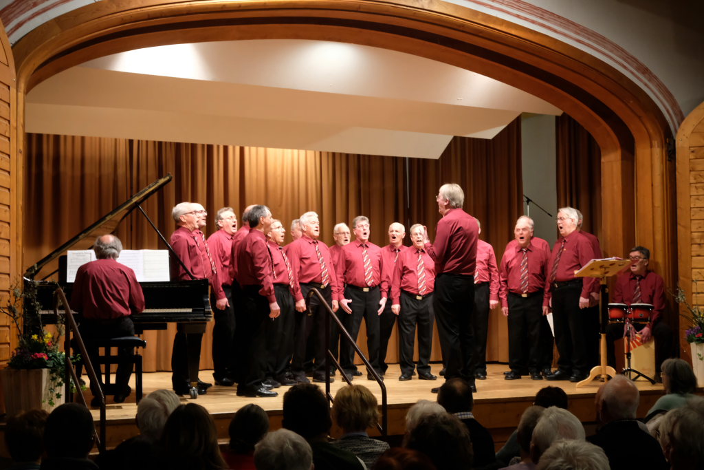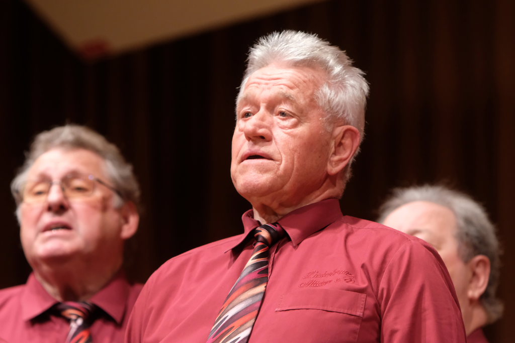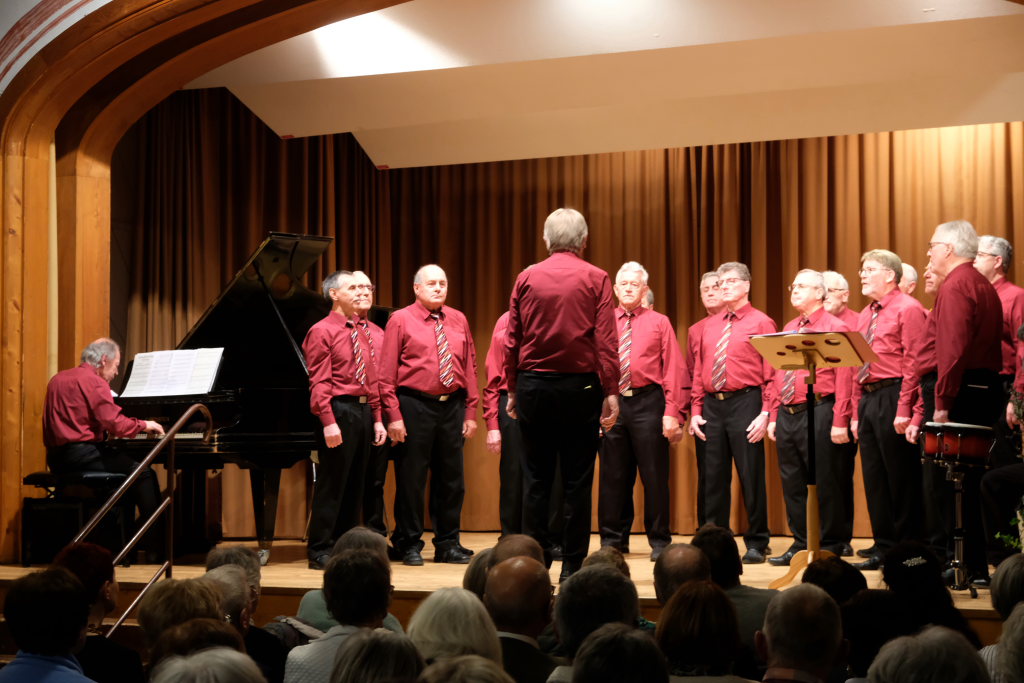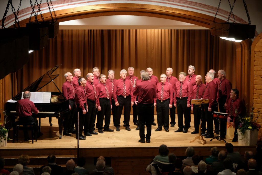 Der Männerchor eröffnete sein Konzertprogramm, bei dem er in bewährter Manier von Franz Ott am Flügel begleitet wurde, mit dem Seemannslied, mit dem Freddy Quinn einst weltberühmt wurde. Mit Liedern wie „Wochenend und Sonnenschein“ von den Comedian Harmonists, „Die kleine Kneipe“ von Peter Alexander, bei dem der ganze Saal fleißig mitsang oder dem Trinklied aus der Puccini-Oper La Traviata boten die Sänger des Männerchores Alttann beste Unterhaltung mit hochwertigem Chorgesang sowie großartigen Solisten. Josef Mattheis, der bei einigen Stücken die Sänger am Cajun begleitete, durfte sich auch als „Schwätzer vom Dienst“ betätigen, er übernahm die Ansagen zwischen den einzelnen Stücken. Und erzählte auch von den Fallstricken solcher Ansagen: „Wie peinlich wäre es, “ erklärte er vor dem Stück Jasmina, das (natürlich) von der Liebe zu einer Frau namens Jasmina erzählt, „wenn ich bei meiner Ansage erzählen würde, die Jasmin ist verblüht…“