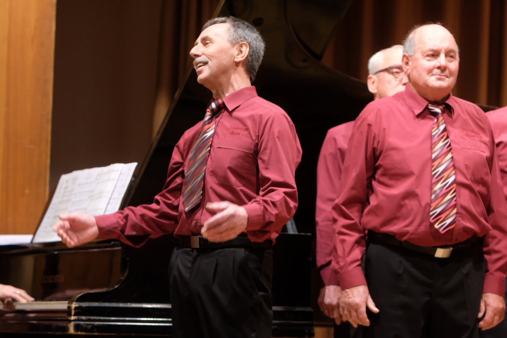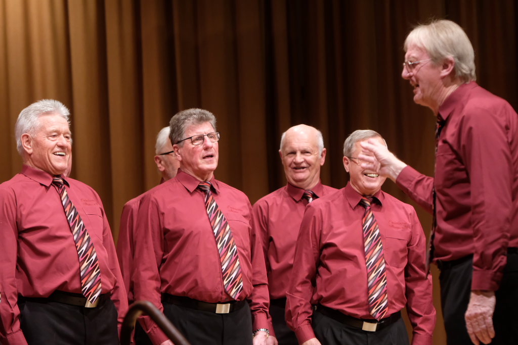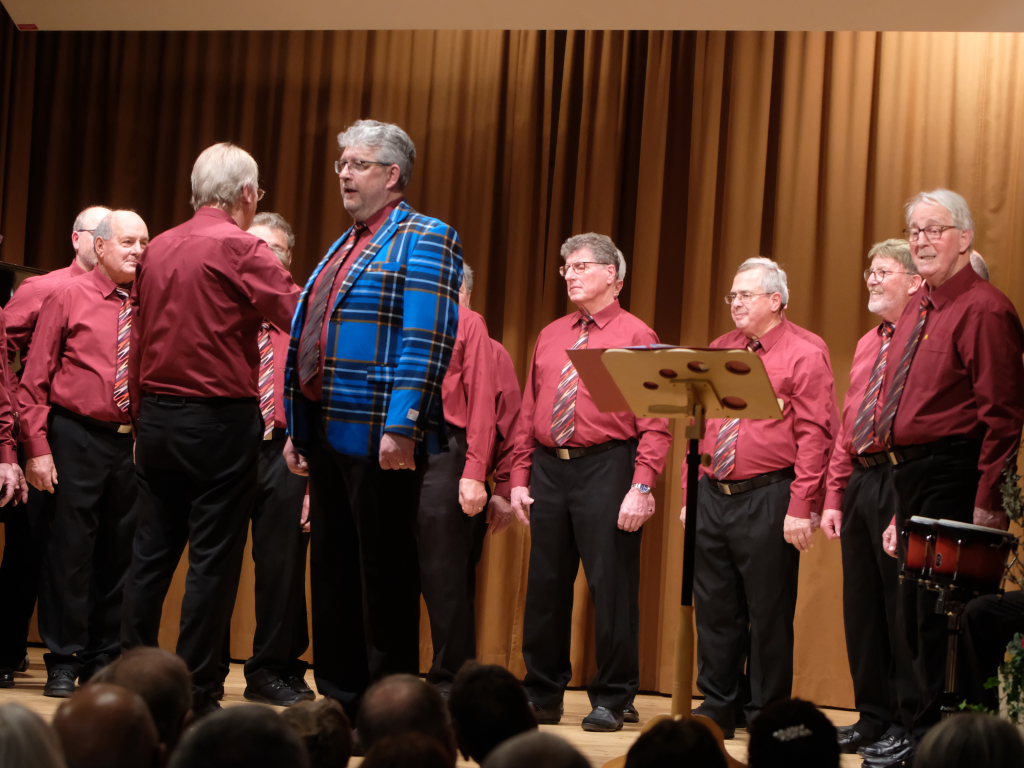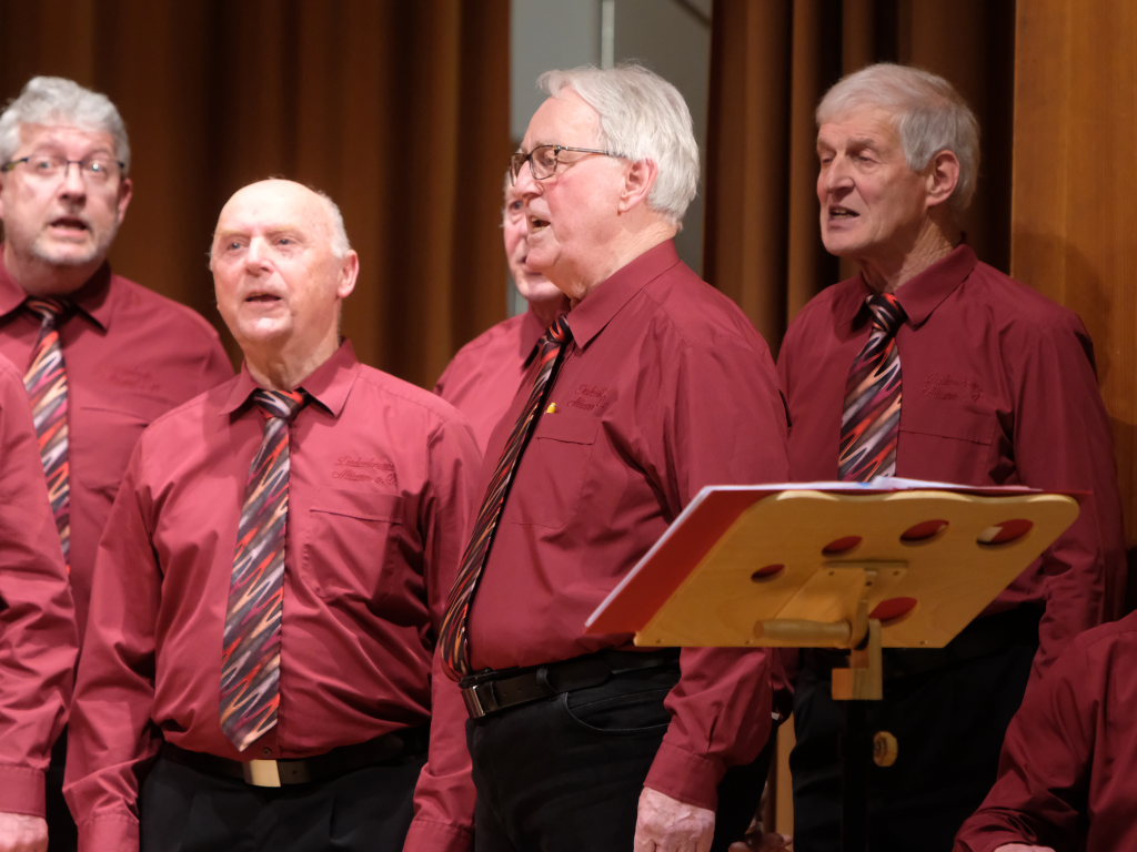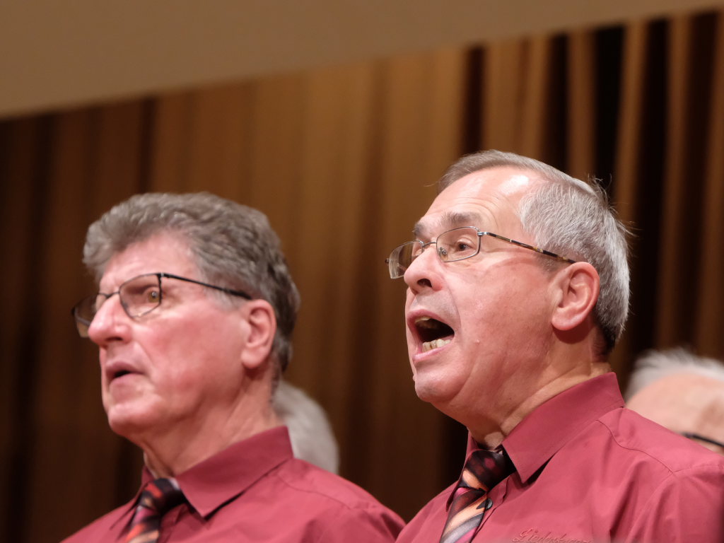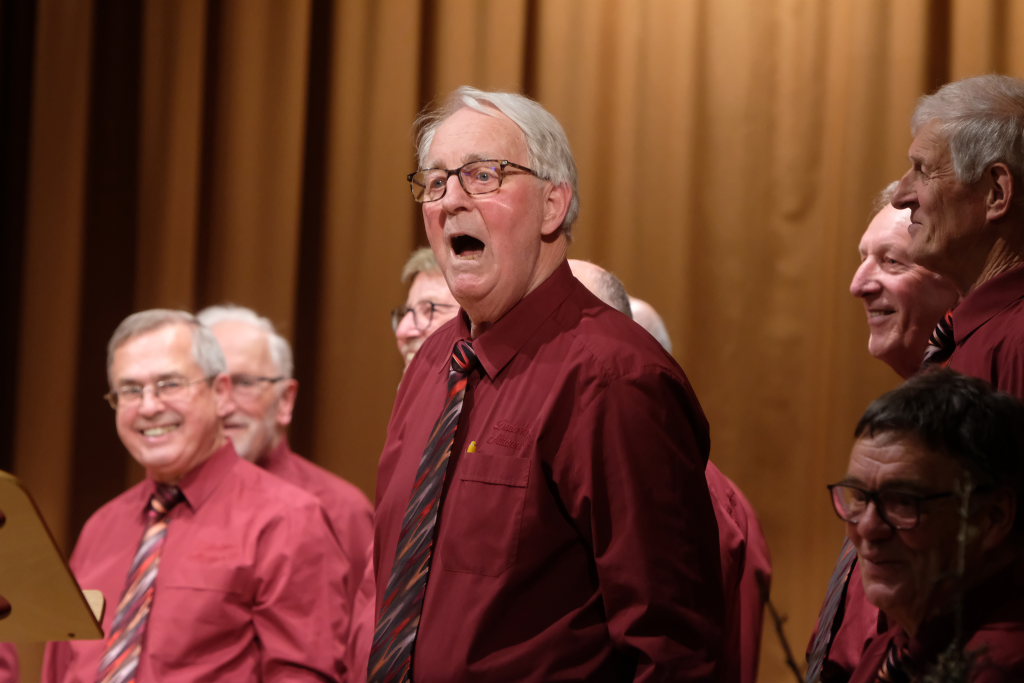Der Männerchor eröffnete sein Konzertprogramm, bei dem er in bewährter Manier von Franz Ott am Flügel begleitet wurde, mit dem Seemannslied, mit dem Freddy Quinn einst weltberühmt wurde. Mit Liedern wie „Wochenend und Sonnenschein“ von den Comedian Harmonists, „Die kleine Kneipe“ von Peter Alexander, bei dem der ganze Saal fleißig mitsang oder dem Trinklied aus der Puccini-Oper La Traviata boten die Sänger des Männerchores Alttann beste Unterhaltung mit hochwertigem Chorgesang sowie großartigen Solisten. Josef Mattheis, der bei einigen Stücken die Sänger am Cajun begleitete, durfte sich auch als „Schwätzer vom Dienst“ betätigen, er übernahm die Ansagen zwischen den einzelnen Stücken. Und erzählte auch von den Fallstricken solcher Ansagen: „Wie peinlich wäre es, “ erklärte er vor dem Stück Jasmina, das (natürlich) von der Liebe zu einer Frau namens Jasmina erzählt, „wenn ich bei meiner Ansage erzählen würde, die Jasmin ist verblüht…“