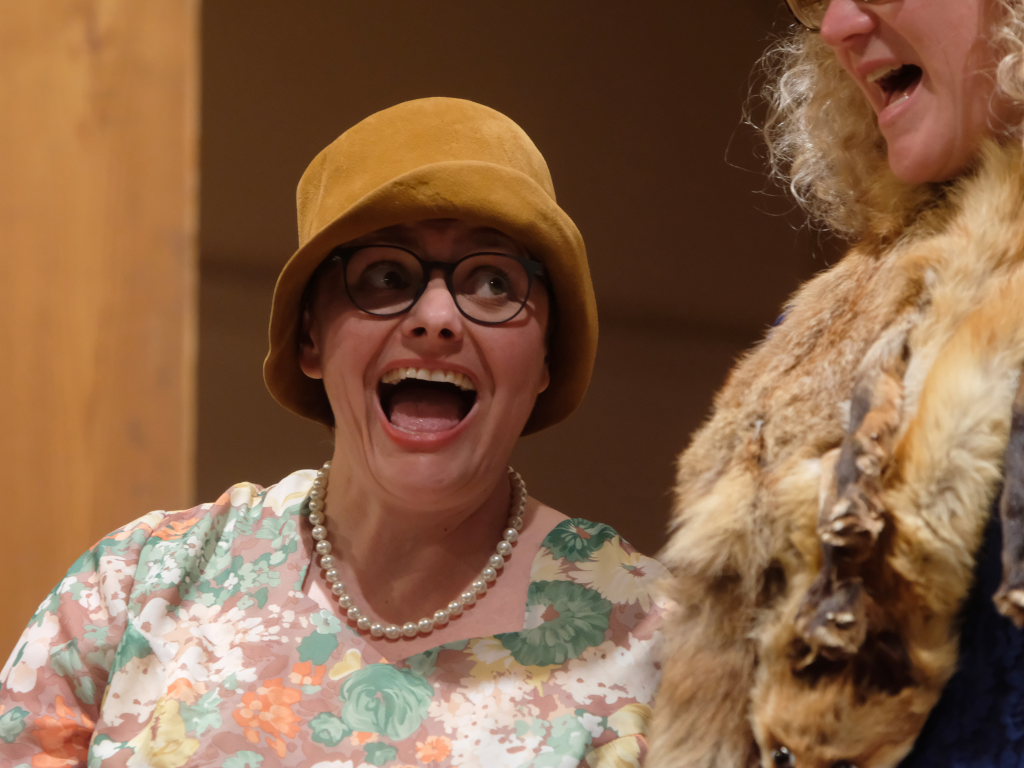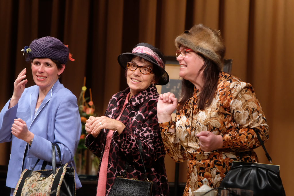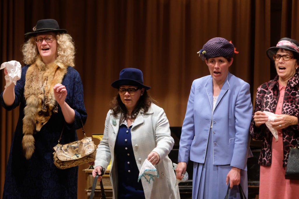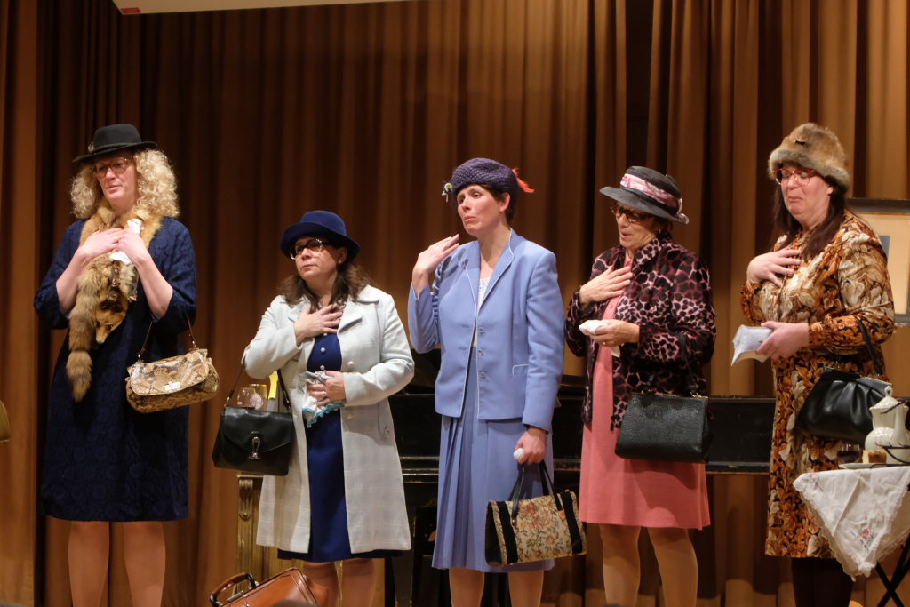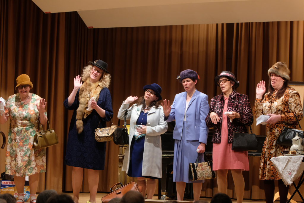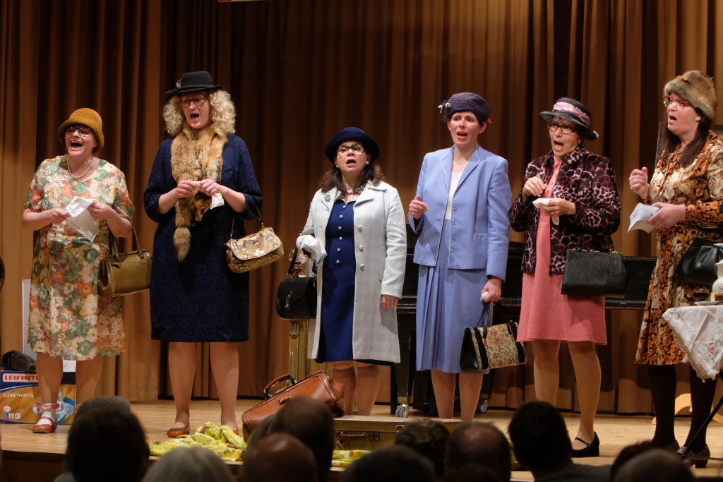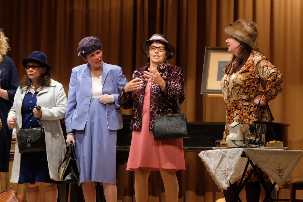 Bei Halba Drui ist eigentlich nichts, wie es zu sein scheint. Die „alten“ Damen sind im wirklichen Leben eine Generation jünger als ihre Bühnenpräsenz. Und anstelle von Kaffee rinnt Rotwein durch den Schwanenhals der Kaffeekanne des Porzellan-Services beim Kaffeekränzchen. Und die kleinen Römer-Weingläser stammen aus der Zeit, als die auf der Bühne dargestellten Damen noch jung waren. Gerne nahmen die sechs Damen aus Unteropfingen, die aufgrund mehrerer legendärer Auftritte beim A-Cappella-Abend des Kirchenchors Ziegelbach hierzulande keine Unbekannten sind, die Steilvorlage an, die die Mannen um Peter Schad ihnen mit ihrem letzten Lied geliefert hatten.
