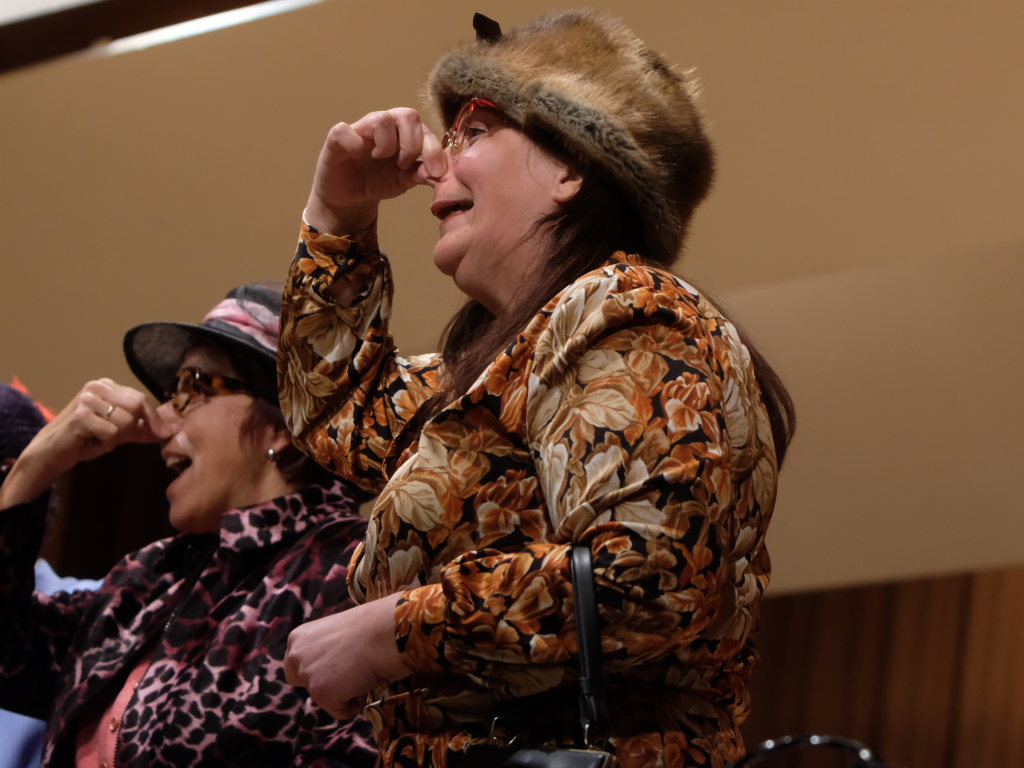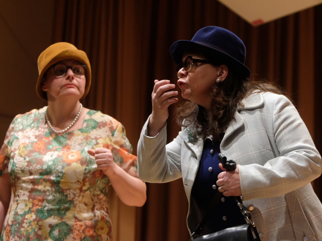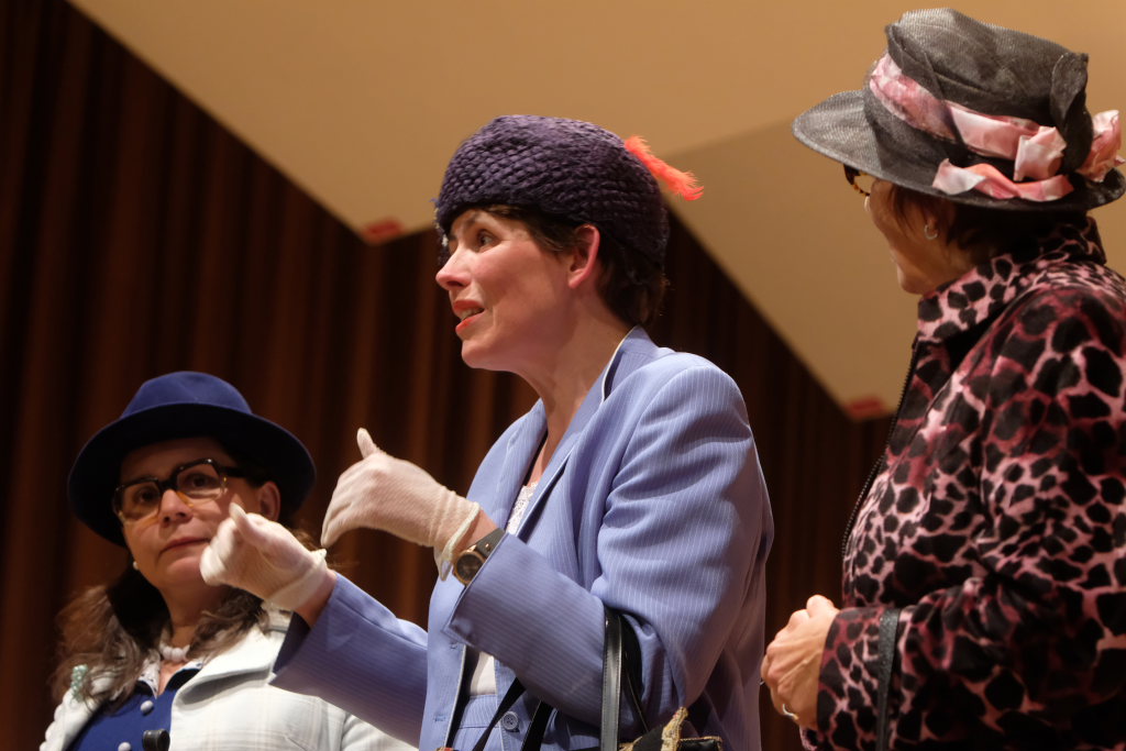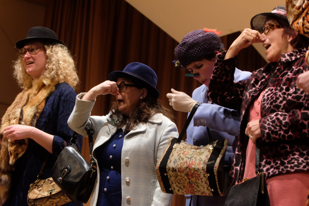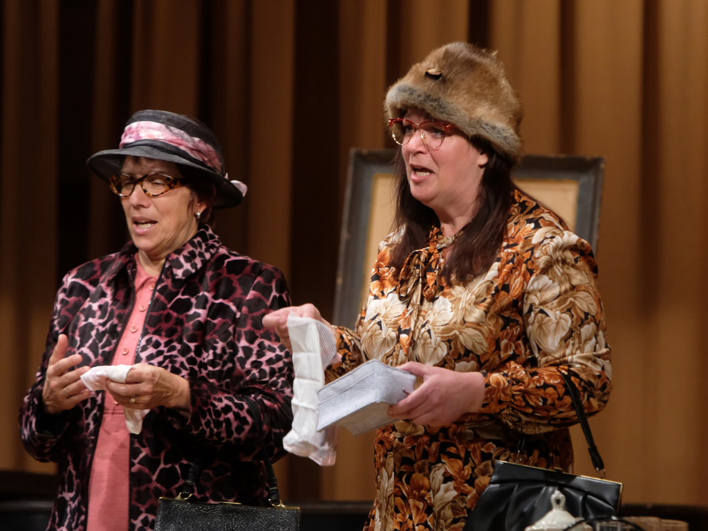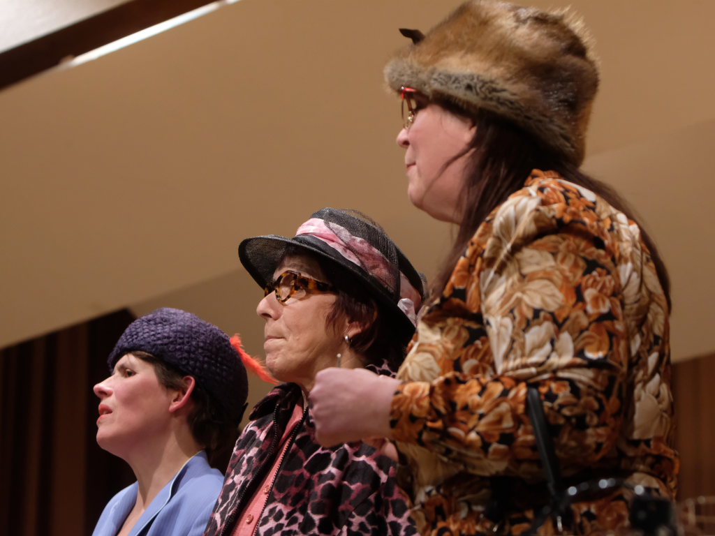 Bei Halba Drui ist eigentlich nichts, wie es zu sein scheint. Die „alten“ Damen sind im wirklichen Leben eine Generation jünger als ihre Bühnenpräsenz. Und anstelle von Kaffee rinnt Rotwein durch den Schwanenhals der Kaffeekanne des Porzellan-Services beim Kaffeekränzchen. Und die kleinen Römer-Weingläser stammen aus der Zeit, als die auf der Bühne dargestellten Damen noch jung waren. Gerne nahmen die sechs Damen aus Unteropfingen, die aufgrund mehrerer legendärer Auftritte beim A-Cappella-Abend des Kirchenchors Ziegelbach hierzulande keine Unbekannten sind, die Steilvorlage an, die die Mannen um Peter Schad ihnen mit ihrem letzten Lied geliefert hatten.
