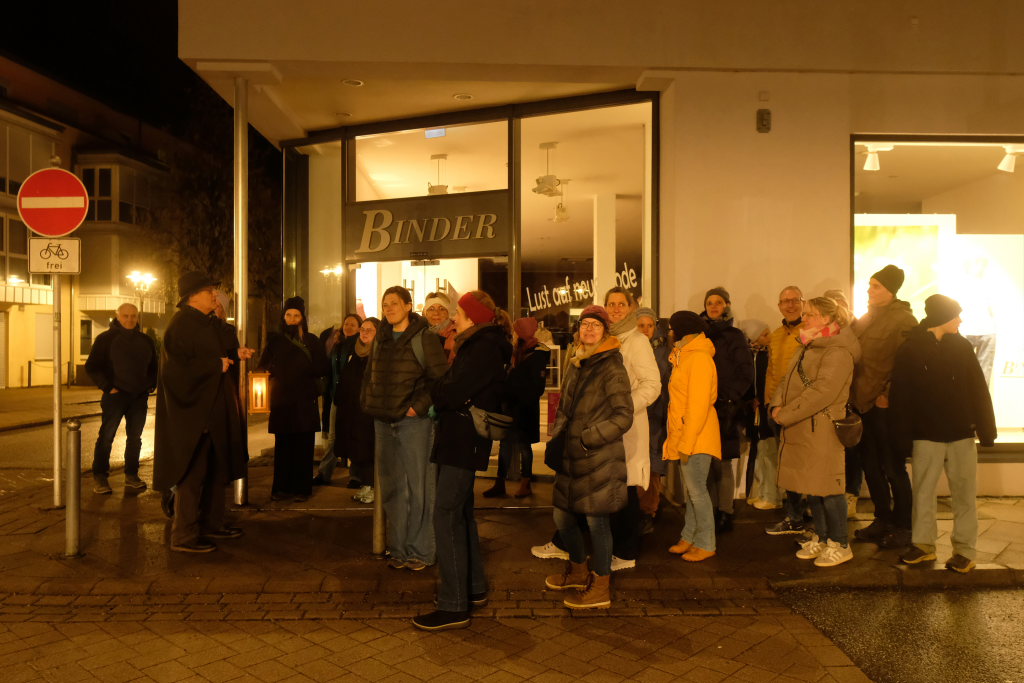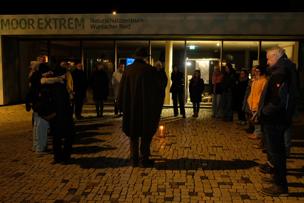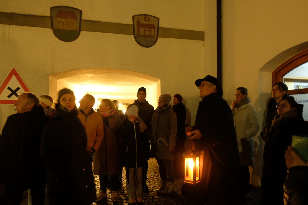 Bad Wurzach – Mit Laterne, starker Taschenlampe, einem mittelalterlichen Stadtbild und in einem Nachtwächtergewand „bewaffnet“ konnte Stadtführer Peter Koerver zur zweiten Nachtwächterführung des Jahres 26 hauptsächlich weibliche Teilnehmer beim Treffpunkt auf dem Klosterplatz vor der Bad Wurzach-Info begrüßen.