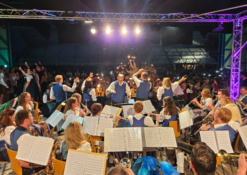 Der Musikverein Arnach legt sich beim Zeiler Stimmungscup mächtig ins Zeug.