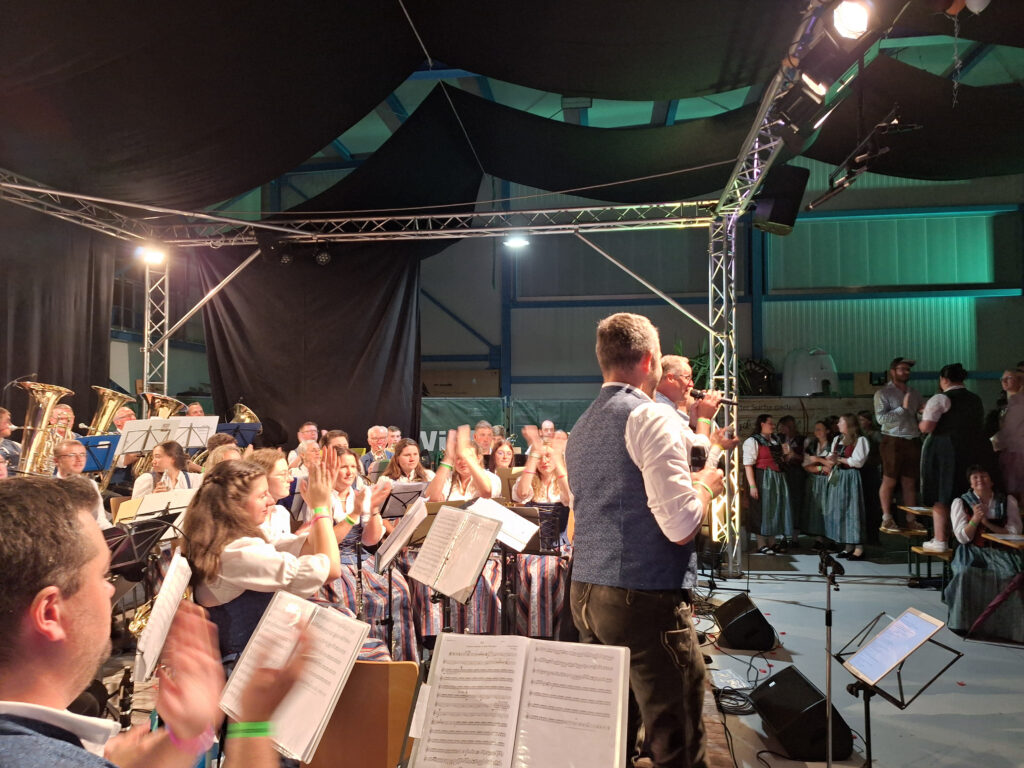 Unterzeil- Am Samstagabend (26.7.) veranstaltete die Musikkapelle Schloß Zeil erstmals bei ihrem Flugplatzfest einen Stimmungscup. Drei Musikkapellen bekamen eine Stunde Zeit, die Zuschauer mit bester Blas-, Stimmungs- und Partymusik zu begeistern. Neben der Musikkapelle Heggelbach und dem Musikverein Haslach (Rot) trat der Arnacher Musikverein unter der Leitung von Berthold Hiemer an.