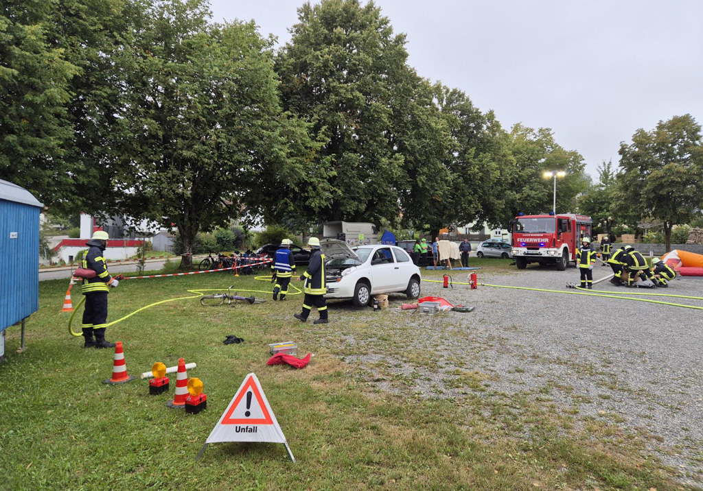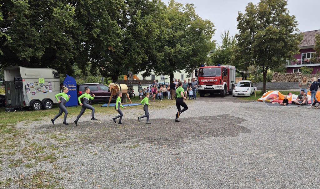 So bot die Feuerwehr Hauerz eine Vorführung ihrer technischen Möglichkeiten bei einer Übung zu einem Verkehrsunfall. Die Voltigier-Gruppe des Reitvereins zeigte ihr Können anhand eines Holzpferdes auf dem Festplatz. Eine Hüpfburg für die Kleinen und viele Mitmach-Angebote von weiteren Vereinen sorgten dafür, dass sich alle Besucher, darunter auch Bürgermeisterin Alexandra Scherer und Ortsvorsteher Kurt Miller, willkommen fühlten.